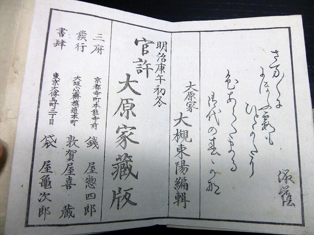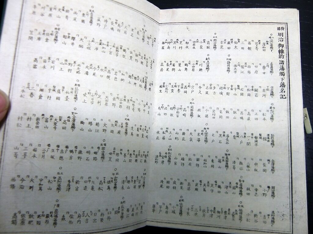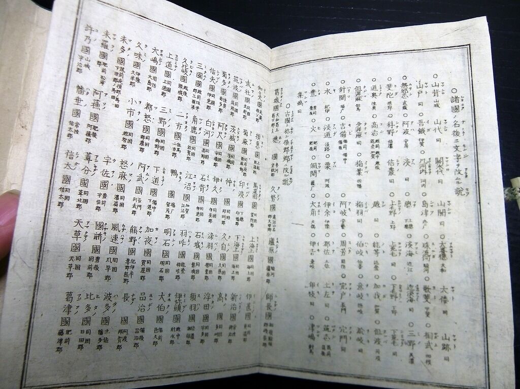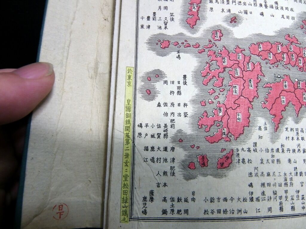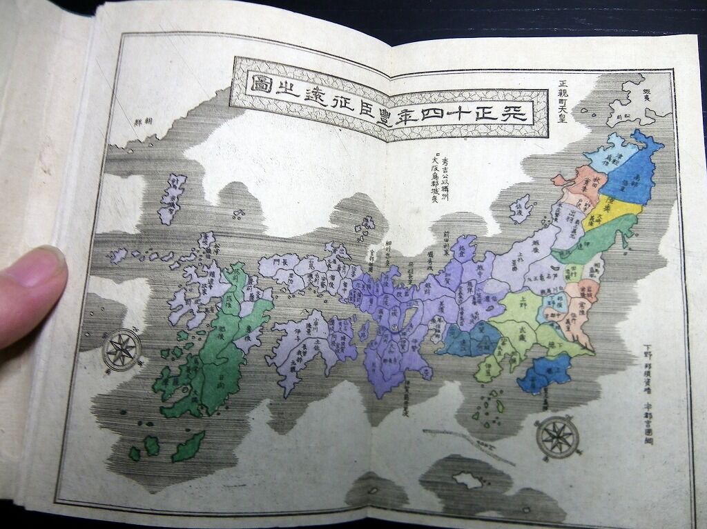 2021年10月04日 和本明治3年(1870)「皇朝沿革図解」1冊/大槻東陽/二世玄々堂松田緑山による銅版摺り/古地図/古書 和本明治3年(1870)「皇朝沿革図解」1冊/大槻東陽/二世玄々堂松田緑山による銅版摺り/古地図/古書です。46丁。中本。銅版刷り。元題簽。見返しあり。二世玄々堂松田緑山による銅版摺り。『データ』【書名】 皇朝沿革図解【巻冊】 1冊【著者】 大槻東陽【成立】 明治3年(1870) 「古地図」カテゴリの最新記事 タグ :#和本#古地図#銅版摺 < 前の記事次の記事 > コメント コメントフォーム 名前 コメント 記事の評価 リセット リセット 顔 星 情報を記憶 コメントを投稿する