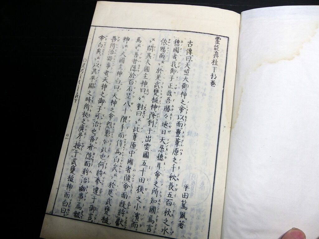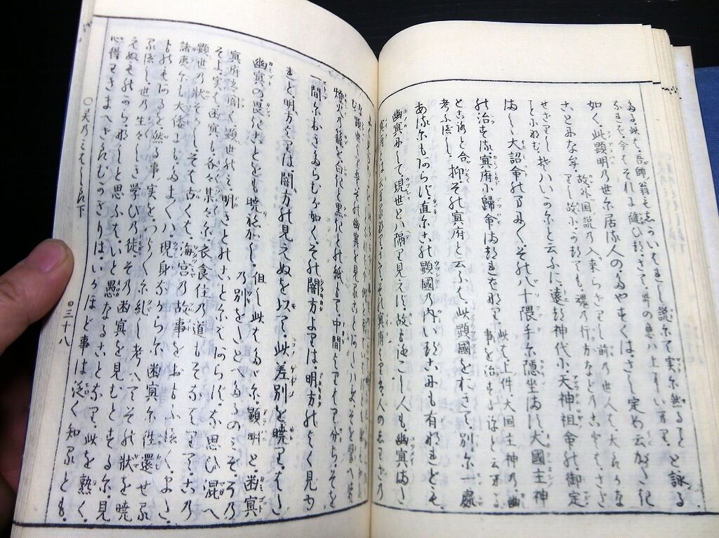 2022年04月18日 和本明治摺り国学神道「霊能真柱」上下2冊揃/平田篤胤/古書古文書/木版摺り/死後の世界 和本明治摺り国学神道「霊能真柱」上下2冊揃/平田篤胤/古書古文書/木版摺り/死後の世界です。5+3+56、58+3丁。大本。木版刷り。元題簽。袋付き。『データ』【書名】 霊能真柱【巻冊】 上下2冊揃【著者】 平田篤胤【成立】 明治摺り 「神道和本」カテゴリの最新記事 タグ :#和本#国学#神道#平田篤胤#死後の世界 < 前の記事次の記事 > コメント コメントフォーム 名前 コメント 記事の評価 リセット リセット 顔 星 情報を記憶 コメントを投稿する