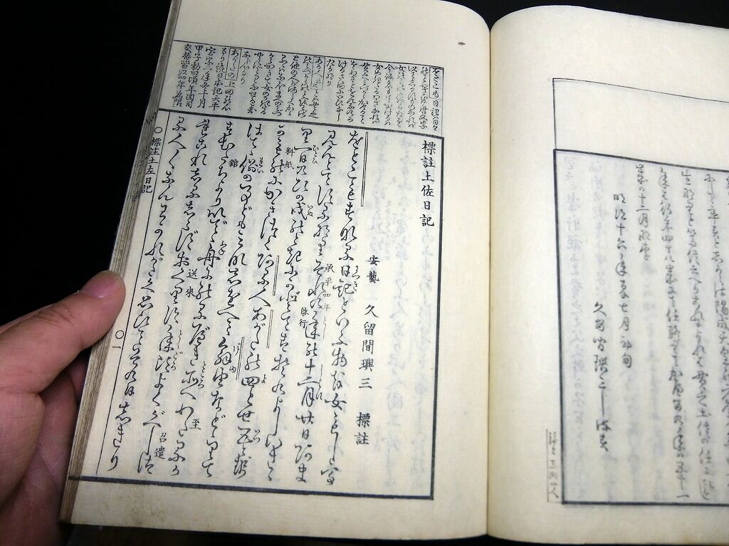2022年11月07日 和本明治17年(1884)国学古典「標註土佐日記」全1冊/久留間璵三/古書古文書/木版摺り 和本明治17年(1884)国学古典「標註土佐日記」全1冊/久留間璵三/古書古文書/木版摺りです。3+29丁。25.5cm×18.5cm。木版刷り。題簽ほとんど欠。見返しあり。奥付あり。『データ』【書名】 標註土佐日記【巻冊】 全1冊【著者】 久留間璵三【成立】 明治17年(1884) 「国学和本」カテゴリの最新記事 タグ :#和本#国学#久留間璵三 < 前の記事次の記事 > コメント コメントフォーム 名前 コメント 記事の評価 リセット リセット 顔 星 情報を記憶 コメントを投稿する