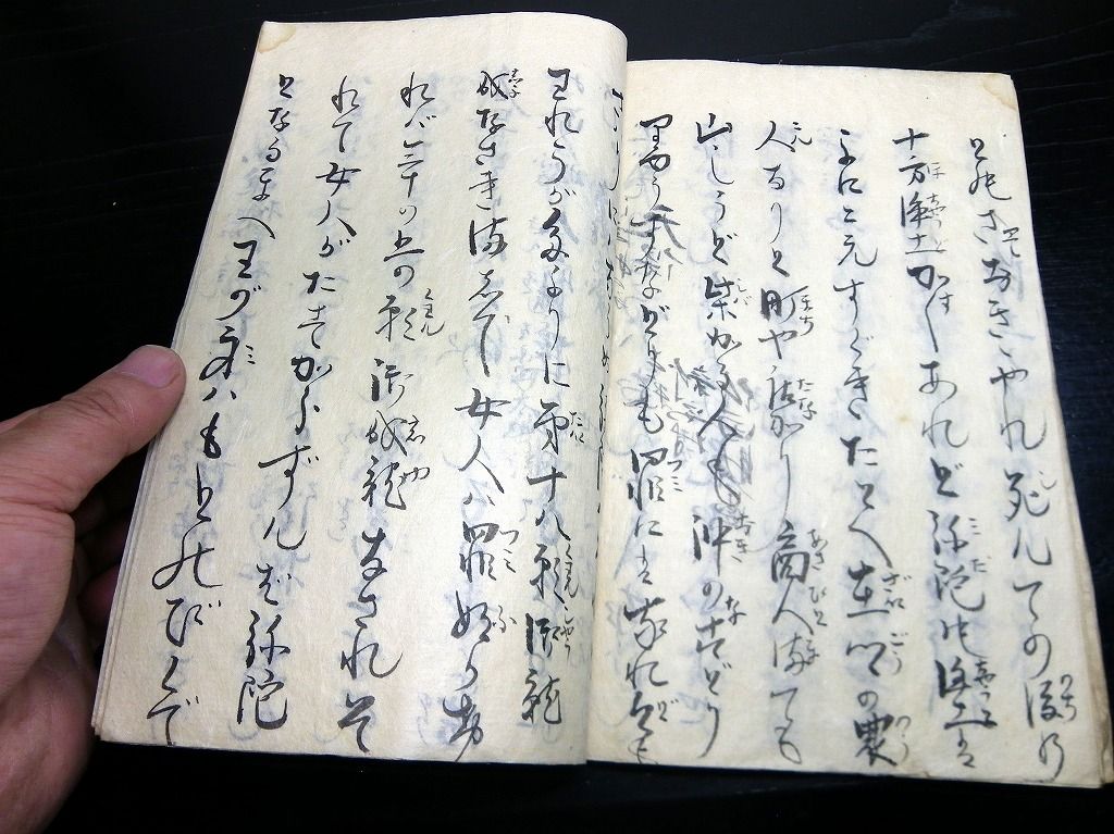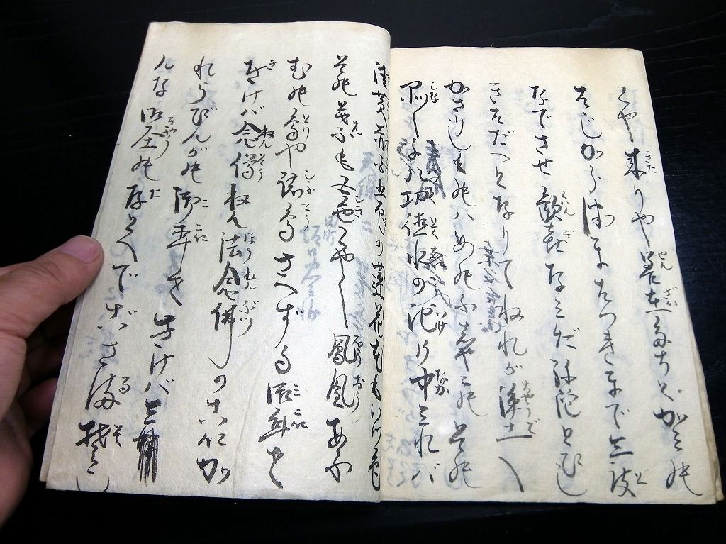 2019年08月20日 和本江戸期仏教口説き節写本「御明日上人くどき」1冊/古書古文書/手書き 和本江戸期仏教口説き節写本「御明日上人くどき」1冊/古書古文書/手書きです。 13丁。半紙本程度。手書き。 『データ』 【書名】 御明日上人くどき 【巻冊】 1冊 【成立】 江戸期の写本だと思いますが、正確な年代は不明。 タグ :#和本#仏教#歌謡#写本