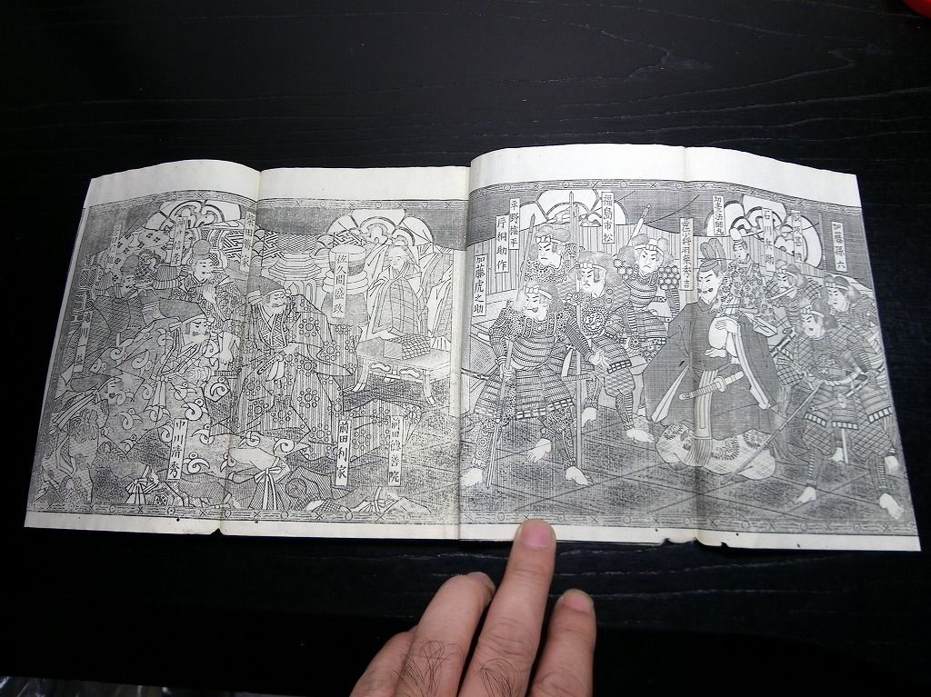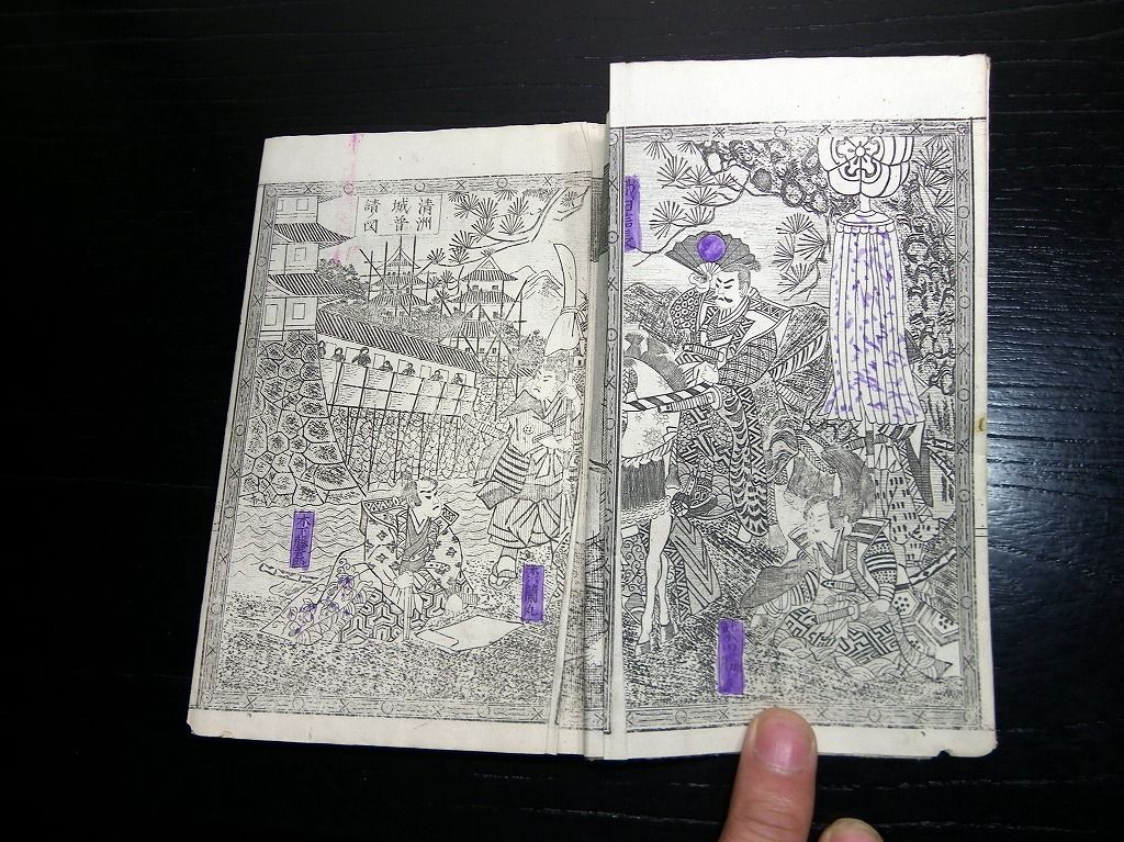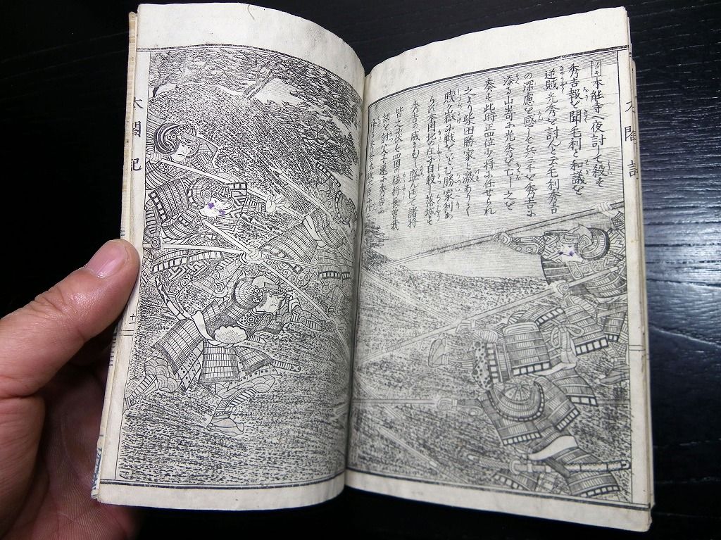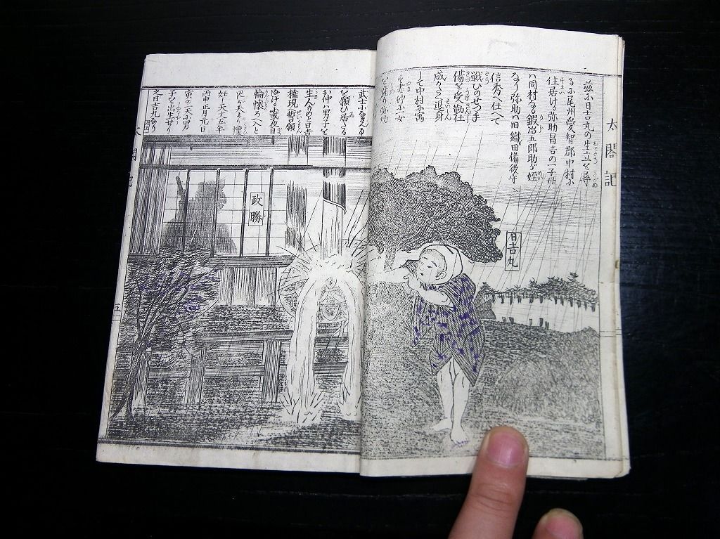 2019年08月31日 和本明治23年(1890)版「絵本太閤記」全1冊/絵入古書古文書/銅版摺り/堤吉兵衛 和本明治23年(1890)版「絵本太閤記」全1冊/絵入古書古文書/銅版摺り/堤吉兵衛です。 12丁。17cm×12cm。銅版刷り。元題簽。奥付あり。 『データ』 【書名】 絵本太閤記 【巻冊】 全1冊 【著者】 堤吉兵衛 【成立】 明治23年(1890)版 タグ :#和本#絵本#銅版画