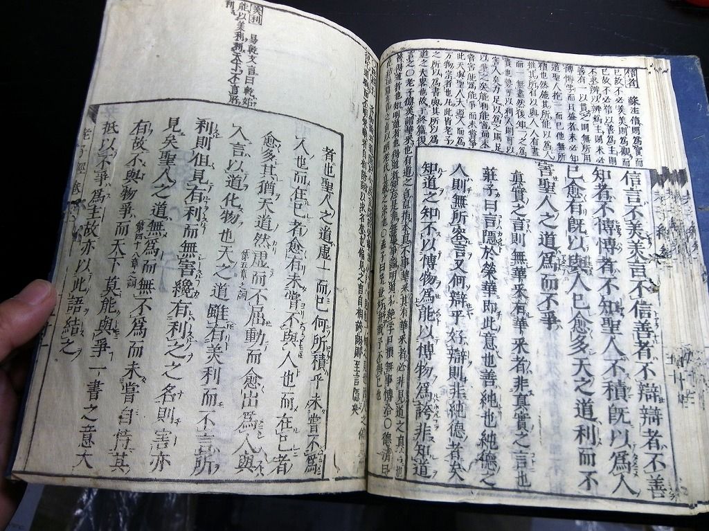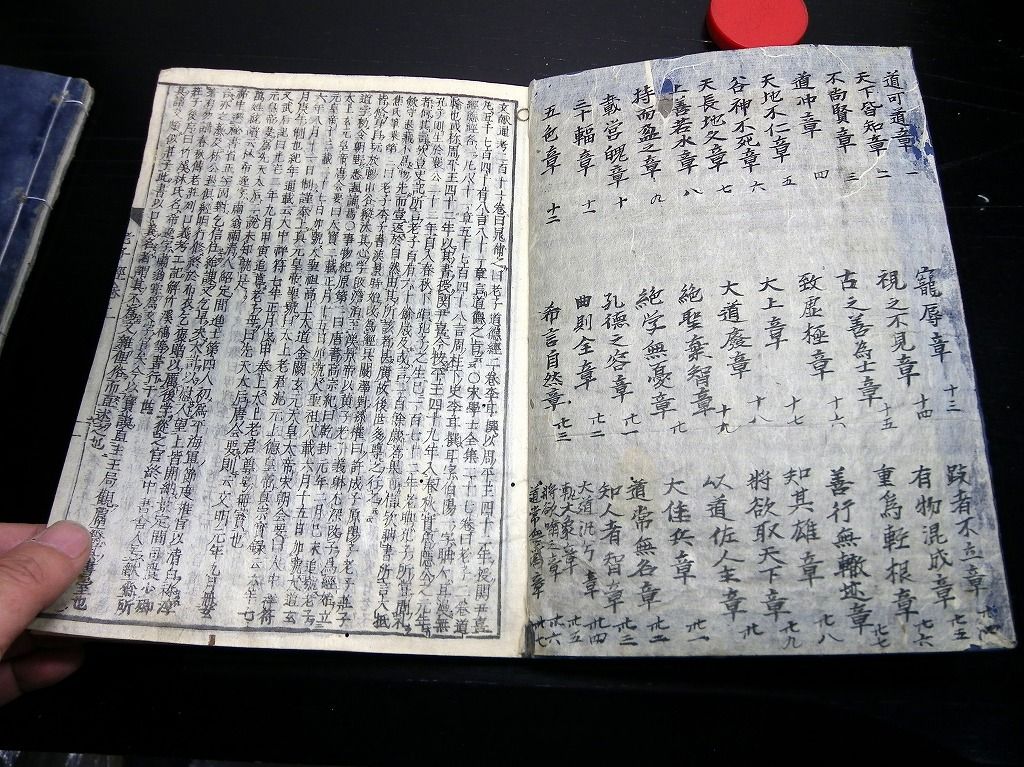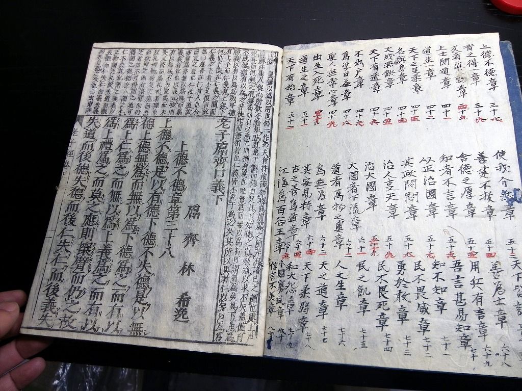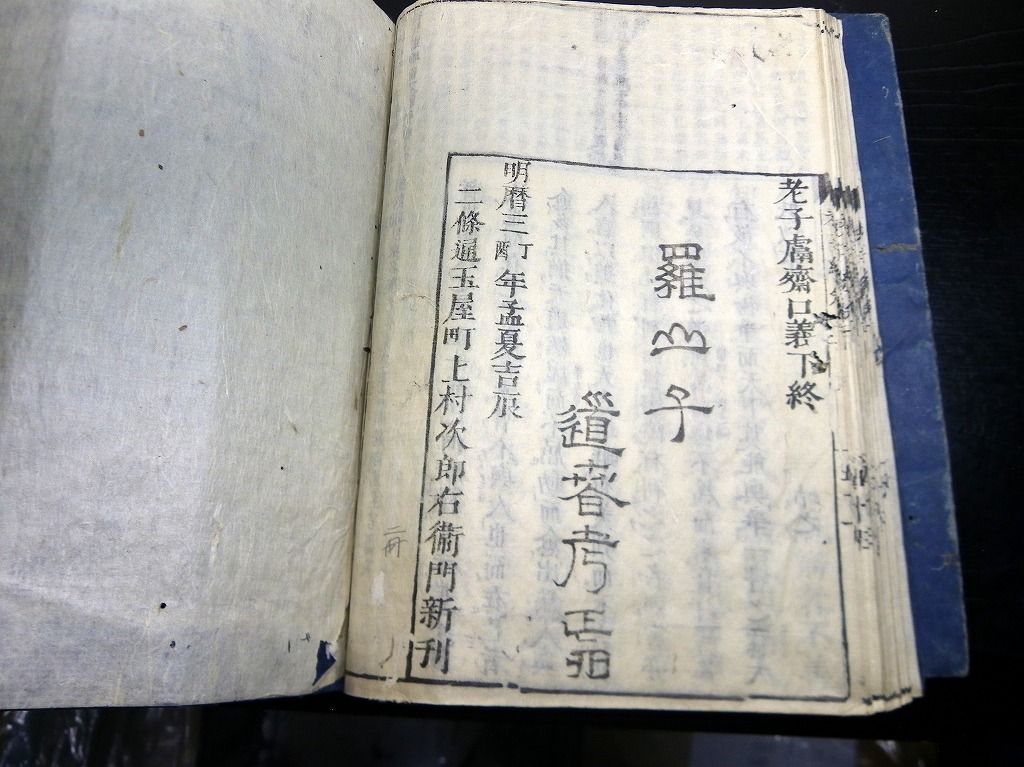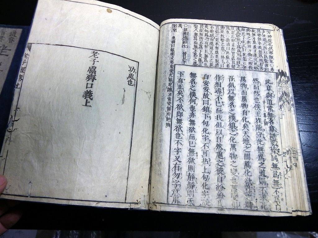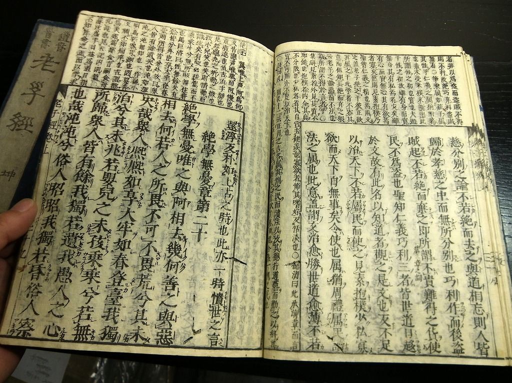 2019年08月29日 和本江戸明暦3年(1657)版老荘思想「道春首書老子経(老子鬳斎口義)」乾坤2冊揃/林羅山/古書古文書/木版摺り 和本江戸明暦3年(1657)版老荘思想「道春首書老子経(老子鬳斎口義)」乾坤2冊揃/林羅山/古書古文書/木版摺りです。 50、51丁。大本。木版刷り。元題簽。 『データ』 【書名】 道春首書老子経(老子鬳斎口義) 【巻冊】 乾坤2冊揃 【著者】 林羅山 【成立】 明暦3年(1657)版 タグ :#和本#老荘思想#林羅山