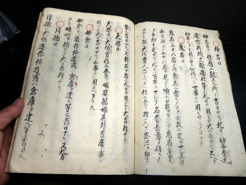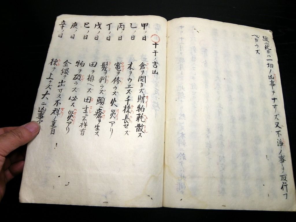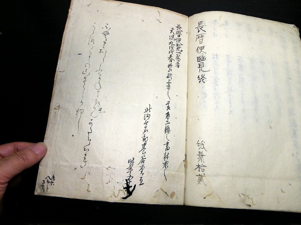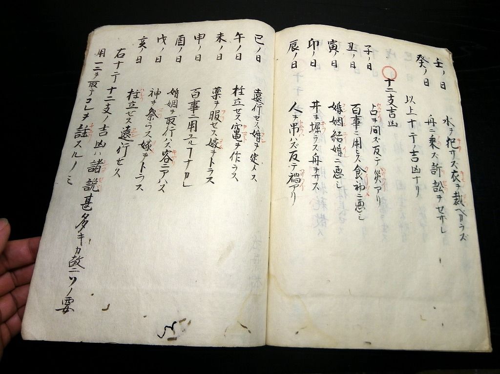 2019年08月13日 和本江戸天保9年(1838)暦占い写本「長暦便覧」全1冊/古書古文書/手書き 和本江戸天保9年(1838)暦占い写本「長暦便覧」全1冊/古書古文書/手書きです。 12丁。大本程度。手書き。 『データ』 【書名】 長暦便覧 【巻冊】 全1冊 【成立】 天保9年(1838)写 タグ :#和本#暦#暦法#写本