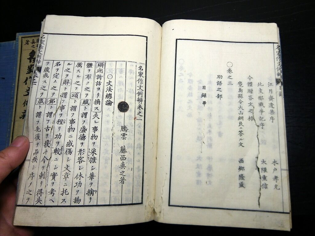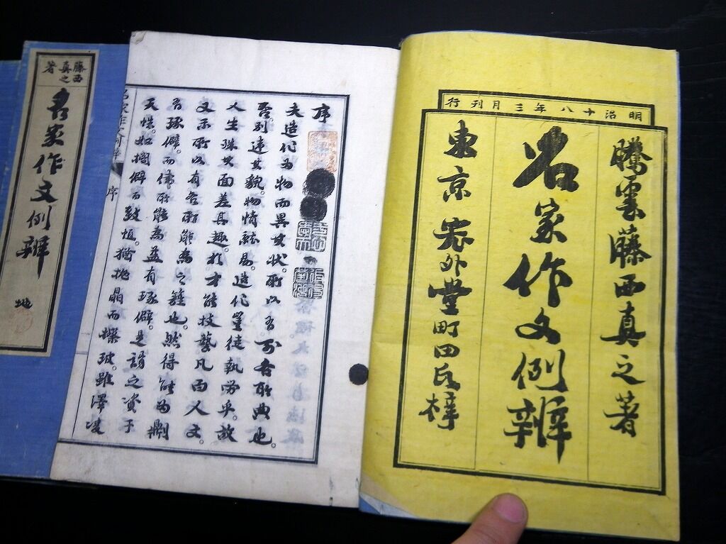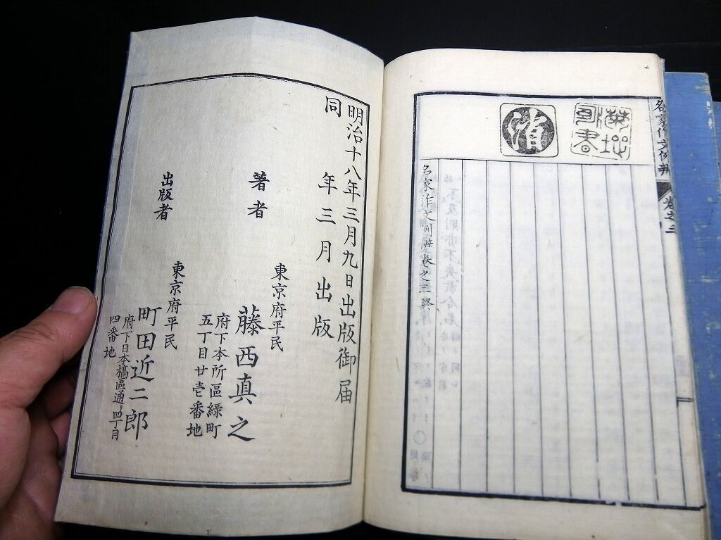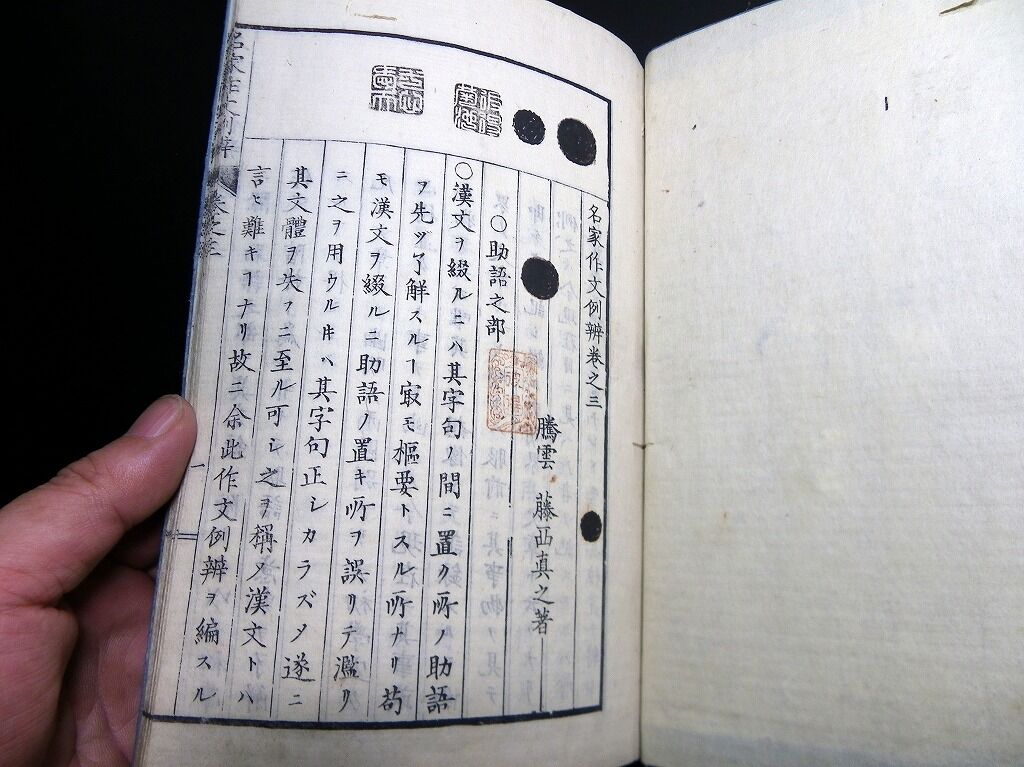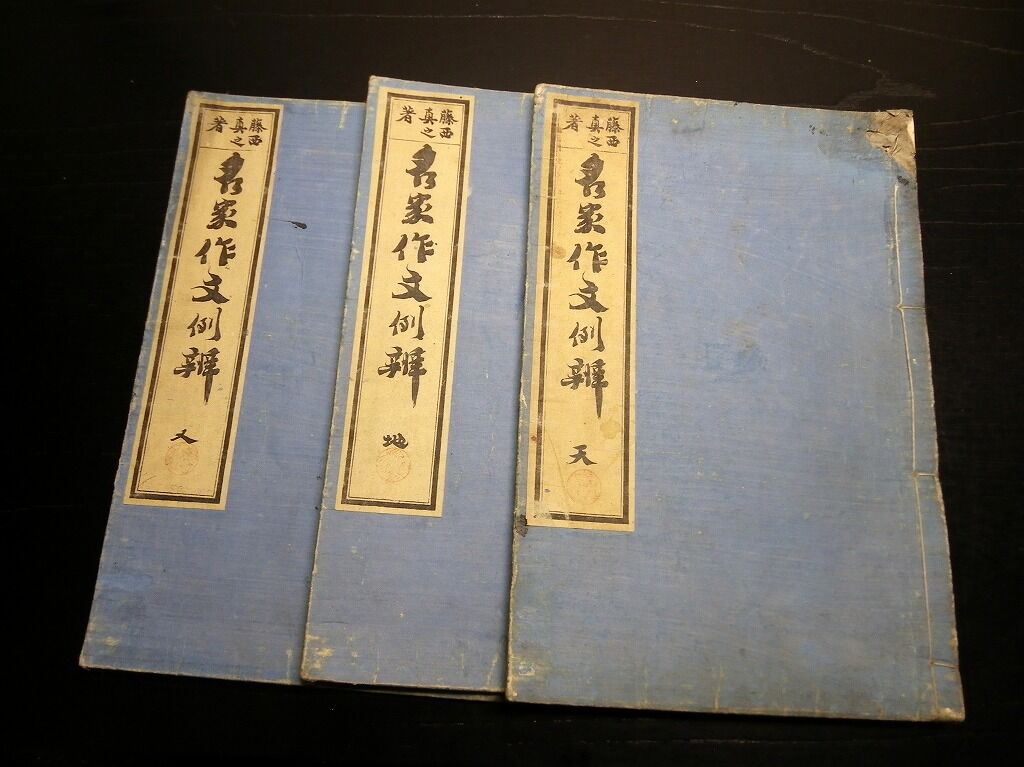 和本明治18年(1885)漢文体文例「名家作文例辨」天地人3冊揃/藤西真之/古書古文書/木版摺り