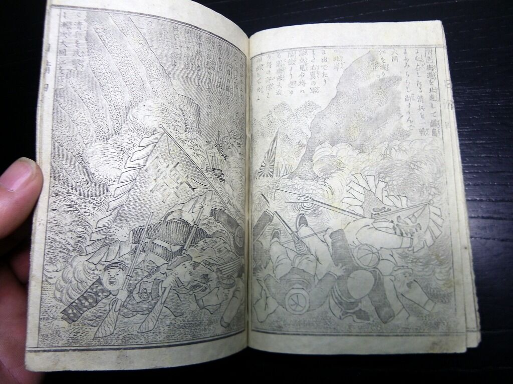 和本明治27年(1894)日清戦争絵本「日清開戦記」1冊/堤吉兵衛/古書古文書/銅版摺り