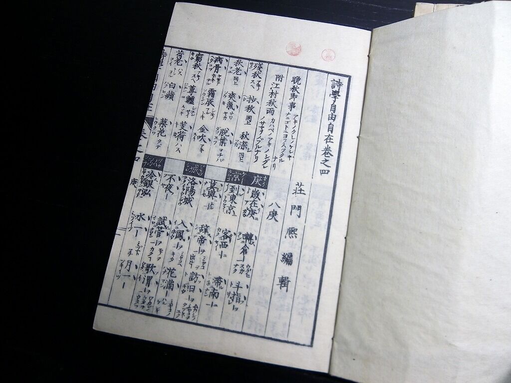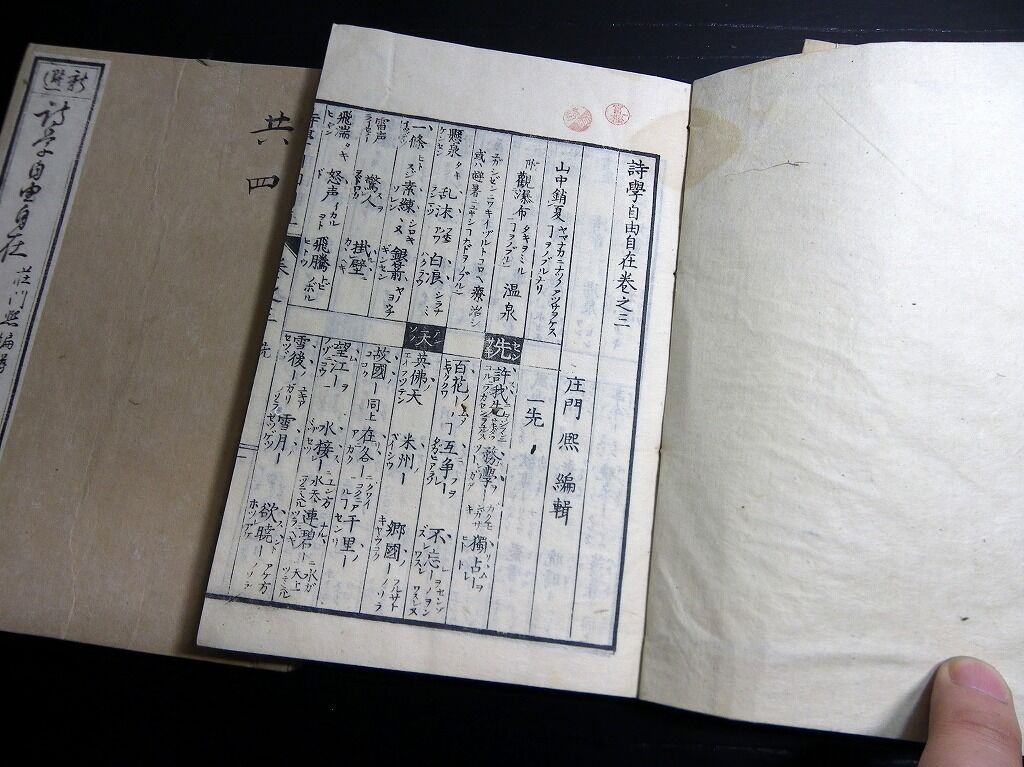 和本明治14年(1881)漢詩「詩学自由自在」4冊揃/荘門煕/古書古文書/木版摺り