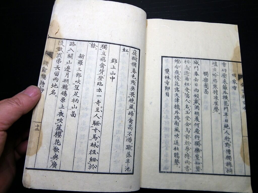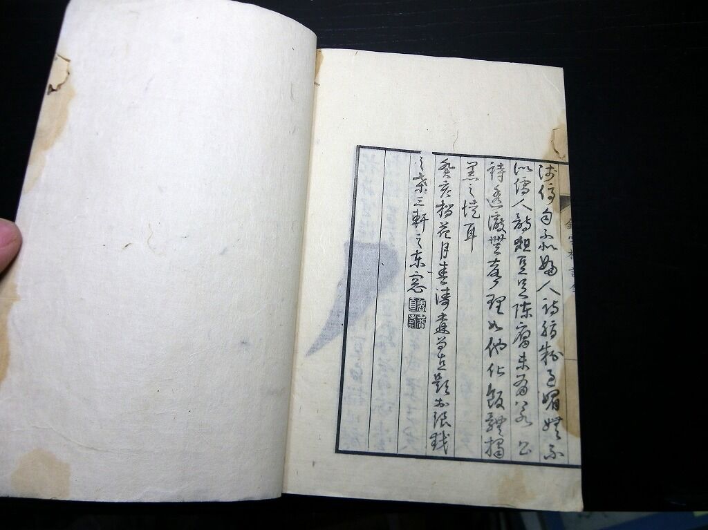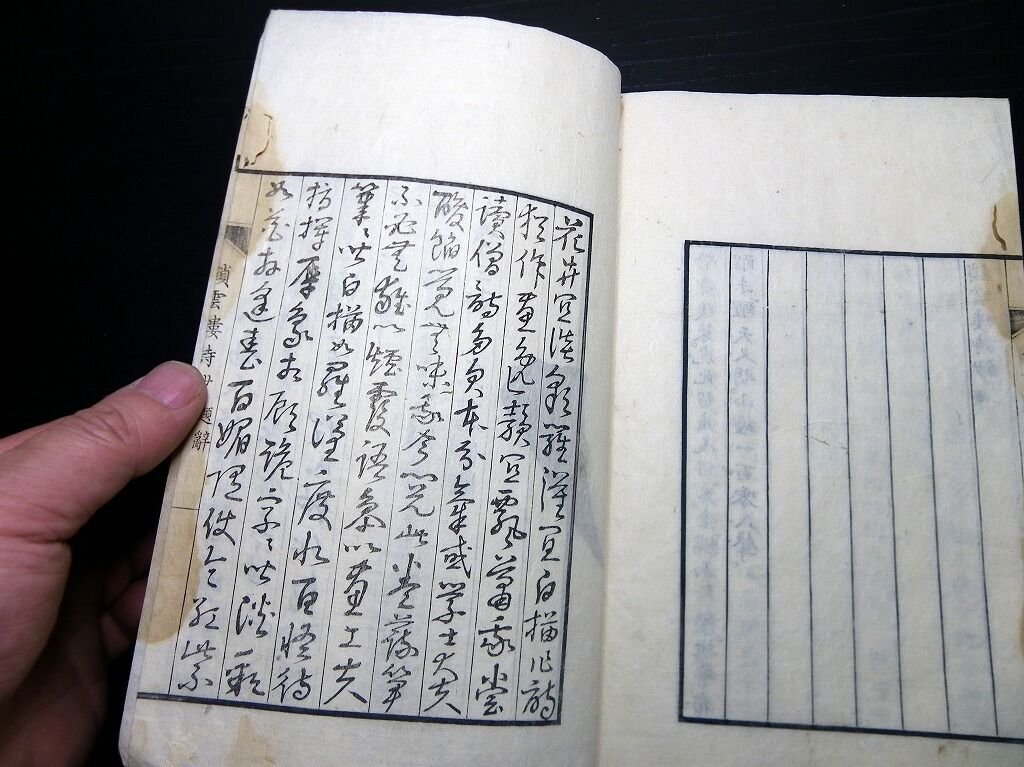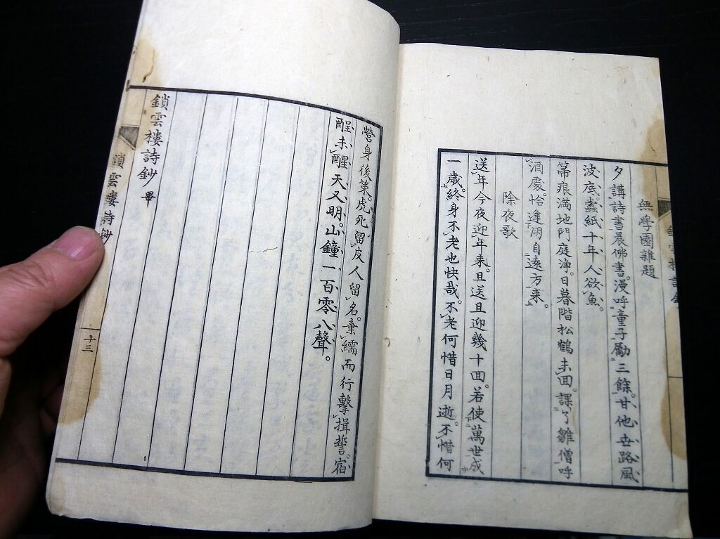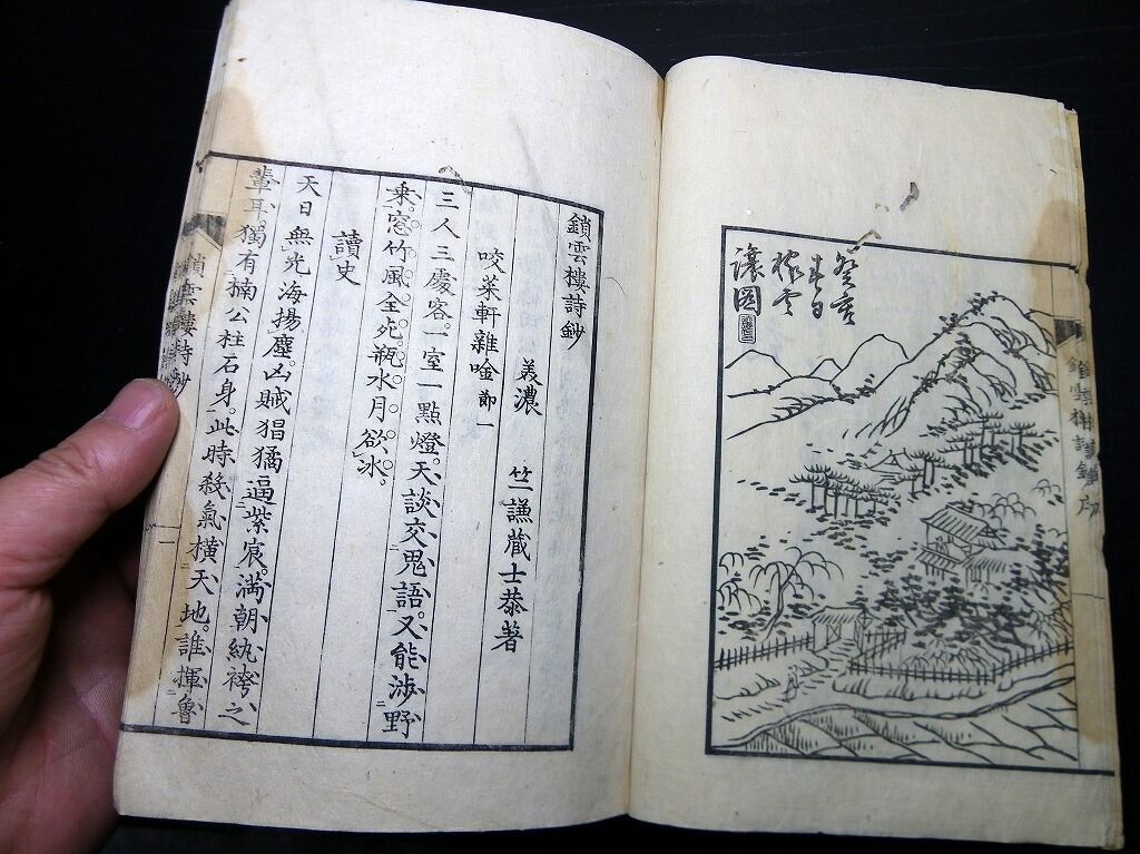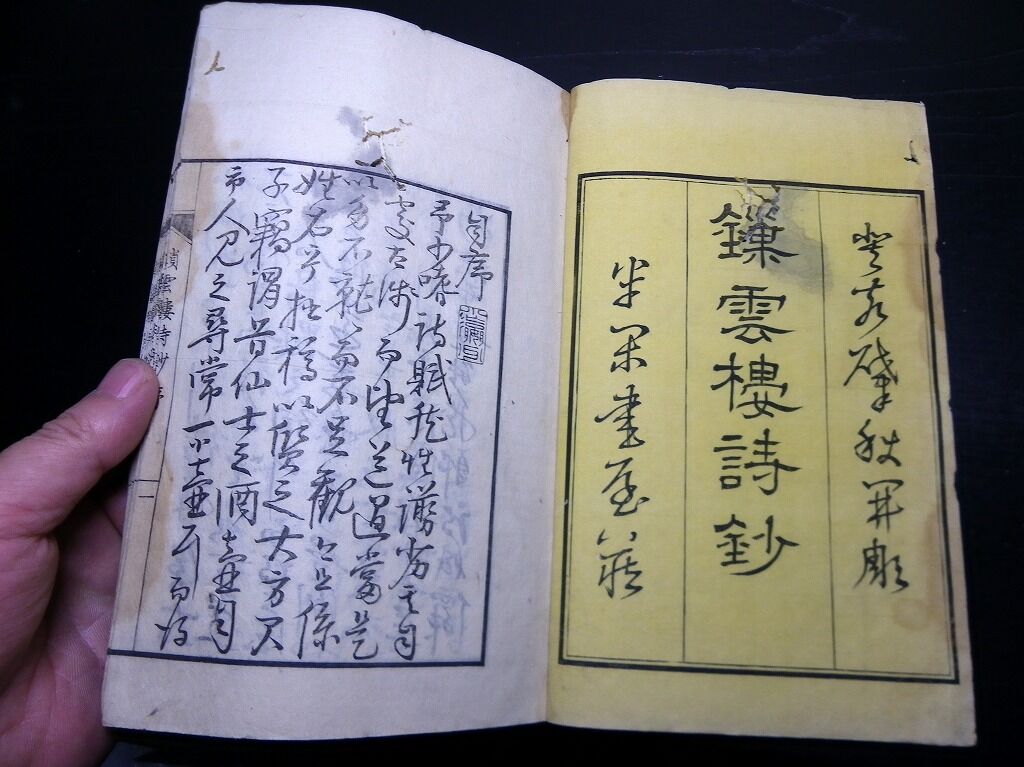 2021年05月08日 和本江戸文久3年(1863)跋漢詩「鎖雲楼詩鈔」全1冊/美濃/竺謙蔵士泰/古書古文書/木版摺り 和本江戸文久3年(1863)跋漢詩「鎖雲楼詩鈔」全1冊/美濃/竺謙蔵士泰/古書古文書/木版摺りです。3+13+1丁。半紙本。木版刷り。元題簽。見返しあり。『データ』【書名】 鎖雲楼詩鈔【巻冊】 全1冊【著者】 美濃/竺謙蔵【成立】 文久3年(1863)跋 タグ :#和本#漢詩