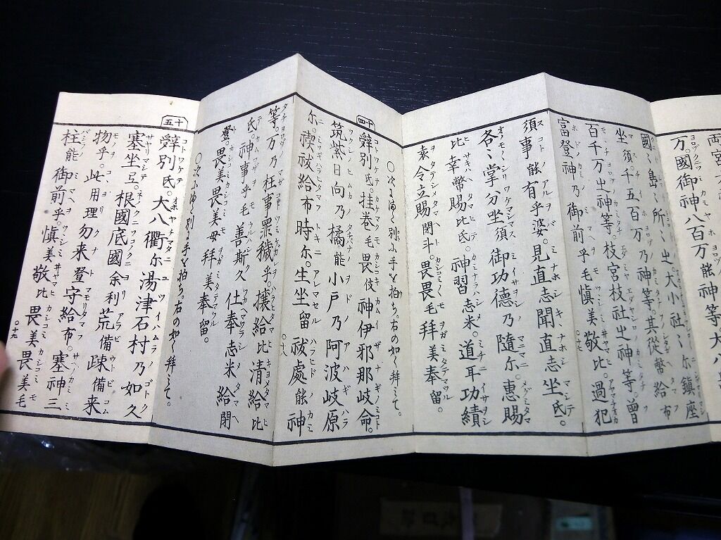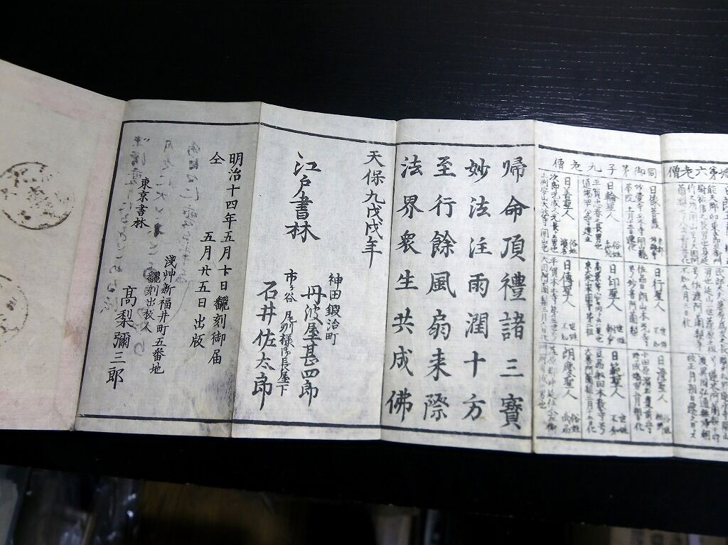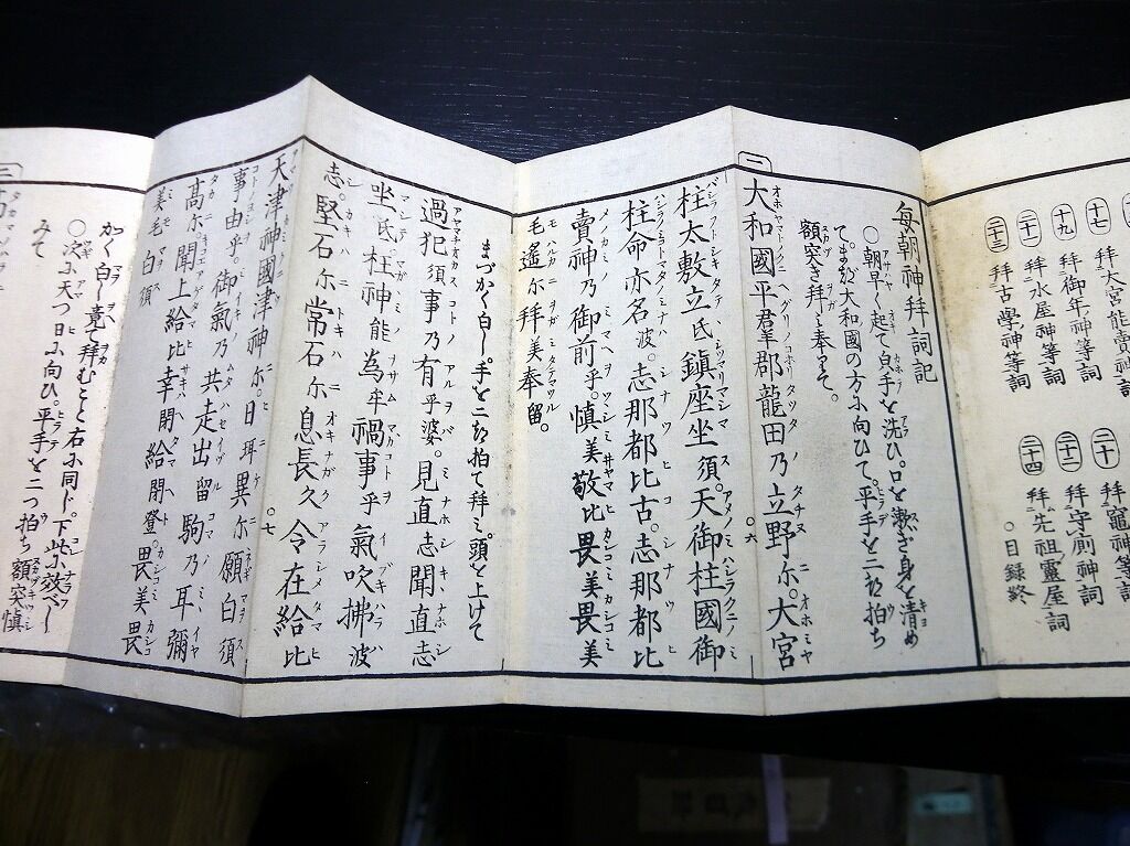 2021年05月24日 和本明治期扶桑教富士講折本「朝夕富士大神拝祝詞/神徳経」2点/古書古文書/木版摺り 和本明治期扶桑教富士講折本「朝夕富士大神拝祝詞/神徳経」2点/古書古文書/木版摺りです46、13丁。18cm×7.5cm。木版刷り。『データ』【書名】 朝夕富士大神拝祝詞/神徳経【巻冊】 上記の2点【成立】 明治期 タグ :#富士講#扶桑教