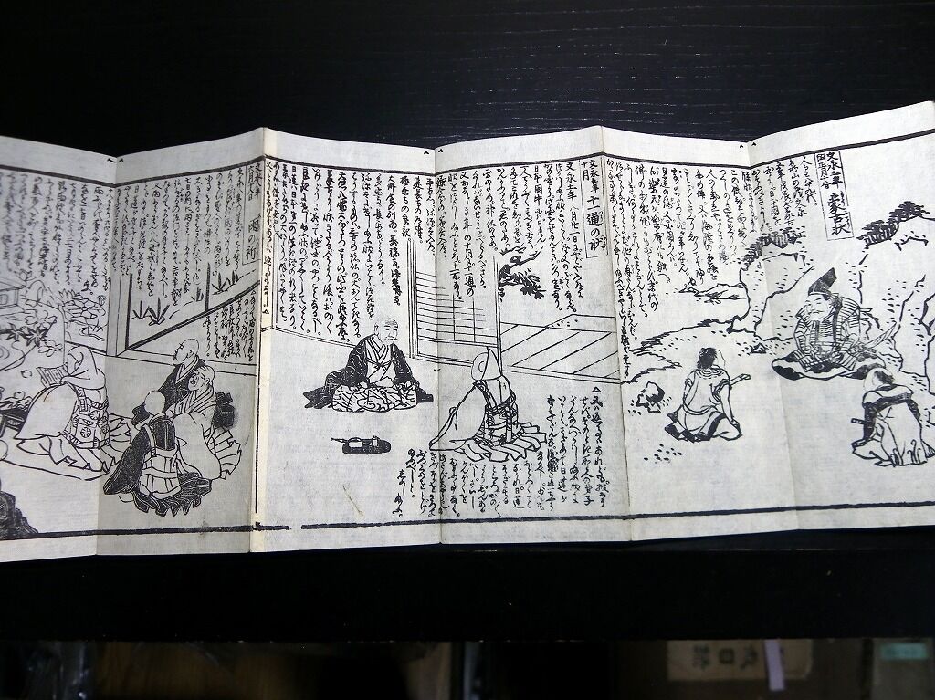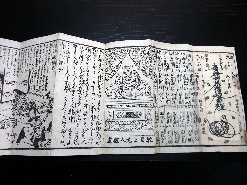 2021年05月24日 和本明治14年(1881)絵入仏教折本「日蓮御一代記」全1帖/古書古文書/木版摺り 和本明治14年(1881)絵入仏教折本「日蓮御一代記」全1帖/古書古文書/木版摺りです。37丁。15cm×7cm。木版刷り。元題簽。奥付あり。『データ』【書名】 日蓮御一代記【巻冊】 全1帖【成立】 明治14年(1881) タグ :#和本#仏教#日蓮