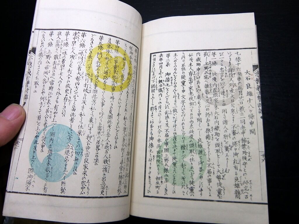 2021年05月31日 和本明治23年(1890)忠臣蔵「赤穂浪士夜討譚」坤1冊/井ノ口松之助/絵入古書古文書/銅版摺り 和本明治23年(1890)忠臣蔵「赤穂浪士夜討譚」坤1冊/井ノ口松之助/絵入古書古文書/銅版摺りです。21丁。中本。銅版刷り。元題簽。奥付あり。『データ』【書名】 赤穂浪士夜討譚【巻冊】 坤1冊です【著者】 井ノ口松之助【成立】 明治23年(1890) タグ :#和本#忠臣蔵#赤穂浪士#銅版摺り