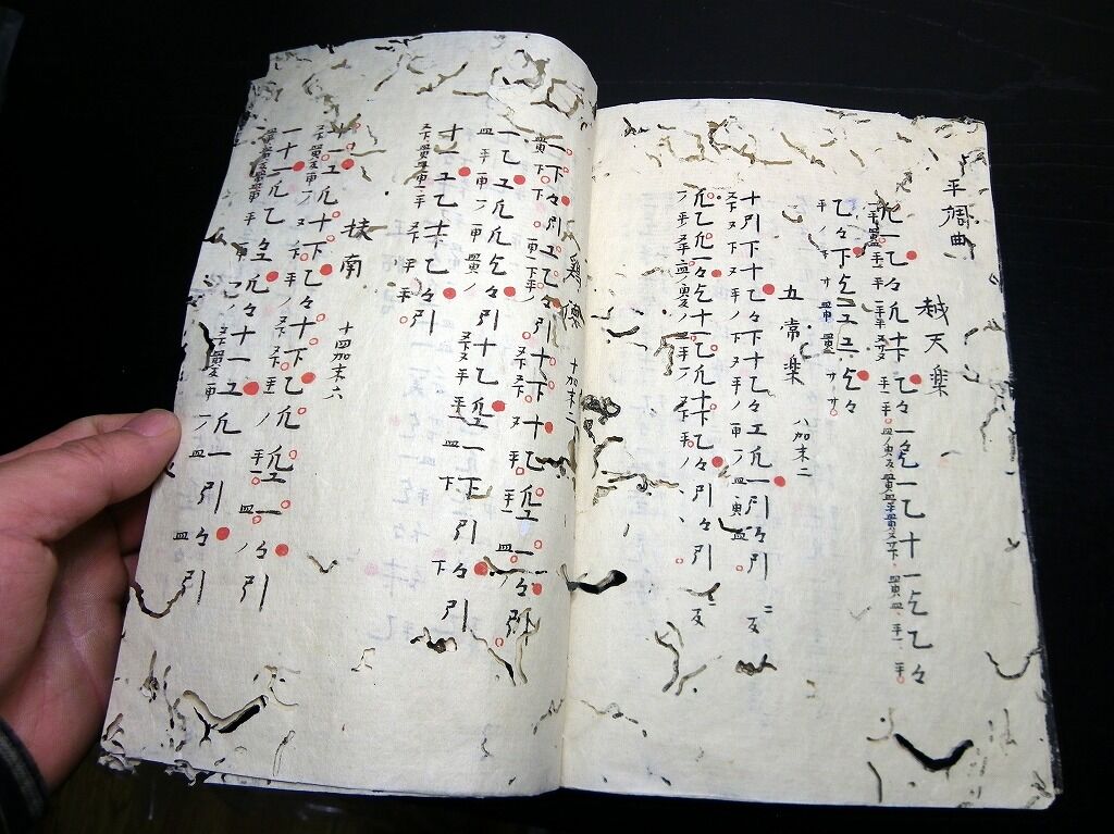2021年05月25日 和本雅楽笙楽譜「簫譜」全1冊/佐州智栄/古書古文書/手書き 和本雅楽笙楽譜「簫譜」全1冊/佐州智栄/古書古文書/手書きです。4丁。半紙本程度。手書き。『データ』【書名】 簫譜【巻冊】 全1冊【著者】 佐州智栄【成立】 江戸~明治期 タグ :#和本#写本#雅楽