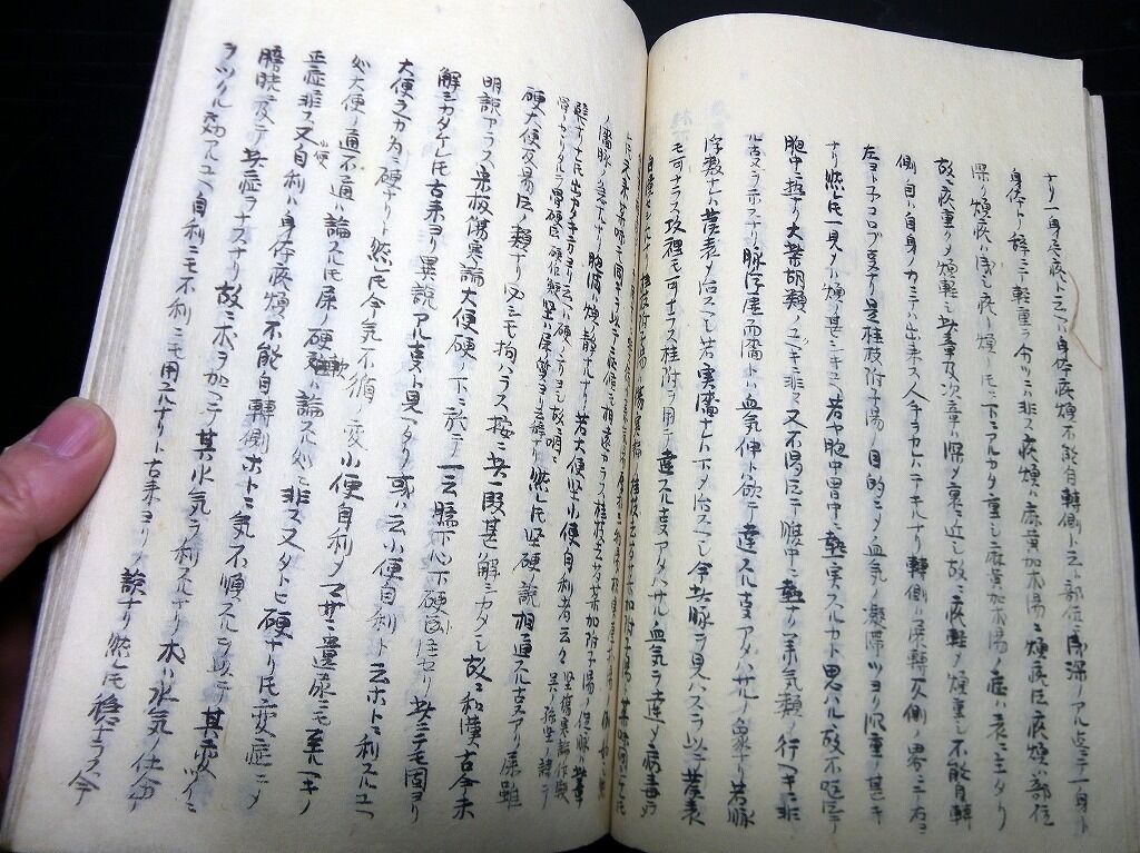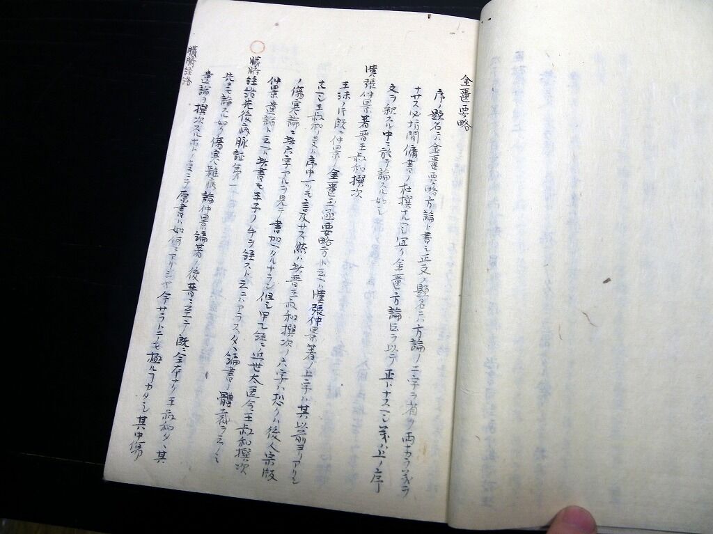 2022年02月15日 和本江戸期東洋医学写本「金匱方論存疑」1冊/勝沢愿/古書古文書/手書き 和本江戸期東洋医学写本「金匱方論存疑」1冊/勝沢愿/古書古文書/手書きです。60丁。半紙本程度。手書き。『データ』【書名】 金匱方論存疑【巻冊】 1冊【著者】 勝沢愿【成立】 江戸期の写本だと思いますが、正確な年代は不明。 タグ :#和本#写本#医学#東洋医学