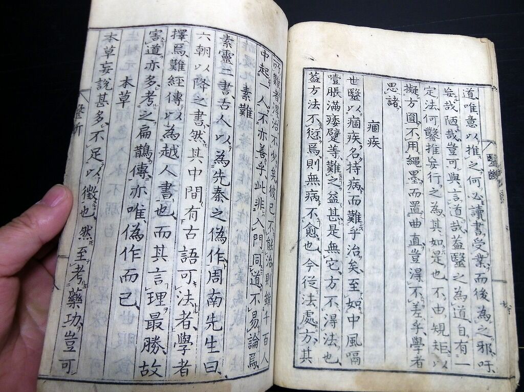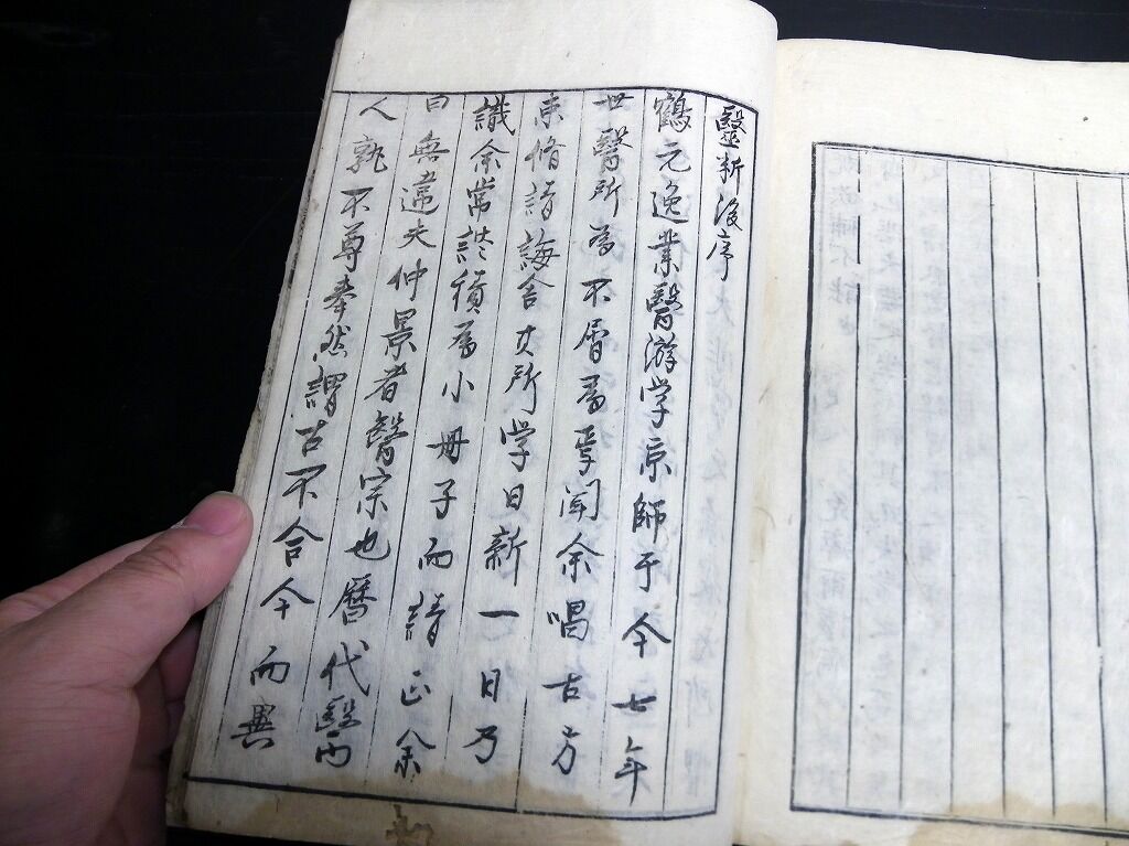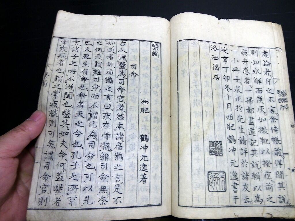 2022年02月25日 和本江戸宝暦9年(1759)跋東洋医学「医断」全1冊/鶴田元逸/吉益東洞の門人/古書古文書/木版摺り 和本江戸宝暦9年(1759)跋東洋医学「医断」全1冊/鶴田元逸/吉益東洞の門人/古書古文書/木版摺りです。4+19+3丁。大本。木版刷り。吉益東洞の医説を門人の鶴田元逸が記録し、刊行したもの。『データ』【書名】 医断【巻冊】 全1冊【著者】 鶴田元逸【成立】 宝暦9年(1759)跋 タグ :#和本#医学#東洋医学
