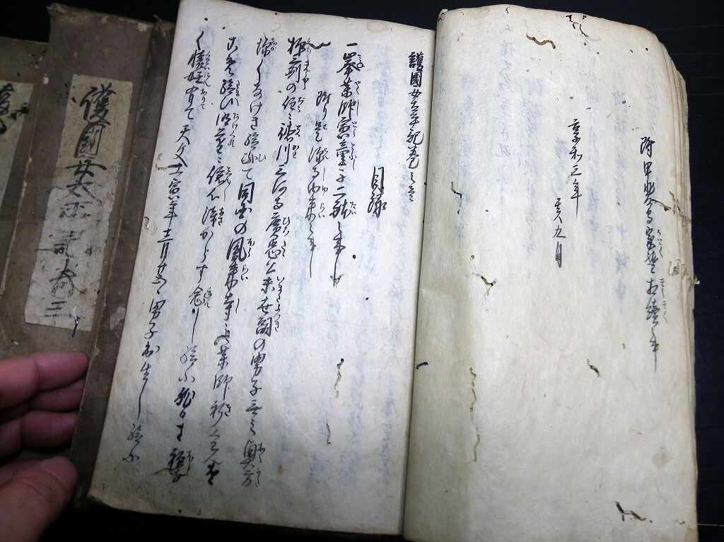 2022年02月18日 和本江戸安政4年(1857)柳沢騒動実録写本「護国女太平記」5冊揃/古書古文書/手書き/柳沢吉保 和本江戸安政4年(1857)柳沢騒動実録写本「護国女太平記」5冊揃/古書古文書/手書き/柳沢吉保です。44、39、40、40、42丁。半紙本程度。手書き。『データ』【書名】 護国女太平記【巻冊】 5冊揃【成立】 安政4年(1857)写 タグ :#和本#写本#柳沢騒動