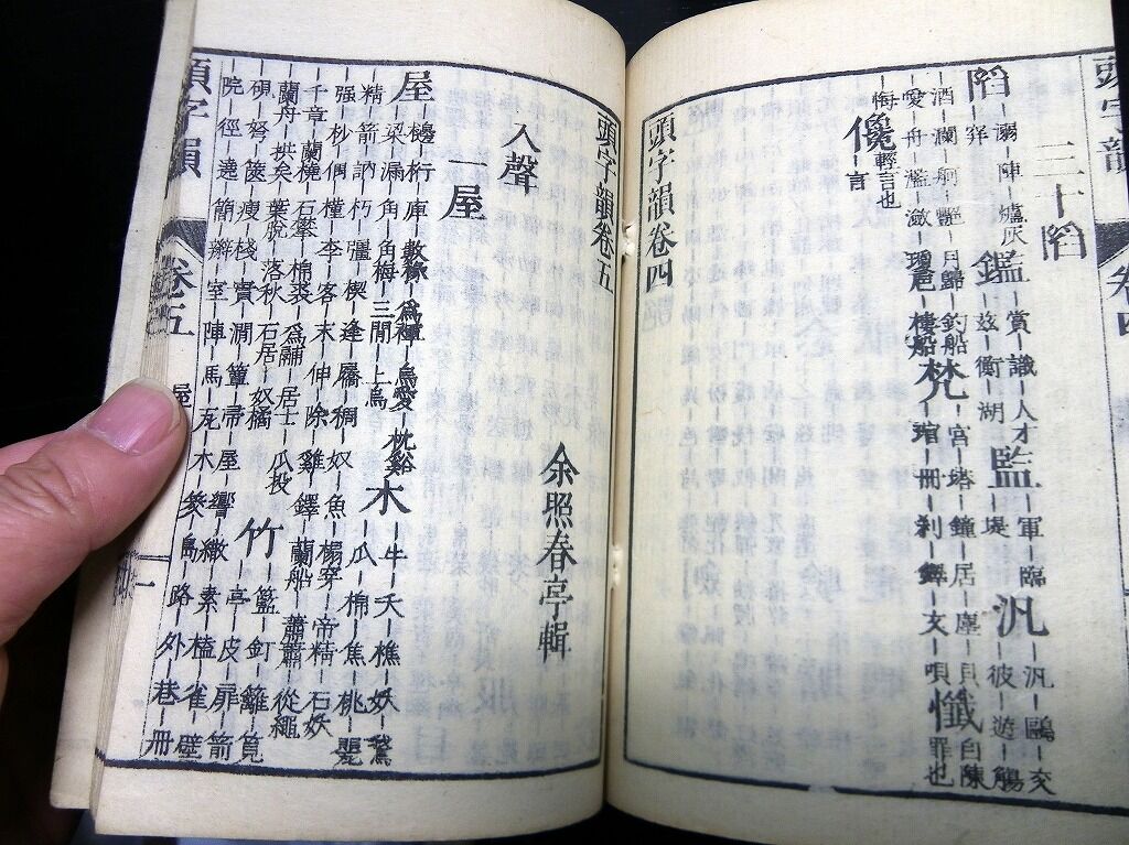 2022年04月24日 和本明治摺り漢詩漢字辞書「頭字韻」4冊揃/余照春亭/三重県蔵版/古書古文書/木版摺り 和本明治摺り漢詩漢字辞書「頭字韻」4冊揃/余照春亭/三重県蔵版/古書古文書/木版摺りです。2+41、40、32、33+26+1丁。中本。木版刷り。元題簽。見返しあり。三重県蔵版。『データ』【書名】 頭字韻【巻冊】 4冊揃【著者】 余照春亭 撰【成立】 明治摺り タグ :#和本#古書#辞書#漢字#漢詩