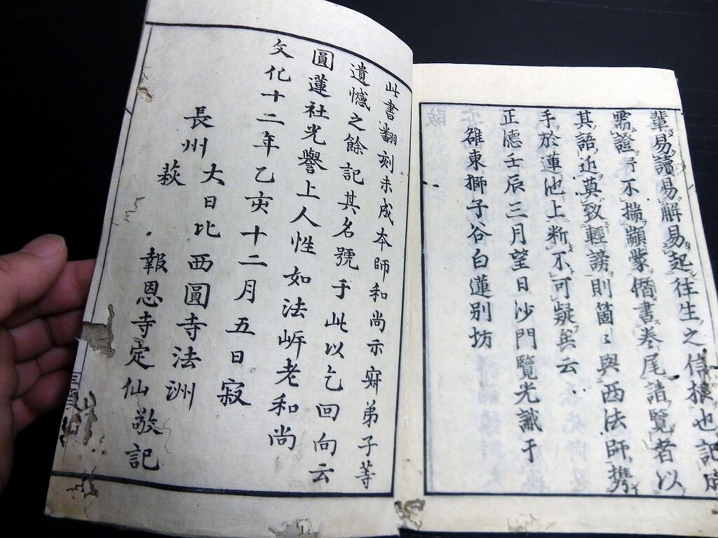 2022年04月26日 和本江戸弘化2年(1845)仏教写本「ちおんのはしかき」1冊/古書古文書/手書き 和本江戸弘化2年(1845)仏教写本「ちおんのはしかき」1冊/古書古文書/手書きです。5丁。大本程度。手書き。『データ』【書名】 ちおんのはしかき【巻冊】 1冊【成立】 弘化2年(1845) タグ :#和本#仏教#写本#古文書