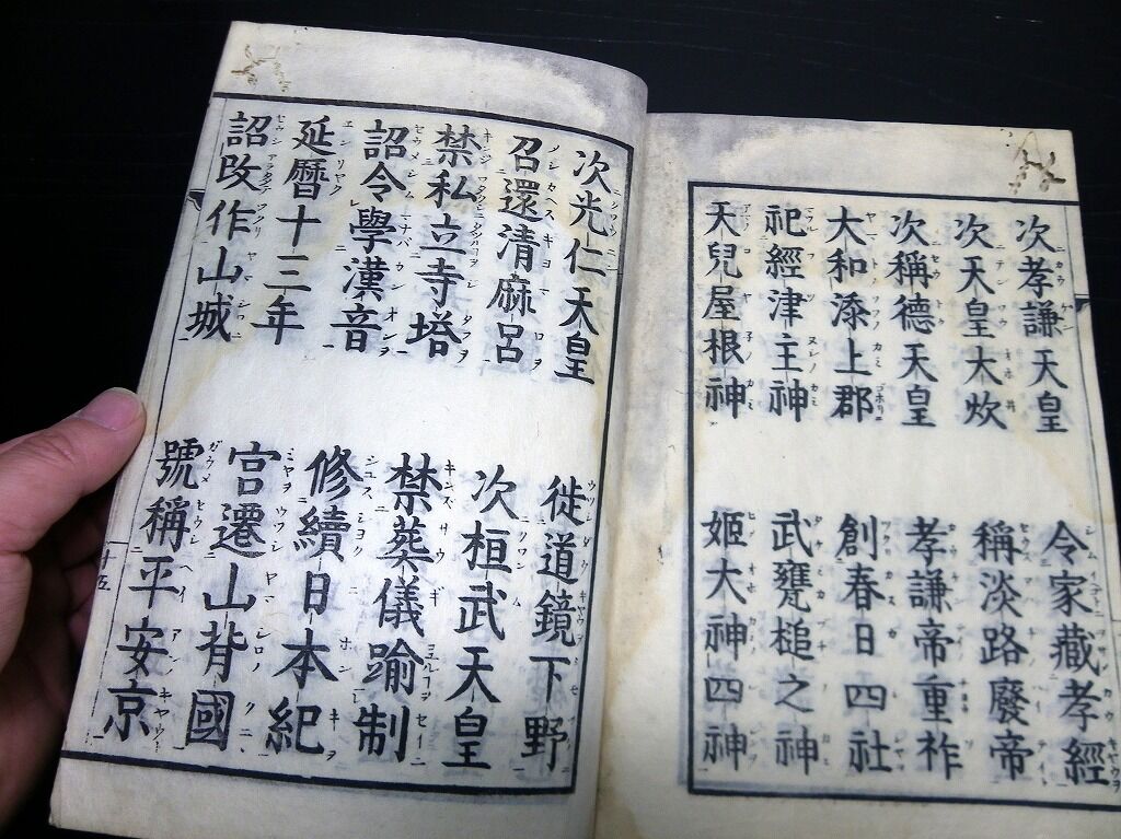 2022年04月28日 和本江戸期絵入往来物「本朝千字文」全1冊/貝原益軒/戸川後学/古書古文書/木版摺り 和本江戸期絵入往来物「本朝千字文」全1冊/貝原益軒/戸川後学/古書古文書/木版摺りです。21丁。大本。木版刷り。見返しあり。奥付あり(刊年の記載なし)。『データ』【書名】 本朝千字文【巻冊】 全1冊【著者】 貝原益軒 著 戸川後学 傍註【成立】 江戸後期 タグ :#和本#往来物