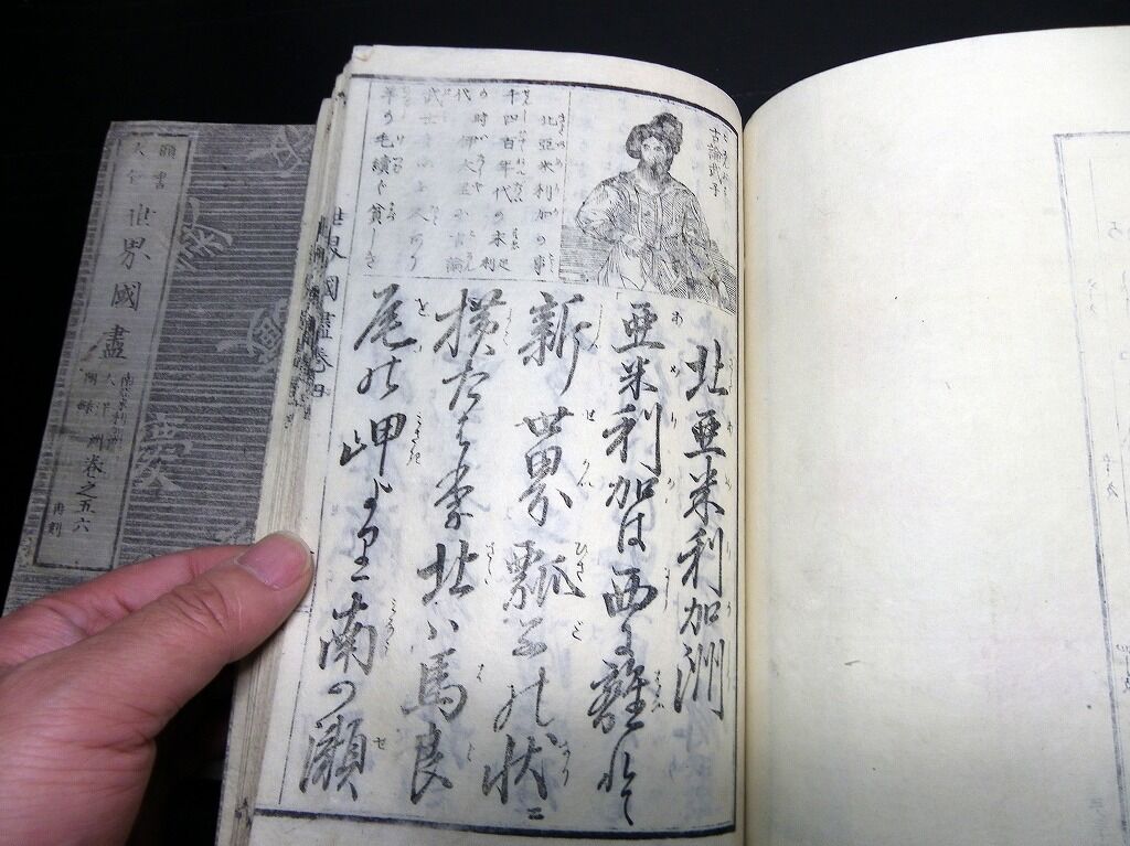 2022年04月25日 和本明治4年(1871)福沢諭吉地誌「世界国尽」3冊揃/古地図/絵入古書古文書/木版摺り 和本明治4年(1871)福沢諭吉地誌「世界国尽」3冊揃/古地図/絵入古書古文書/木版摺りです。9+18+17、34+25、21+22丁。半紙本。木版刷り。元題簽。見返しあり。『データ』【書名】 世界国尽【巻冊】 3冊揃【著者】 福沢諭吉【成立】 明治4年(1871) タグ :#和本#福沢諭吉#地誌#古書