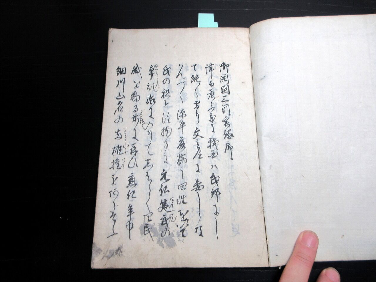 2023年08月23日 和本江戸期松平家伝記写本「御開国三河実録」1冊/徳川家康/古書古文書/手書き 和本江戸期松平家伝記写本「御開国三河実録」1冊/徳川家康/古書古文書/手書きです。62丁。24cm×16.5cm。手書き。『データ』【書名】 御開国三河実録【巻冊】 巻1、1冊です【成立】 江戸期の写本だと思いますが、正確な年代は不明。 タグ :#和本#古書#古文書#JAPAN#antiquebook