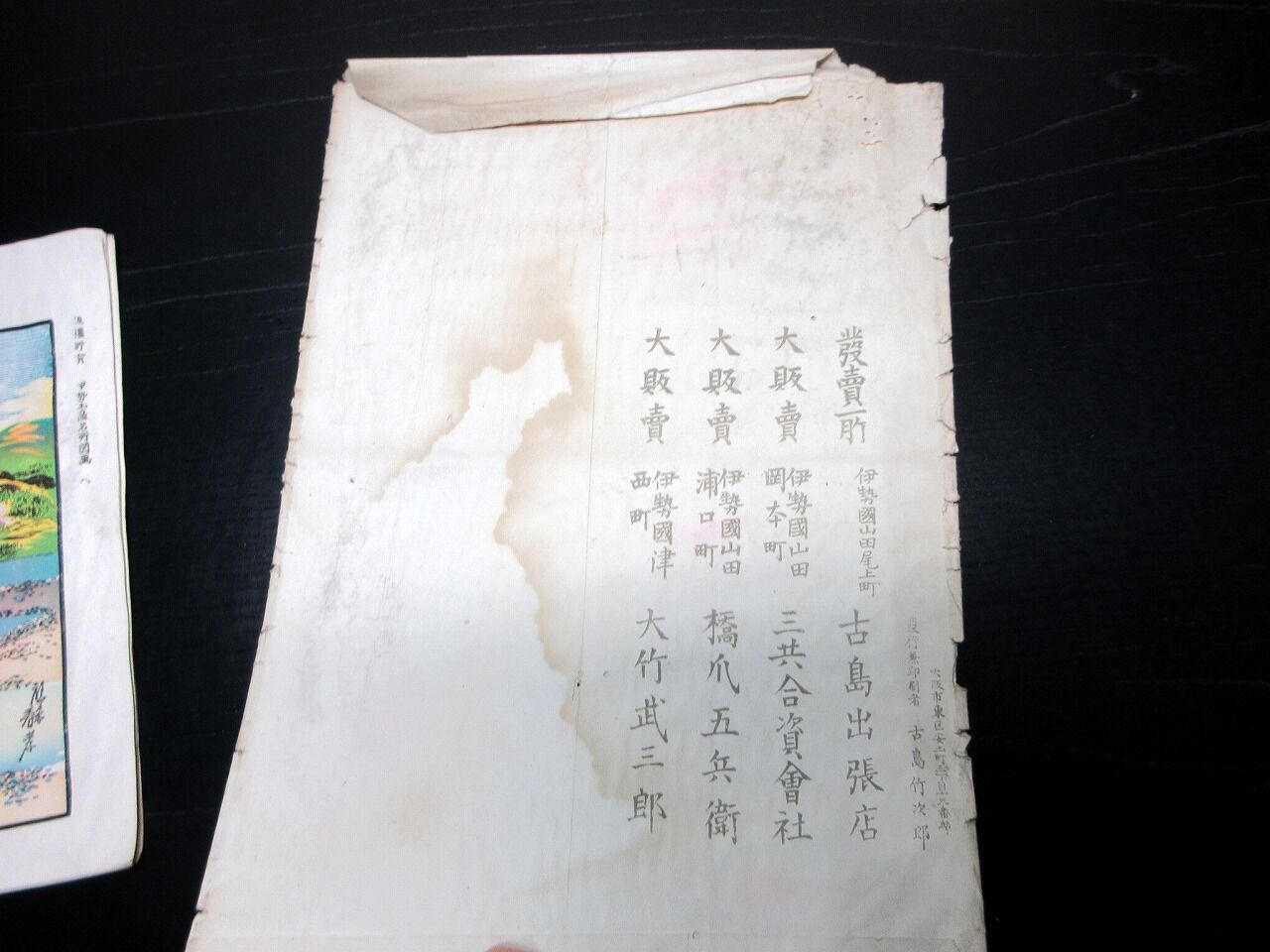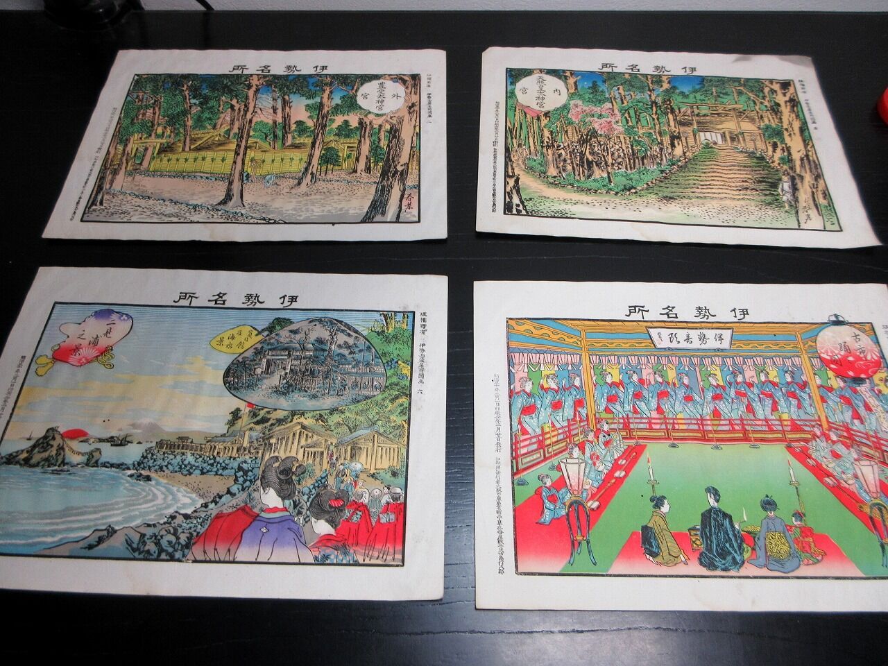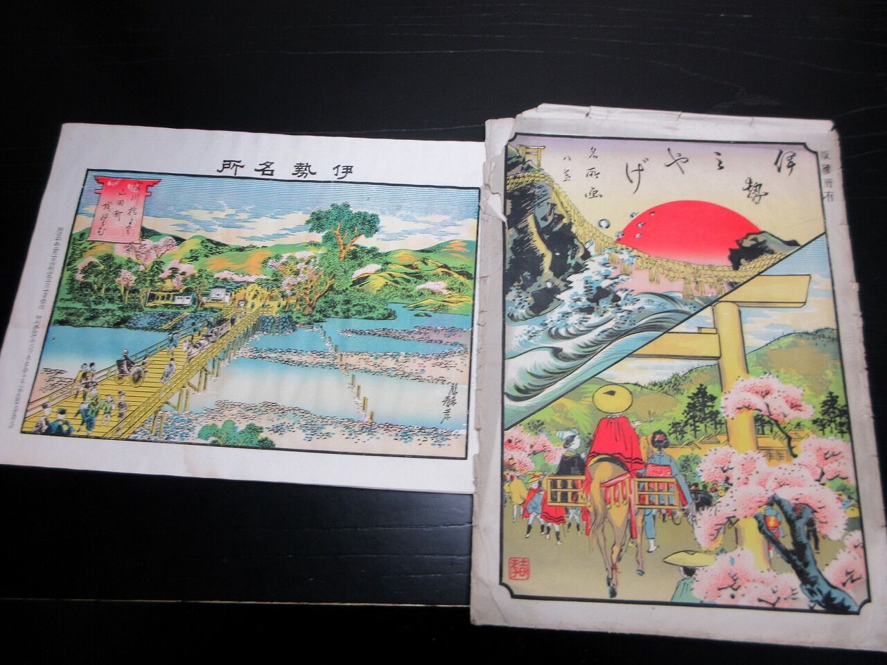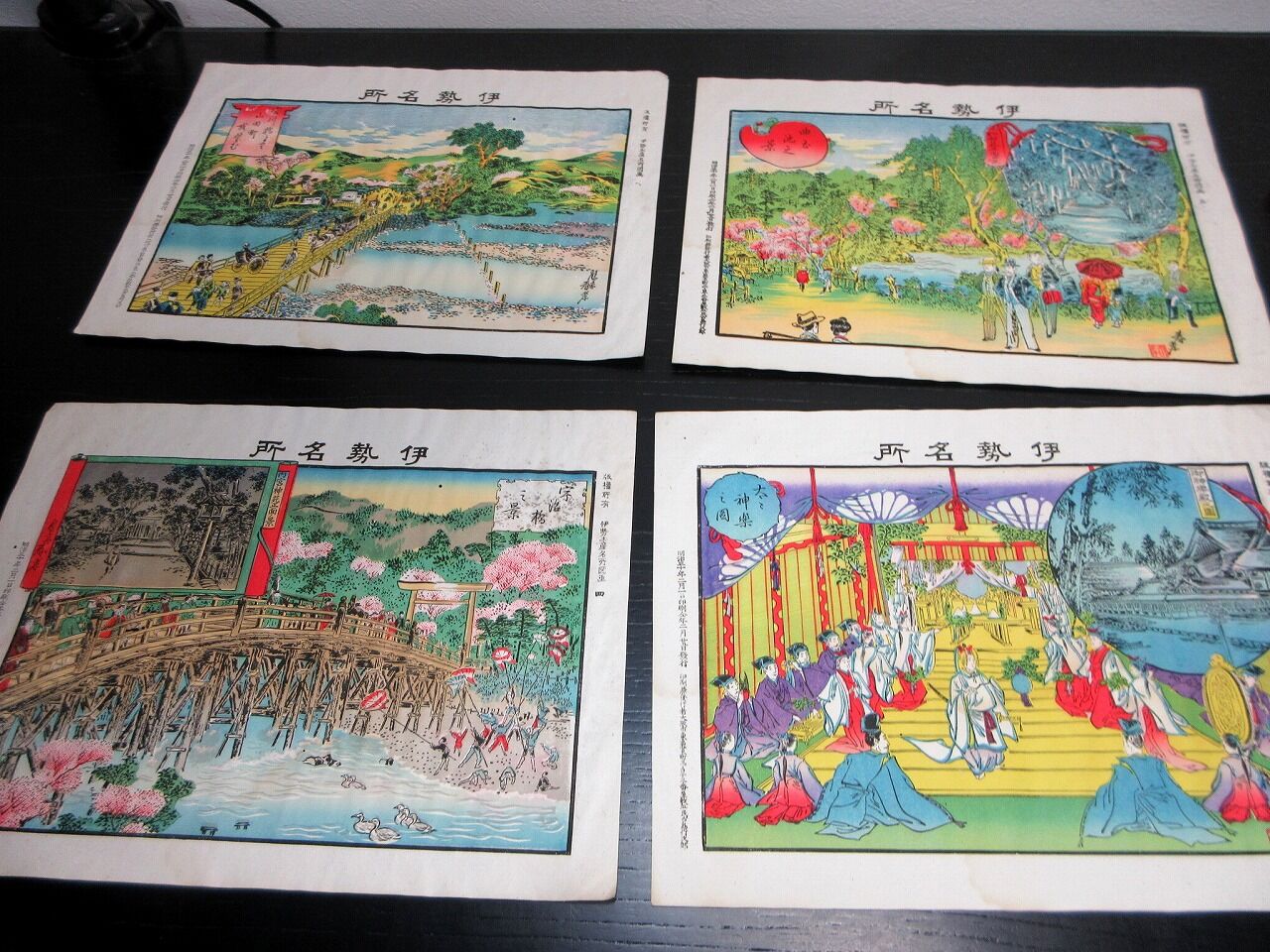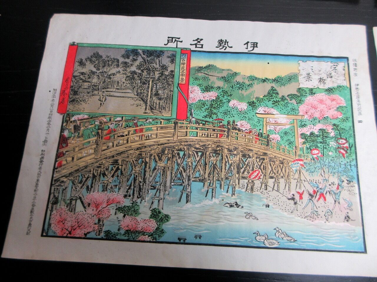 2023年10月22日 明治30年(1897)「伊勢みやげ(伊勢名所)」8枚/袋付き/古島竹次郎/石版画 明治30年(1897)「伊勢みやげ(伊勢名所)」8枚/袋付き/古島竹次郎/石版画です。18.5cm×25.5cm。石版刷り。袋付き。奥付あり。【書名】 伊勢みやげ(伊勢名所)【巻冊】 8枚【著者】 古島竹次郎【成立】 明治30年(1897) タグ :#JAPAN#antiquebooks