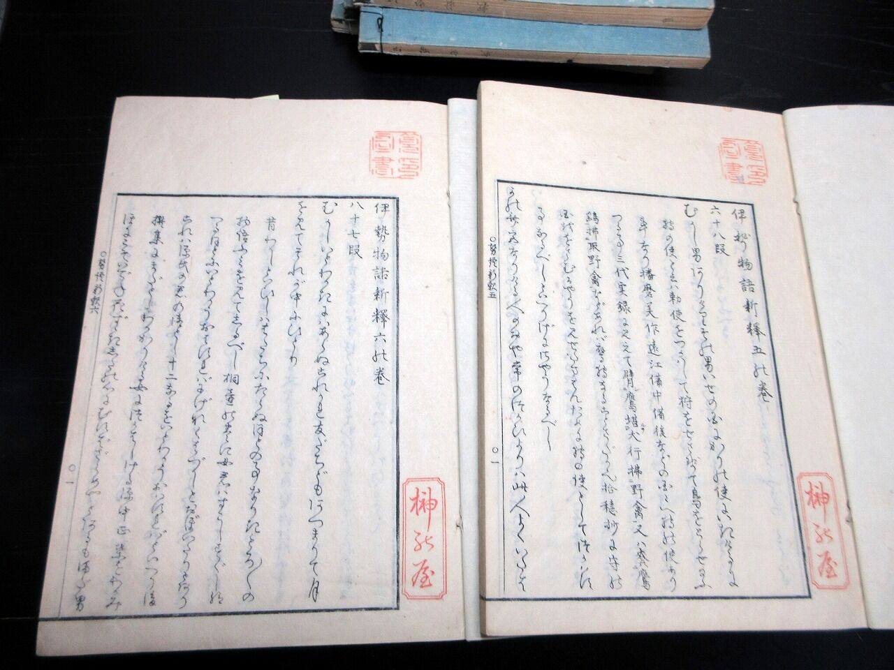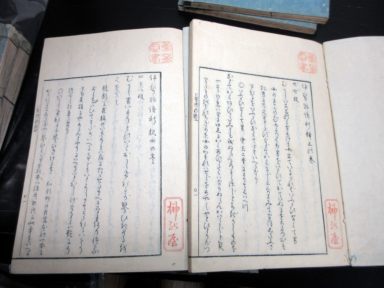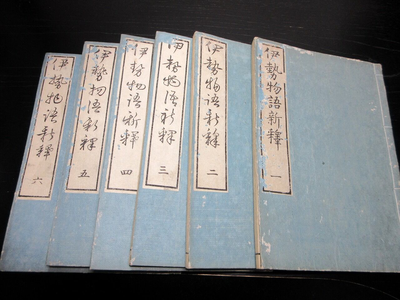 2023年10月20日 和本江戸文政元年(1818)国学「伊勢物語新釈」6冊揃い/藤井高尚/古書古文書/木版摺り 和本江戸文政元年(1818)国学「伊勢物語新釈」6冊揃い/藤井高尚/古書古文書/木版摺りです。5+4+48、49、34、53、58、54+3丁。25.5cm×18cm。木版刷り。元題簽。奥付あり。【書名】 伊勢物語新釈【巻冊】 6冊揃い【著者】 藤井高尚【成立】 文政元年(1818) タグ :#和本#国学#JAPAN#antiquebooks