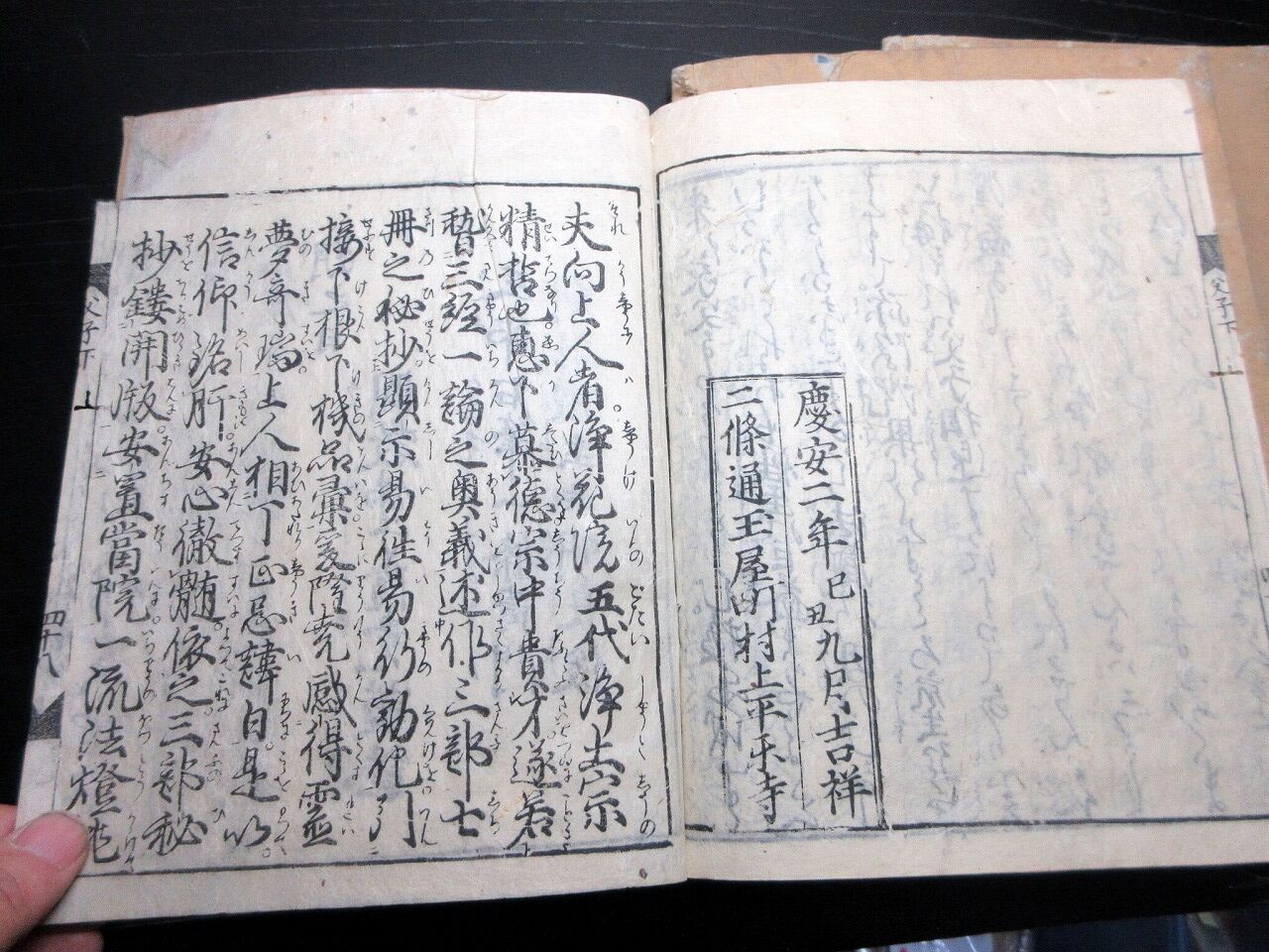2023年10月26日 和本江戸慶安2年(1649)版仏教「三部仮名鈔(帰命本願抄/西要抄/父子相迎)」3冊揃い/向阿証賢/古書古文書/木版摺り 和本江戸慶安2年(1649)版仏教「三部仮名鈔(帰命本願抄/西要抄/父子相迎)」3冊揃い/向阿証賢/古書古文書/木版摺りです。45+18、28+27、48丁。26cm×20cm。木版刷り。元題簽【書名】 三部仮名鈔(帰命本願抄/西要抄/父子相迎)【巻冊】 上記の3冊です【著者】 向阿証賢【成立】 慶安2年(1649)版 タグ :#和本#仏教#JAPAN#antiquebooks