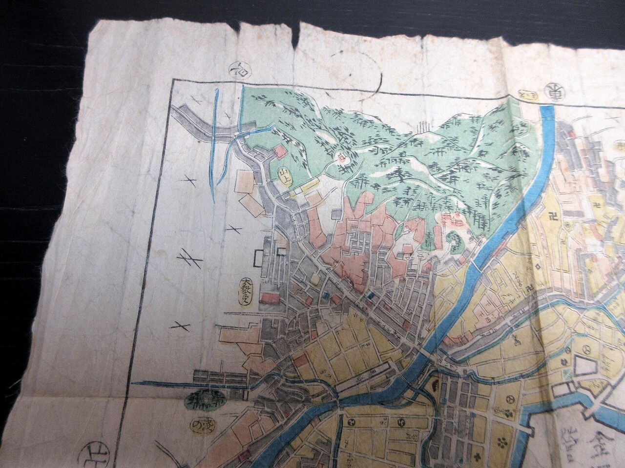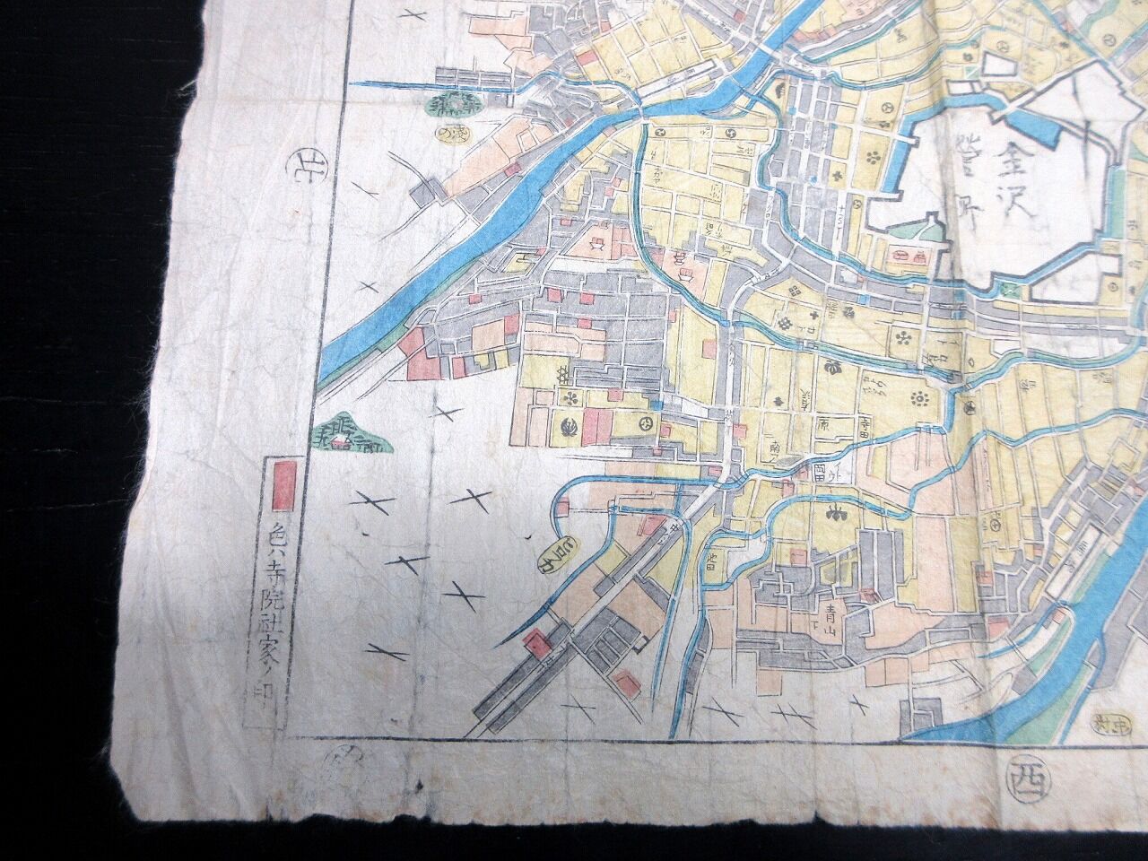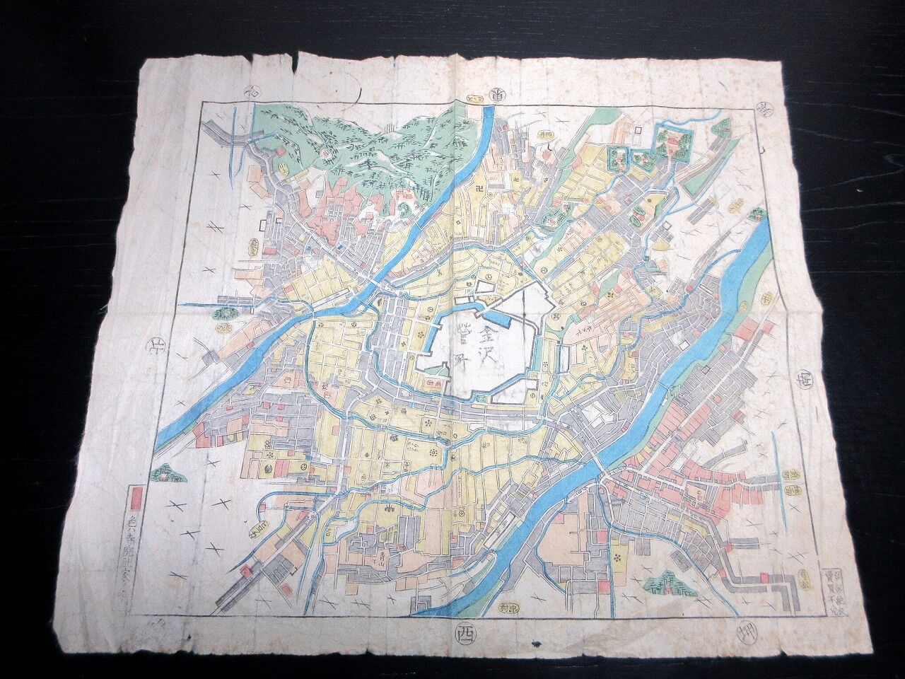2023年10月23日 幕末期ぐらい古地図「金沢絵図(仮題)」1点/古書古文書/木版摺り 幕末期ぐらい古地図「金沢絵図(仮題)」1点/古書古文書/木版摺りです。31cm×36cm。木版刷り。【書名】 金沢絵図(仮題)【巻冊】 1点【成立】 幕末期ぐらい タグ :#金沢#古地図#JAPAN#Antiquemap