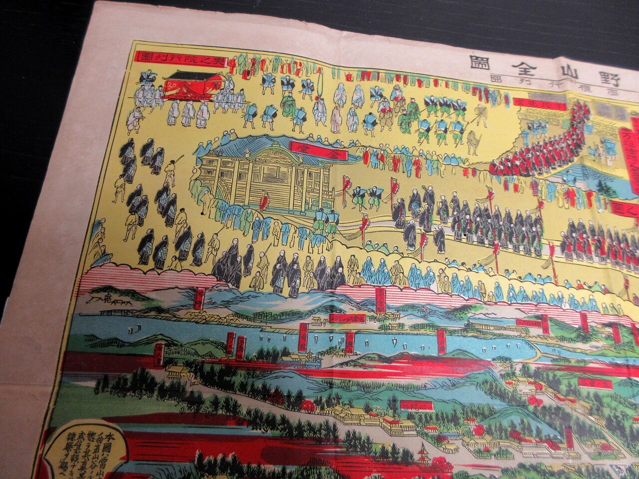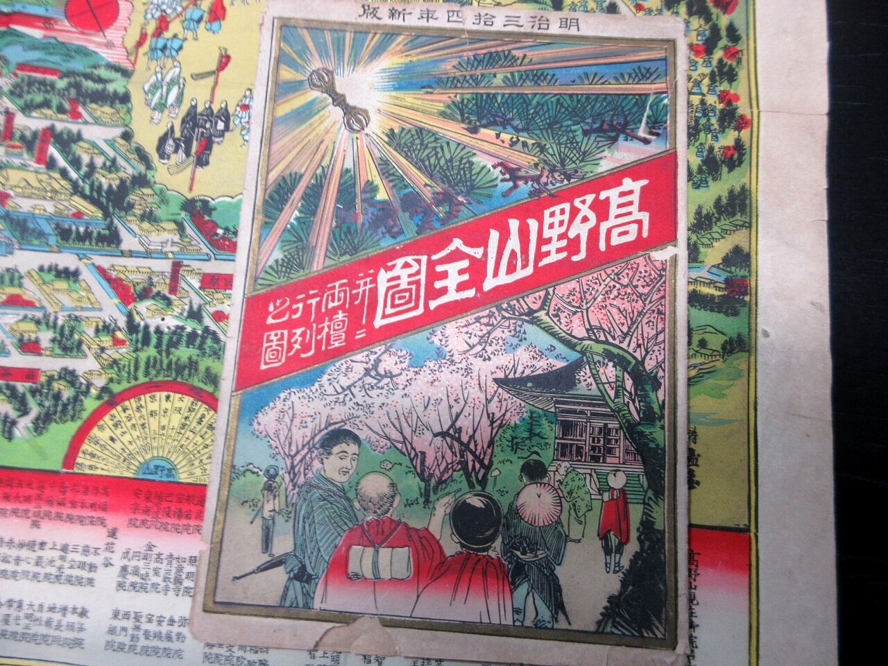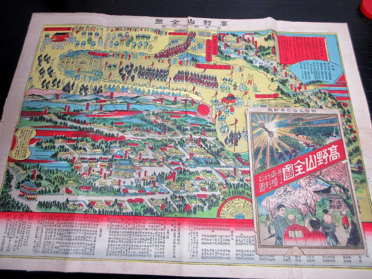 2023年10月22日 明治34年(1901)古地図鳥瞰図「高野山全図並両壇行列図」1点/石版摺り/袋付き 明治34年(1901)古地図鳥瞰図「高野山全図並両壇行列図」1点/石版摺り/袋付きです。38.5cm×53cm。石版刷り。袋付き。【書名】 高野山全図並両壇行列図【巻冊】 1点【成立】 明治34年(1901) タグ :#JAPAN#Antiquemap