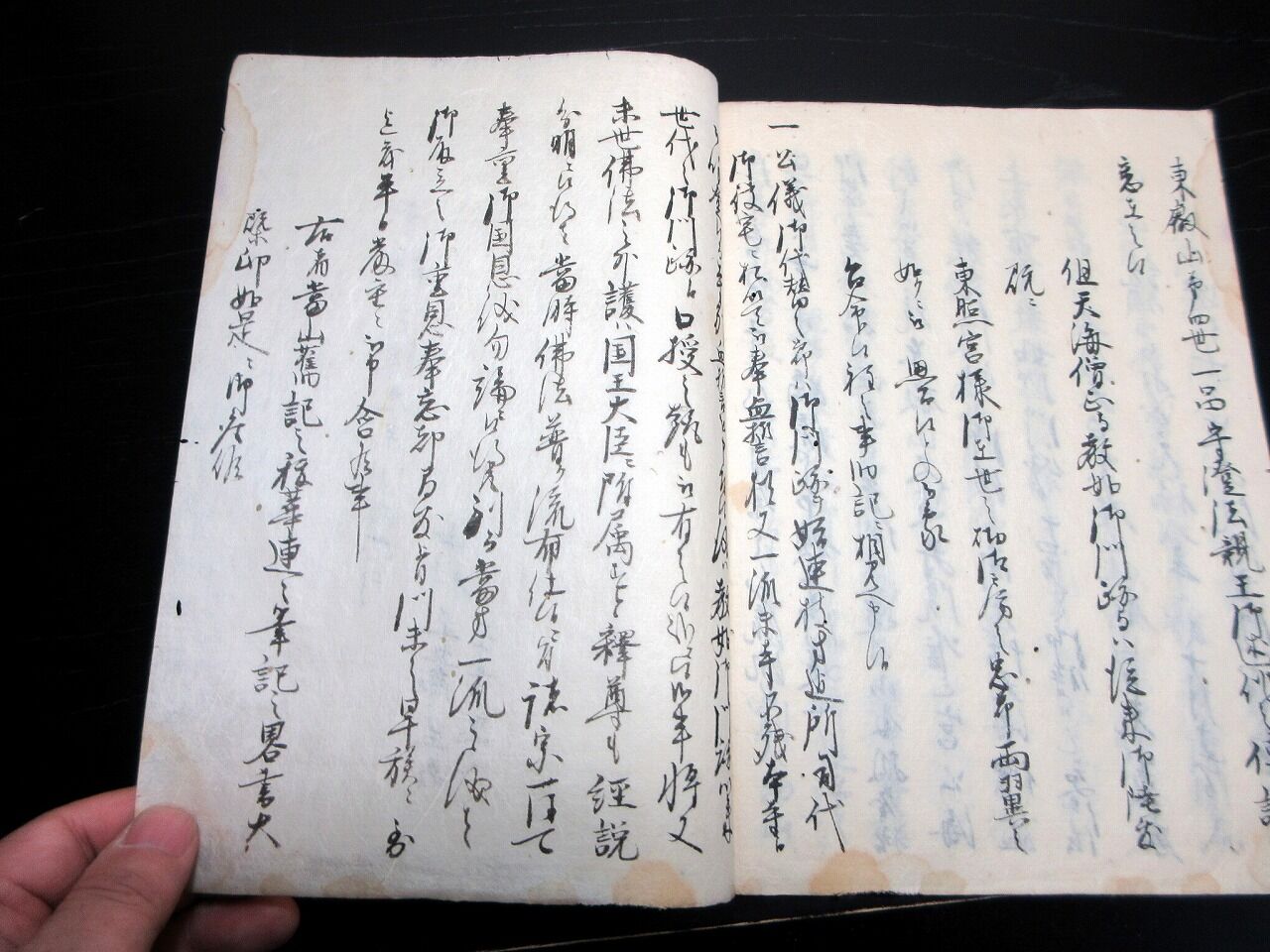 2023年10月25日 和本江戸天保9年(1838)仏教写本「東本願寺御由緒抜書」1冊/古書古文書/手書き 和本江戸天保9年(1838)仏教写本「東本願寺御由緒抜書」1冊/古書古文書/手書きです。50丁。25cm×18.5cm。手書き。中村正五郎正義という人物が写したもの【書名】 東本願寺御由緒抜書【巻冊】 1冊【成立】 天保9年(1838) タグ :#和本#写本#仏教#古文書#JAPAN#antiquebook