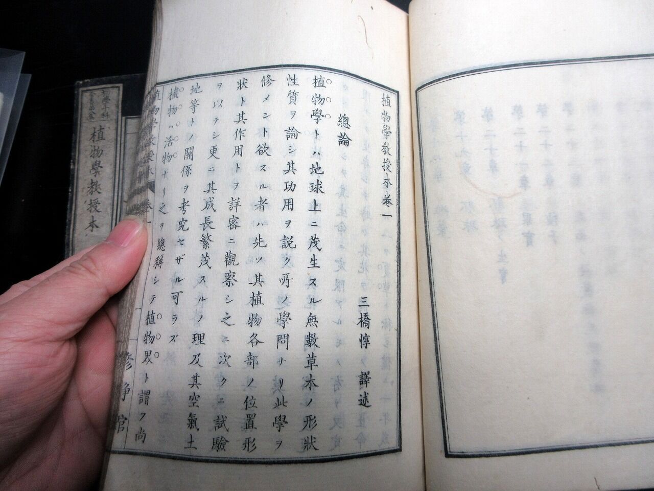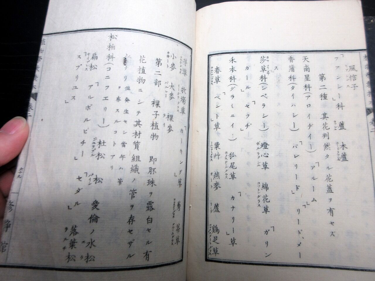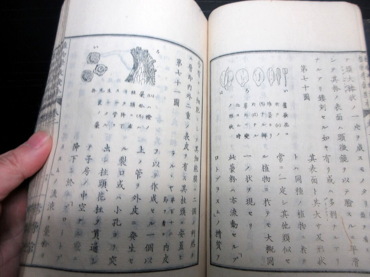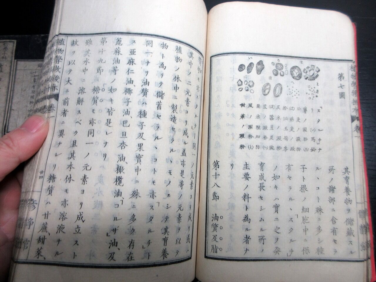2024年03月02日 和本明治14年(1881)「植物学教授本」上下2冊揃い/三橋惇/古書古文書/木版摺り 和本明治14年(1881)「植物学教授本」上下2冊揃い/三橋惇/古書古文書/木版摺りです。1+2+79、69丁。22.5cm×15cm。木版刷り。元題簽。見返しあり。奥付あり。【書名】 植物学教授本【巻冊】 上下2冊揃い【著者】 三橋惇 纂訳【成立】 明治14年(1881) タグ :#和本#理科#JAPAN#antiquebooks