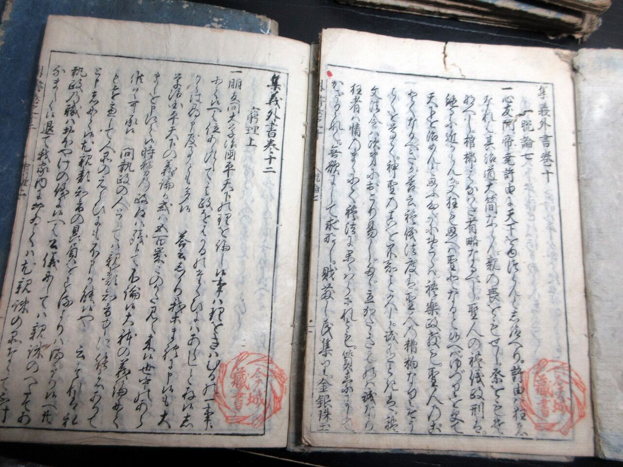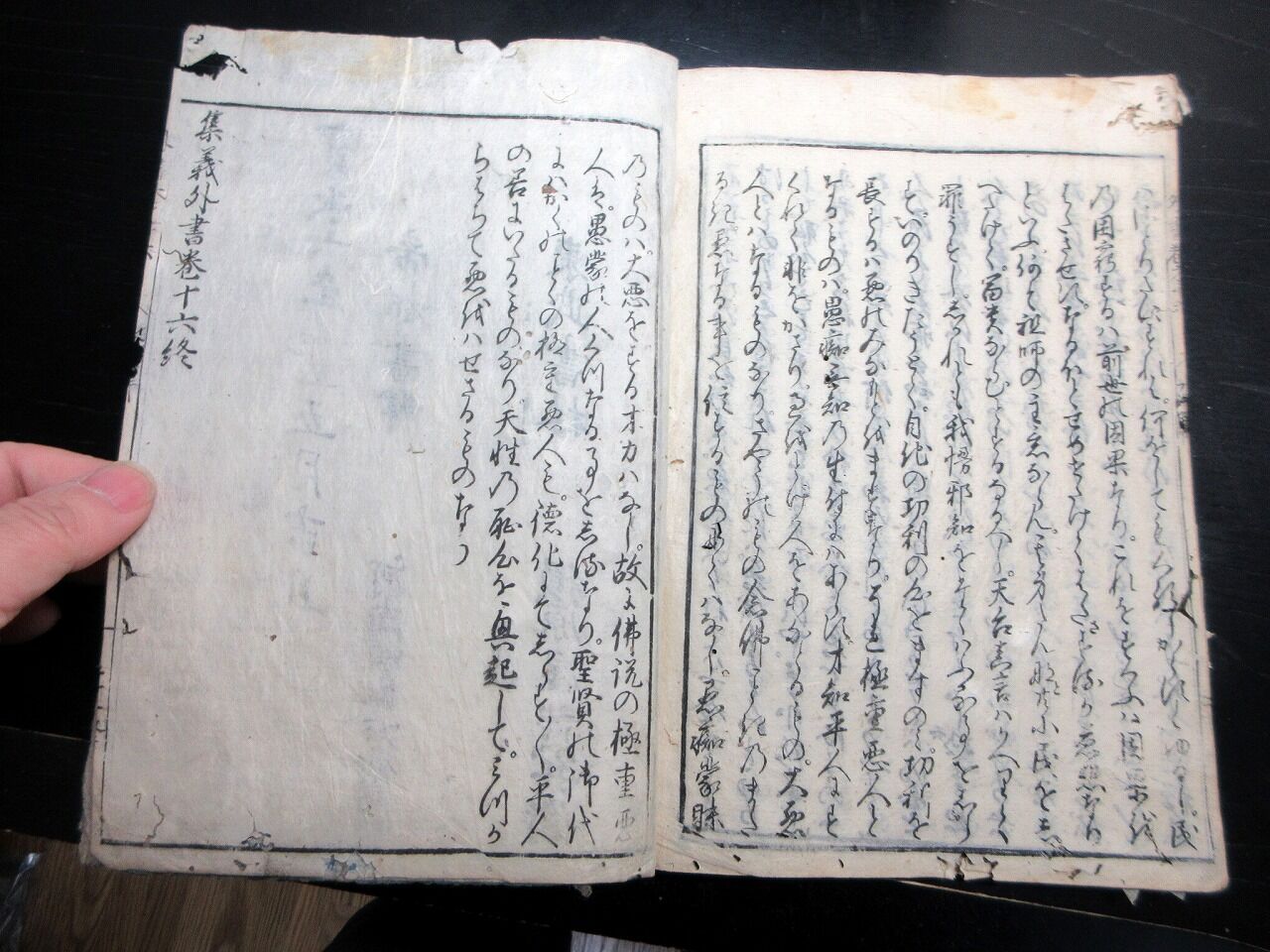 2024年03月01日 和本江戸宝永6年(1709)版「集義外書」全16巻10冊揃い/熊沢蕃山/古書古文書/木版摺り 和本江戸宝永6年(1709)版「集義外書」全16巻10冊揃い/熊沢蕃山/古書古文書/木版摺りです。2+26、29、25、16+17、22+17、19+26、20+22、14+15、21、30+21丁。25.5cm×18cm。木版刷り。元題簽傷み欠損あり。奥付あり。【書名】 集義外書【巻冊】 全16巻10冊揃い【著者】 熊沢蕃山【成立】 宝永6年(1709)版 タグ :#和本#熊沢蕃山#JAPAN#antiquebooks