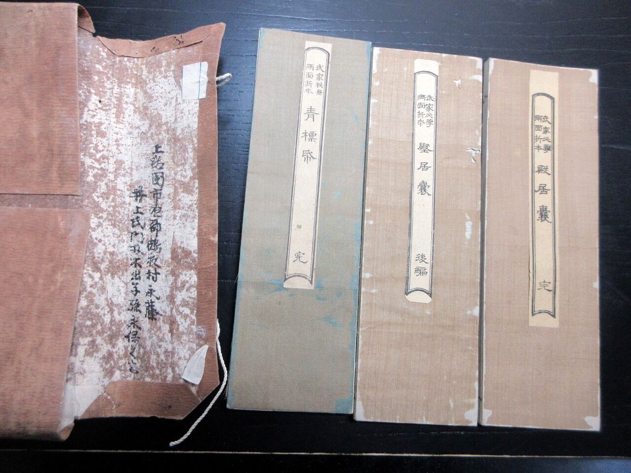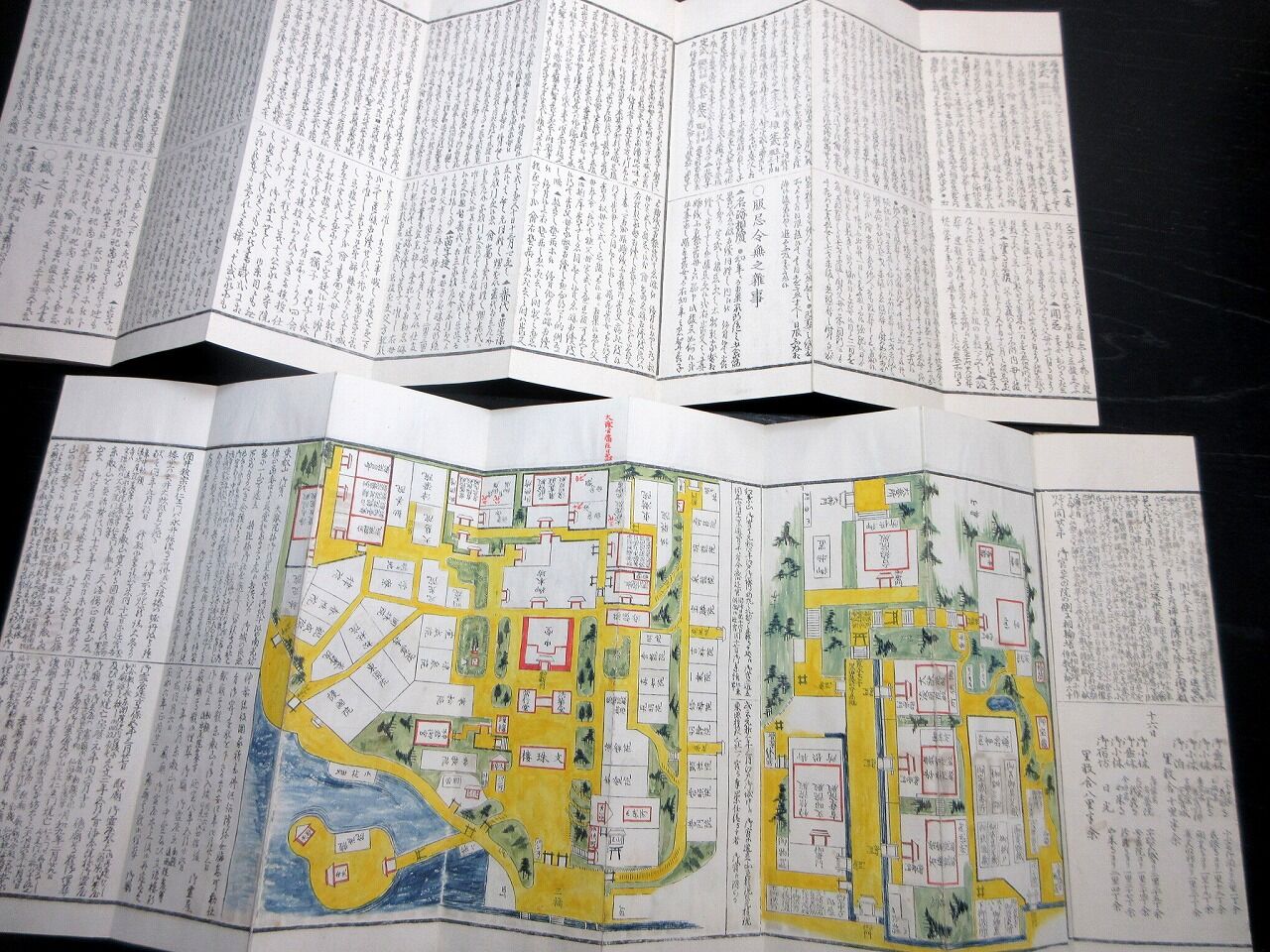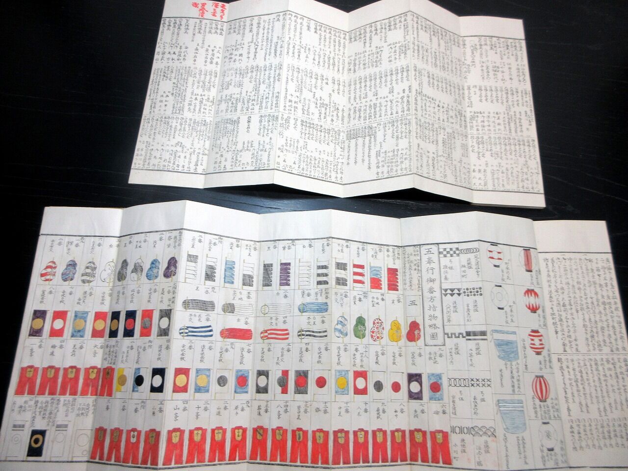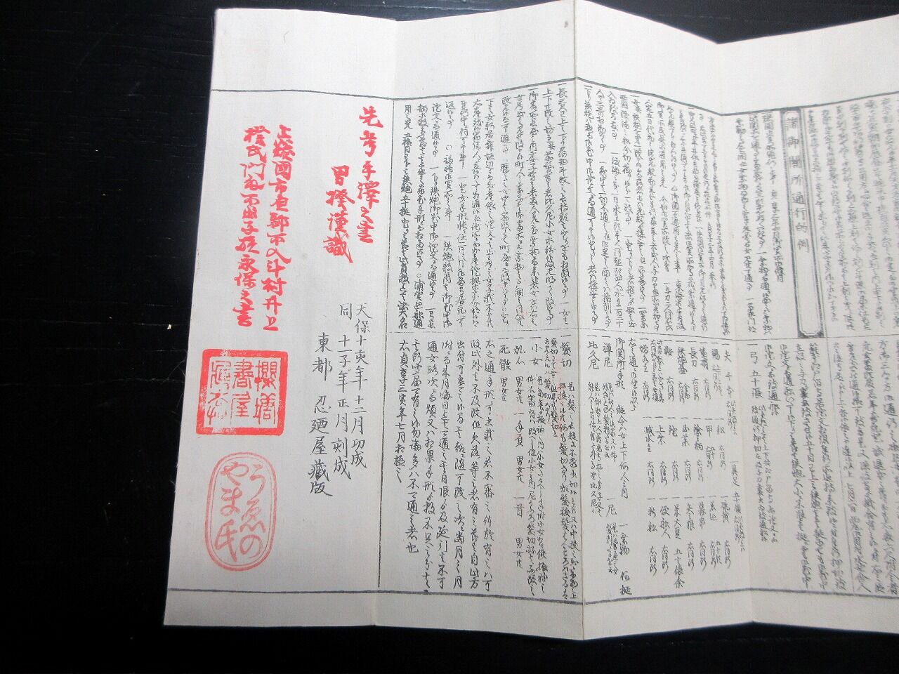 2024年03月01日 和本江戸天保10~11年武家故実折本「殿居袋/青標紙」3帖/大野広城/古地図/古書古文書/木版両面摺り(手彩色) 和本江戸天保10~11年武家故実折本「殿居袋/青標紙」3帖/大野広城/古地図/古書古文書/木版両面摺り(手彩色)です。18、17、21丁。19.5cm×6cm。木版両面刷り(手彩色)。元題簽。見返しあり。奥付あり。上総国市原郡の書き入れがある。【書名】 殿居袋/青標紙【巻冊】 殿居袋2帖と青標紙1帖の3帖【著者】 大野広城【成立】 天保10~11年 タグ :#和本#武家故実#JAPAN#antiquebooks#Antiquemap