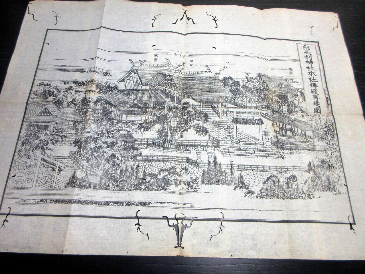 2025年03月24日 明治11年(1878)「相模国大山阿夫利神社絵図(阿夫利神社本社拝殿再建図)」1点(袋付き)/古書古文書/木版摺り 明治11年(1878)「相模国大山阿夫利神社絵図(阿夫利神社本社拝殿再建図)」1点(袋付き)/古書古文書/木版摺りです。38.5cm×52.5cm。木版刷り。【書名】 相模国大山阿夫利神社絵図(阿夫利神社本社拝殿再建図)【巻冊】 1点(袋付き)【成立】 明治11年(1878) タグ :#大山#阿夫利神社#JAPAN#antiquebooks#日本の古本屋#大江戸骨董市