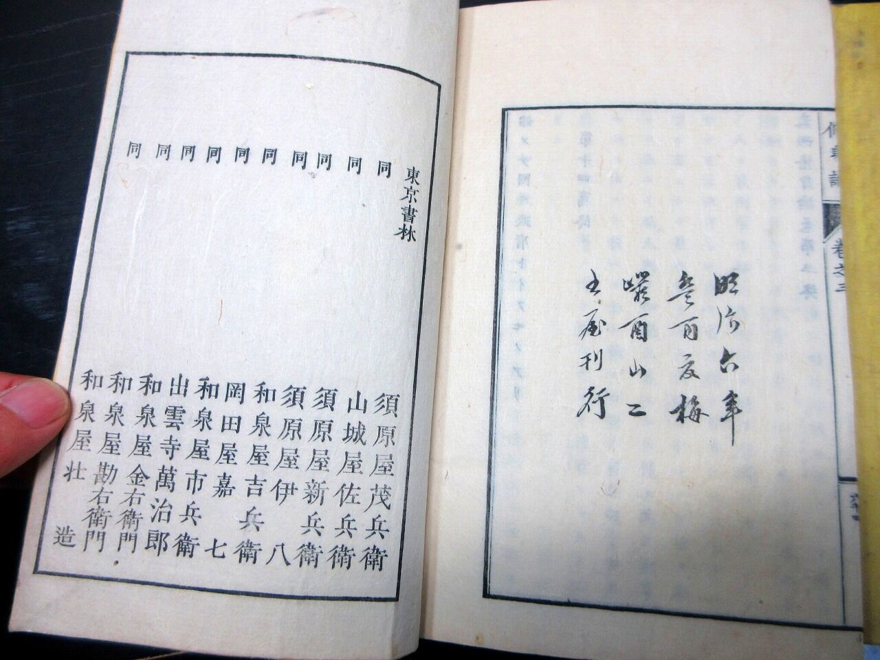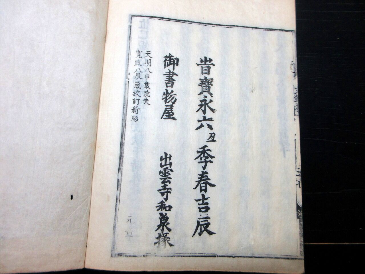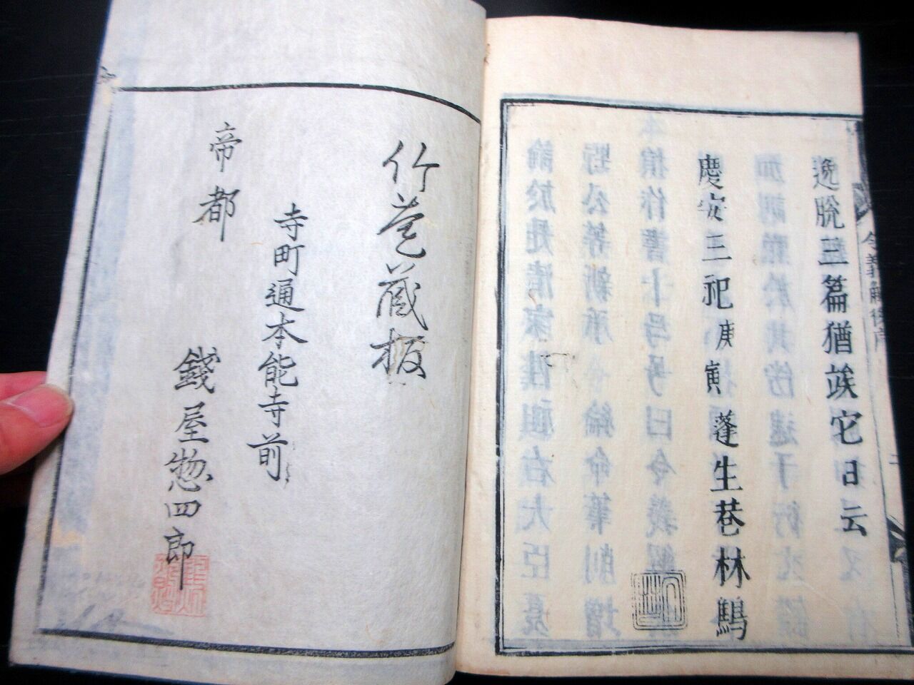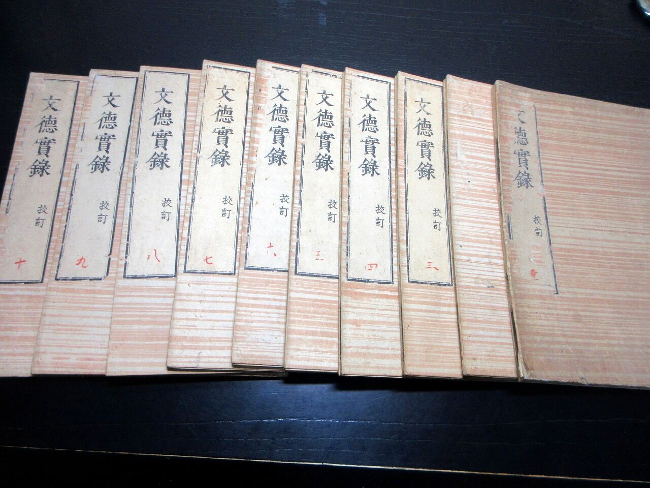 2025年08月29日 和本江戸寛政8年(1796)平安時代の歴史書「文徳実録(日本文徳天皇実録)」10冊揃い/本所宰府文庫の蔵書印/亀戸天神社 和本江戸寛政8年(1796)平安時代の歴史書「文徳実録(日本文徳天皇実録)」10冊揃い/本所宰府文庫の蔵書印/亀戸天神社です。2+23、19、19、21、22、18、18、23、34、27丁。27cm×19cm。木版刷り。平安時代の日本で編纂された歴史書。六国史の第五にあたり、文徳天皇の代である嘉祥3年(850年)から天安2年(858年)までの8年間を扱う。略して文徳実録ともいう。編年体、漢文、全10巻。【書名】 文徳実録(日本文徳天皇実録)【巻冊】 10冊揃い【著者】 本所宰府文庫の蔵書印。亀戸天神社関連の旧蔵書のようです。【成立】 寛政8年(1796) タグ :#和本#亀戸天神#本所宰府文庫#JAPAN#Antiquebooks#日本の古本屋#大江戸骨董市