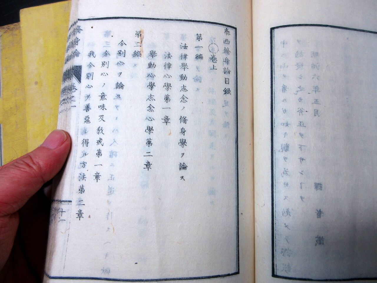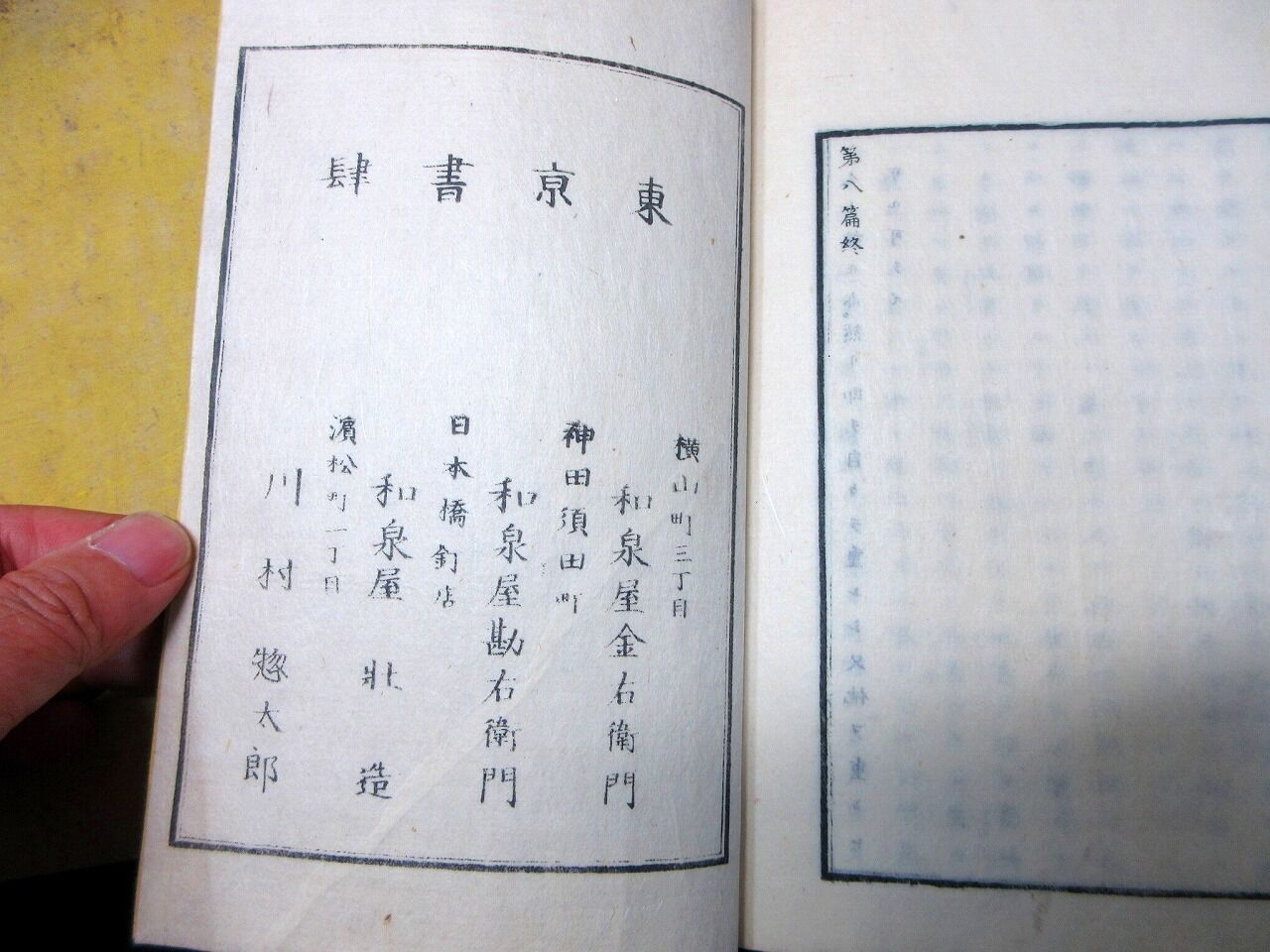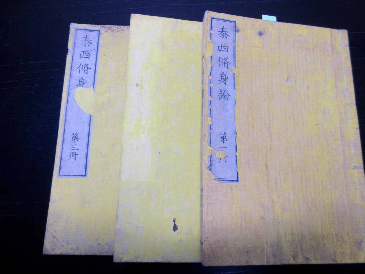 2025年08月15日 和本明治6年(1873)「泰西修身論」3冊揃い/山本義俊訳/古書古文書/木版摺り 和本明治6年(1873)「泰西修身論」3冊揃い/山本義俊訳/古書古文書/木版摺りです。13+38、47、64丁。22.5cm×15cm。木版刷り。元題簽2冊残存。見返しあり。奥付あり。【書名】 泰西修身論【巻冊】 3冊揃い【著者】 山本義俊 訳 小川為治 校【成立】 明治6年(1873) タグ :#和本#西洋#道徳#JAPAN#Antiquebooks#日本の古本屋#大江戸骨董市