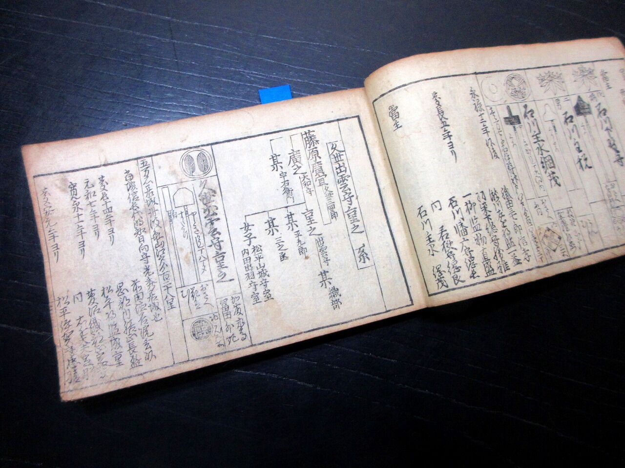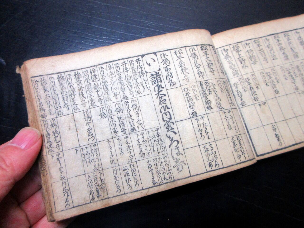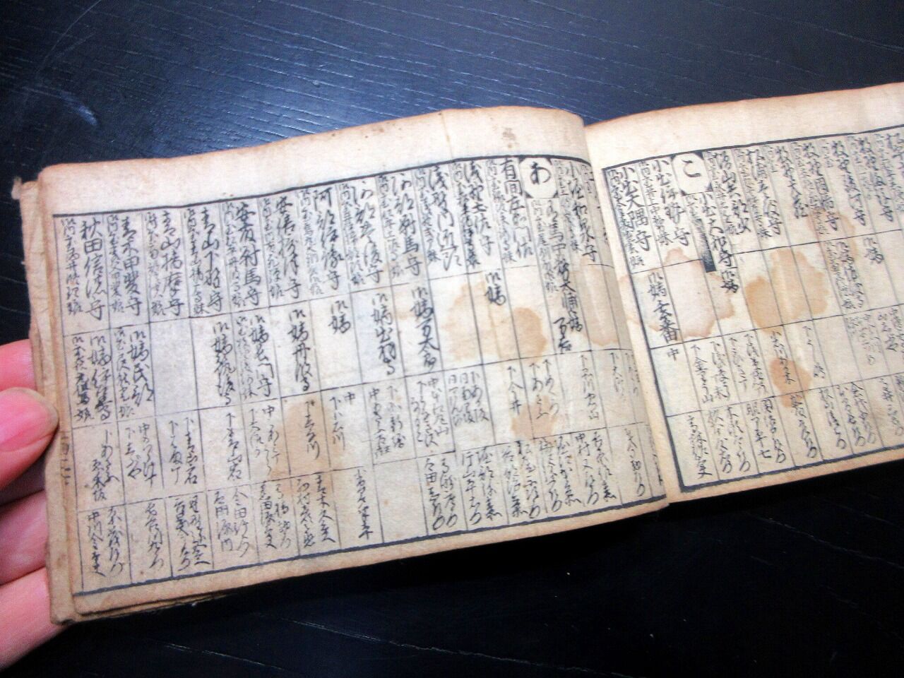 2026年01月15日 和本江戸正徳4年(1714)以前「大名武鑑」1冊/古書古文書/木版摺り 和本江戸正徳4年(1714)以前「大名武鑑」1冊/古書古文書/木版摺りです。54丁(丁数表示65から始まっている)。横本(11cm×16.5cm)。木版刷り。正徳4年(1714)の書き入れがあるので、それ以前のものだと思います。【書名】 大名武鑑【巻冊】 下1冊だと思います【成立】 正徳4年(1714)の書き入れがある タグ :#和本#武鑑#大名#武士#JAPAN#Antiquebooks#日本の古本屋#大江戸骨董市