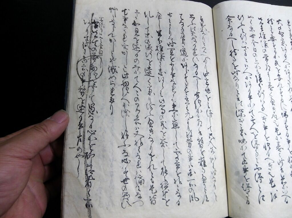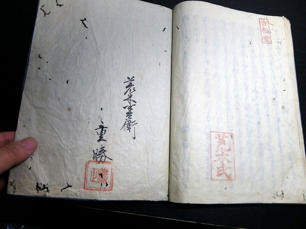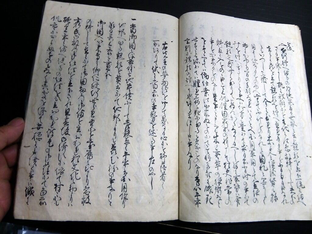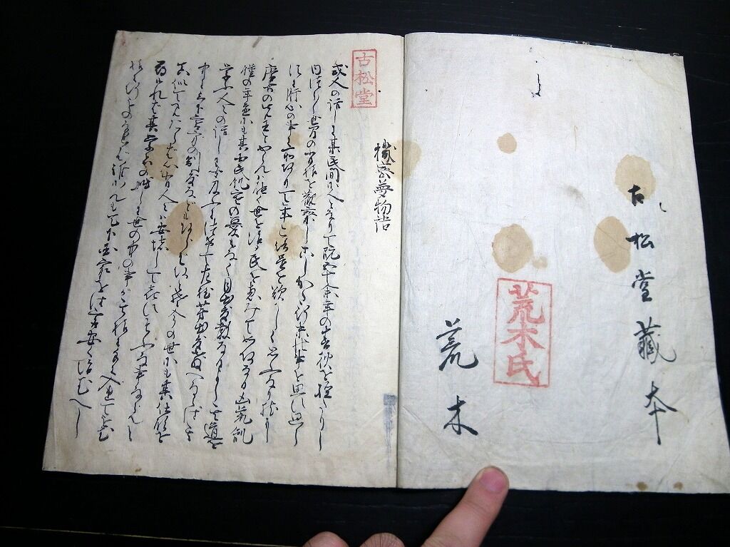 2023年05月23日 和本江戸期政治論?写本「機密夢物語」全1冊/古松堂の印と荒木半兵衛重勝の記名/古書古文書/手書き 和本江戸期政治論?写本「機密夢物語」全1冊/古松堂の印と荒木半兵衛重勝の記名/古書古文書/手書きです。16丁。26.5cm×19.5cm。手書き。『データ』【書名】 機密夢物語【巻冊】 全1冊【著者】 古松堂の印と荒木半兵衛重勝の記名がある。【成立】 幕末期ぐらい 「古文書」カテゴリの最新記事 タグ :#和本#写本#古文書#JAPAN#antiquebook < 前の記事次の記事 > コメント コメントフォーム 名前 コメント 記事の評価 リセット リセット 顔 星 情報を記憶 コメントを投稿する