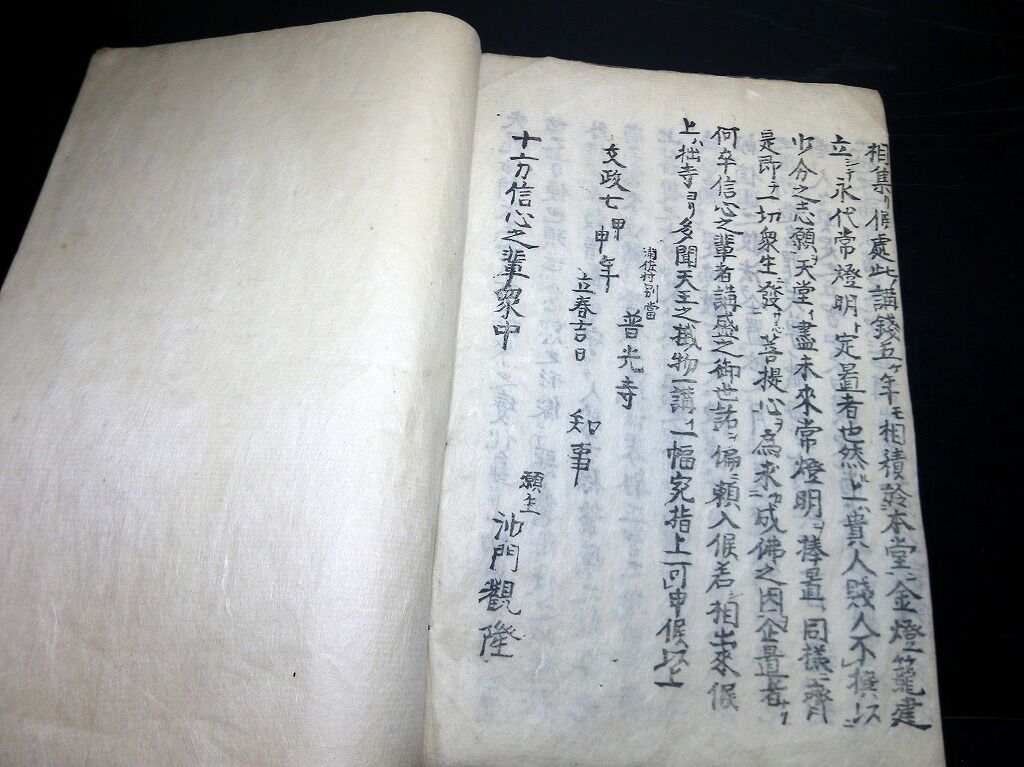 2023年07月16日 和本江戸文政7年(1824)「毘沙門天王常燈明講中勧入記」1冊/越後浦佐普光寺/古書古文書/木版摺り 和本江戸文政7年(1824)「毘沙門天王常燈明講中勧入記」1冊/越後浦佐普光寺/古書古文書/木版摺りです。1丁。27.5cm×19.5cm。木版刷り。『データ』【書名】 毘沙門天王常燈明講中勧入記【巻冊】 1冊【著者】 越後浦佐普光寺【成立】 文政7年(1824) 「仏教和本」カテゴリの最新記事 タグ :#和本#縁起#仏教#越後浦佐普光寺 < 前の記事次の記事 > コメント コメントフォーム 名前 コメント 記事の評価 リセット リセット 顔 星 情報を記憶 コメントを投稿する