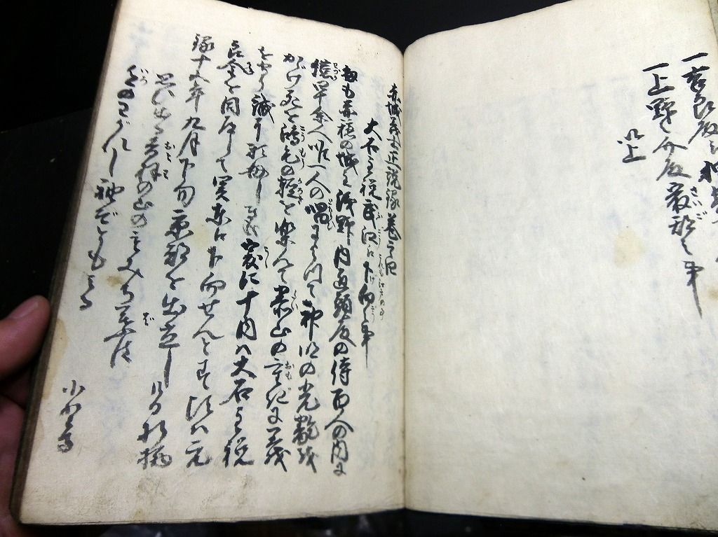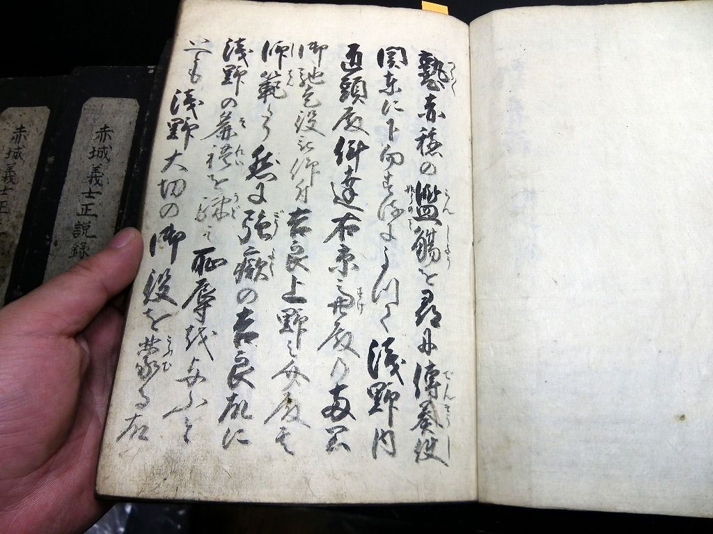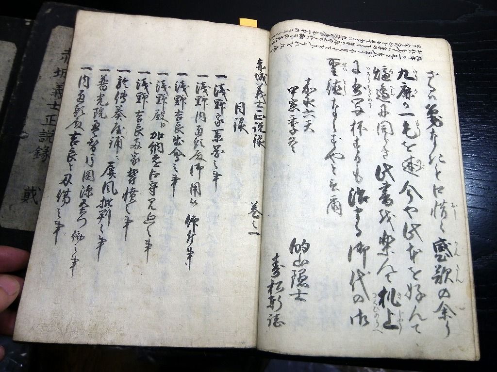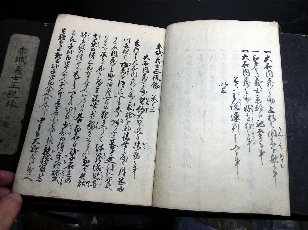 2019年09月10日 和本江戸安政2年(1855)赤穂浪士忠臣蔵写本「赤城義士正説録」5冊揃/出羽国平鹿郡樋場村/秋田県横手市/古書古文書/手書き 和本江戸安政2年(1855)赤穂浪士忠臣蔵写本「赤城義士正説録」5冊揃/出羽国平鹿郡樋場村/秋田県横手市/古書古文書/手書きです。 54、50、51、53、51丁。25cm×17cm。手書き。元題簽。 『データ』 【書名】 赤城義士正説録 【巻冊】 5冊揃 【著者】 出羽国平鹿郡樋場村(秋田県横手市)の記載がある 【成立】 安政2年(1855) 「写本」カテゴリの最新記事 タグ :#和本#写本#古文書#赤穂浪士#忠臣蔵#大石内蔵助 < 前の記事次の記事 > コメント コメントフォーム 名前 コメント 記事の評価 リセット リセット 顔 星 情報を記憶 コメントを投稿する