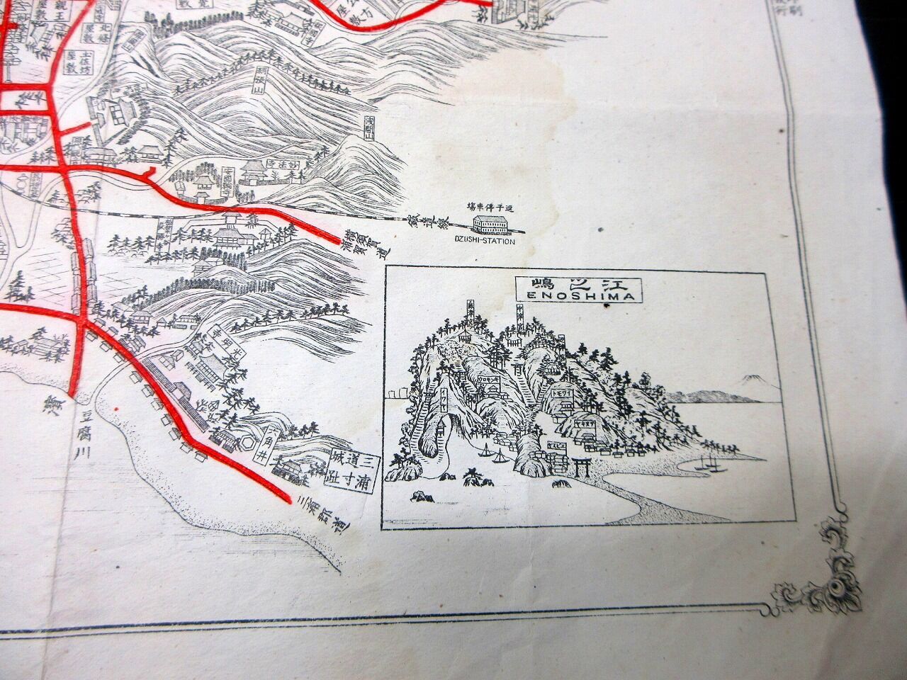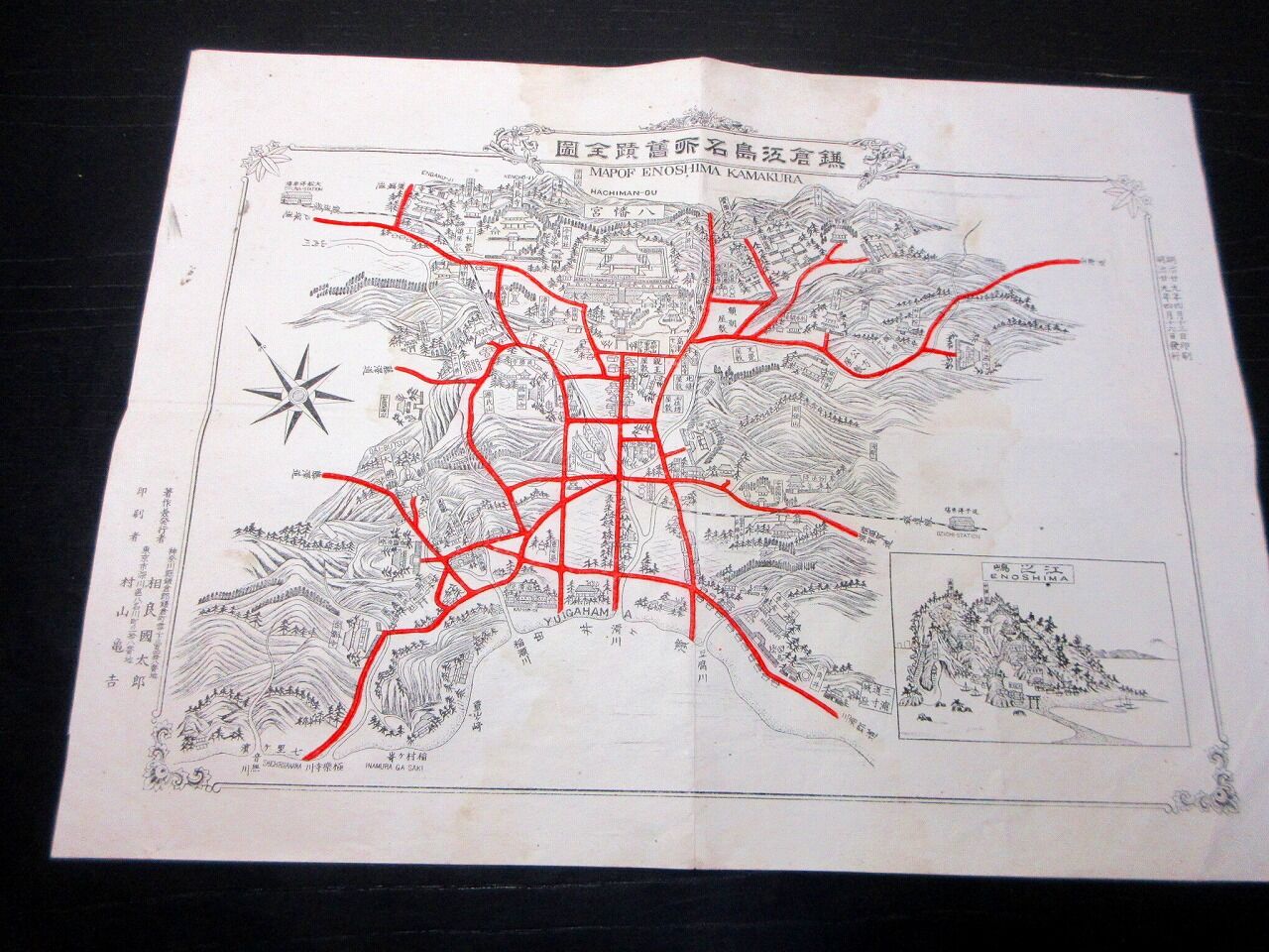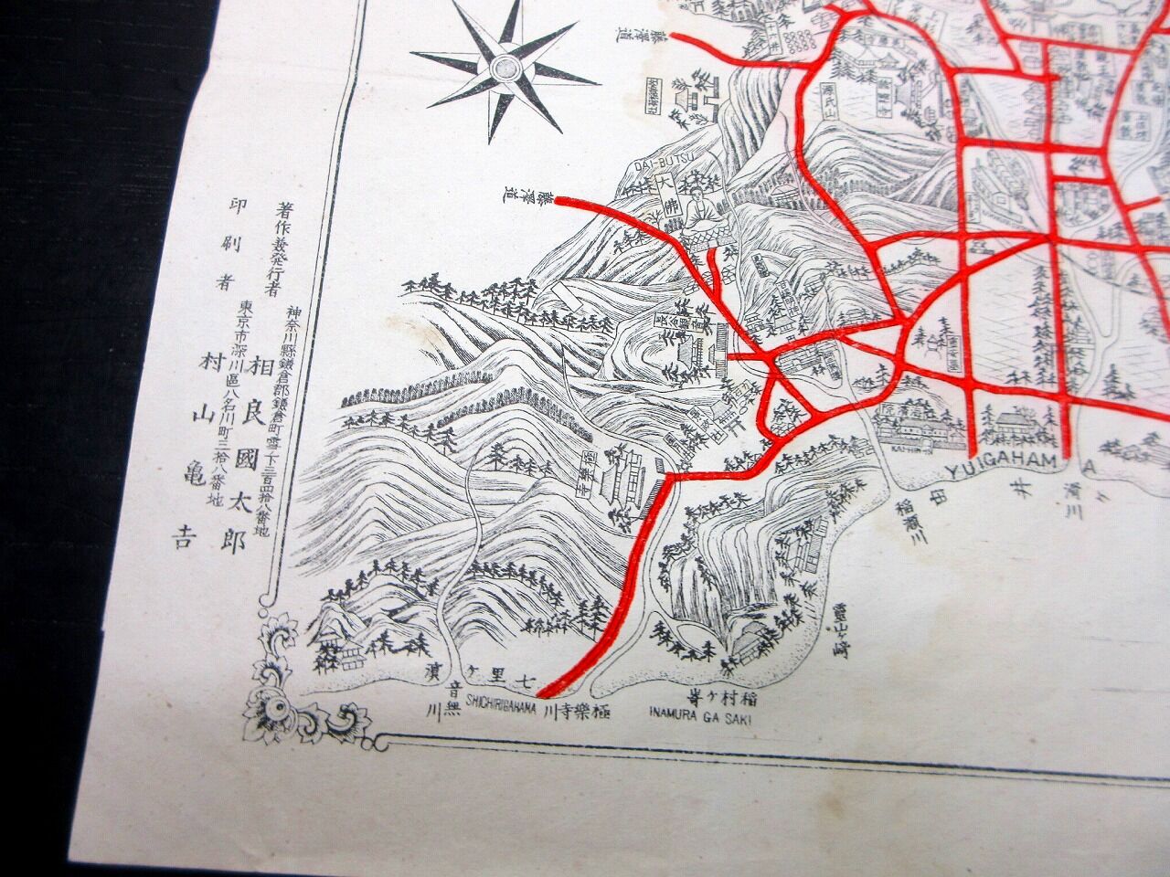 2025年12月06日 明治29年(1896)古地図鳥瞰図「鎌倉江島名所旧蹟全図」1点/相良国太郎/銅版摺り 明治29年(1896)古地図鳥瞰図「鎌倉江島名所旧蹟全図」1点/相良国太郎/銅版摺りです。28cm×38cm。銅版刷り。奥付あり。【書名】 鎌倉江島名所旧蹟全図【巻冊】 1点【著者】 相良国太郎【成立】 明治29年(1896) 「古地図」カテゴリの最新記事 タグ :#古地図#鎌倉#鳥瞰図#JAPAN#Antiquemap#日本の古本屋#大江戸骨董市 < 前の記事次の記事 > コメント コメントフォーム 名前 コメント 記事の評価 リセット リセット 顔 星 情報を記憶 コメントを投稿する