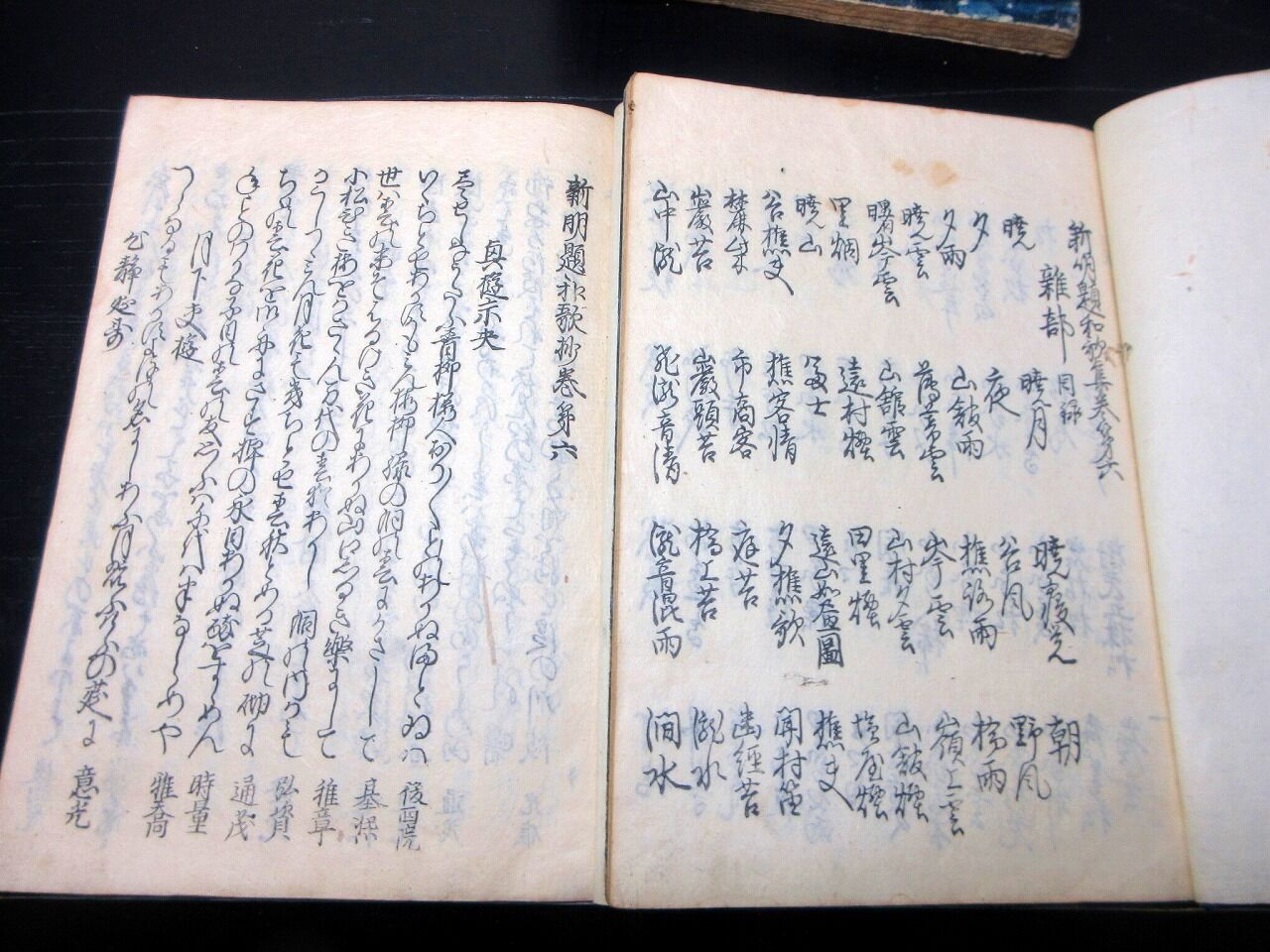 2026年01月08日 和本江戸宝永7年(1710)国学和歌「新明題和歌集」10冊揃い/古書古文書/木版摺り 和本江戸宝永7年(1710)国学和歌「新明題和歌集」10冊揃い/古書古文書/木版摺りです。5+33、31、3+35、4+26、23、2+27、3+13、28、4+19、25丁。22.5cm×16.5cm。木版刷り。元題簽。奥付あり。【書名】 新明題和歌集【巻冊】 10冊揃い【成立】 宝永7年(1710) 「和歌和本」カテゴリの最新記事 タグ :#和本#和歌#国学#JAPAN#Antiquebooks#日本の古本屋#大江戸骨董市 < 前の記事次の記事 > コメント コメントフォーム 名前 コメント 記事の評価 リセット リセット 顔 星 情報を記憶 コメントを投稿する
