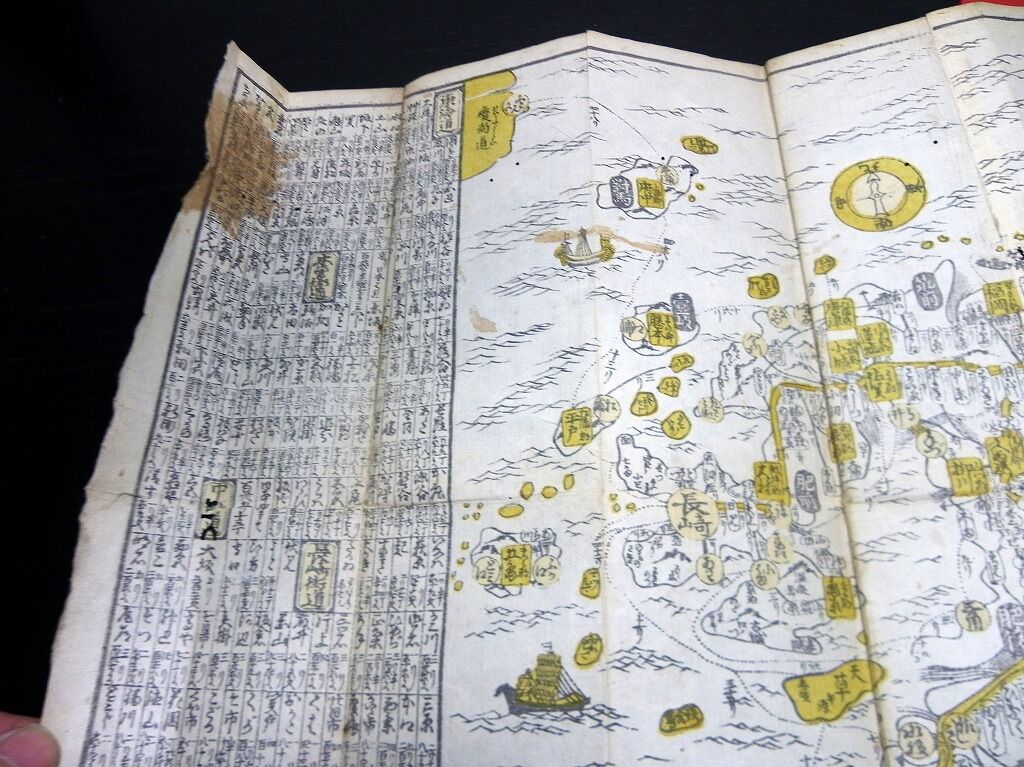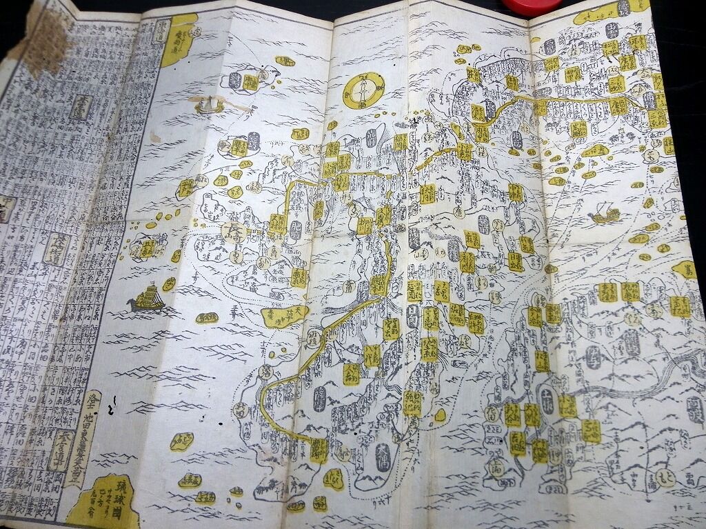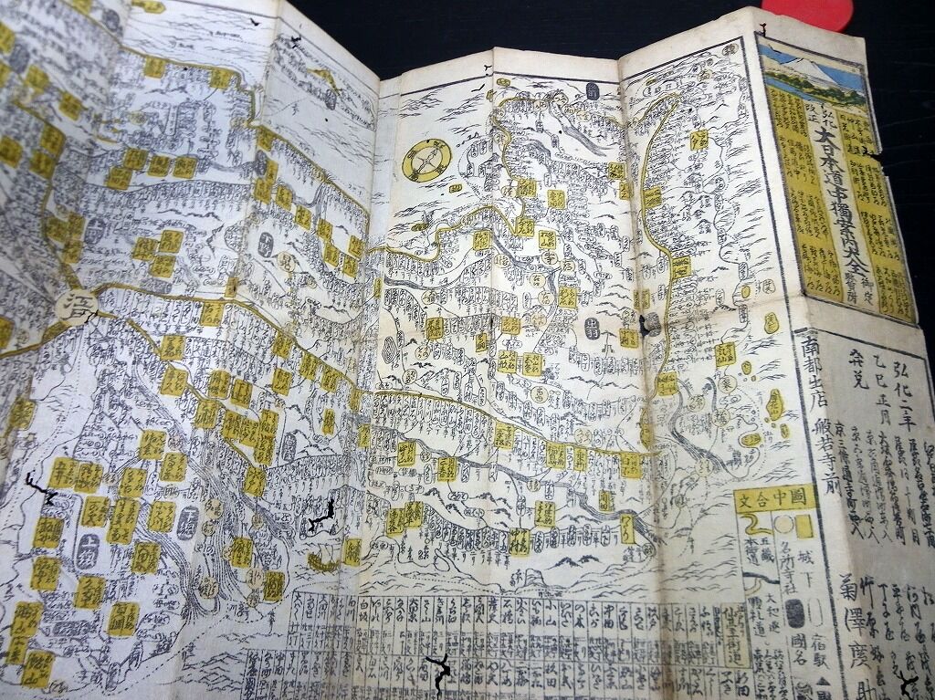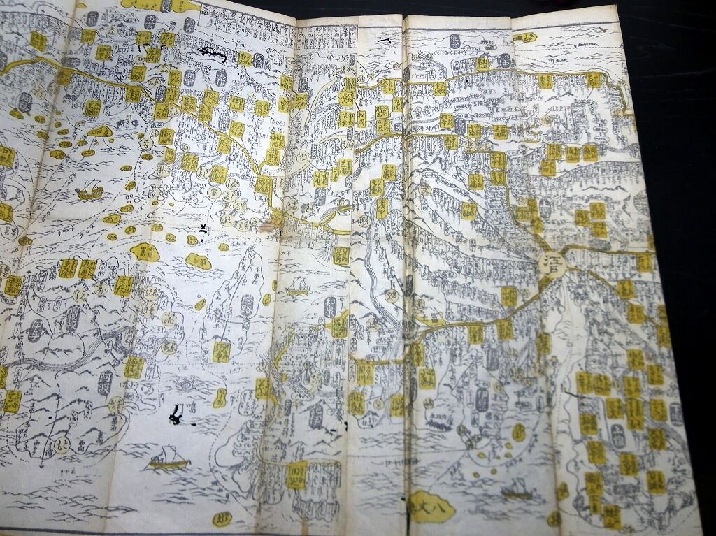 2021年04月08日 江戸弘化2年(1845)古地図道中記「大日本道中独案内大全」1点/古書古文書/木版摺り 江戸弘化2年(1845)古地図道中記「大日本道中独案内大全」1点/古書古文書/木版摺りです。 37cm×1m22cm。木版刷り。奥付あり。『データ』【書名】 大日本道中独案内大全【巻冊】 1点【成立】 弘化2年(1845) 「古地図」カテゴリの最新記事 タグ :#古地図#道中記 < 前の記事次の記事 > コメント コメントフォーム 名前 コメント 記事の評価 リセット リセット 顔 星 情報を記憶 コメントを投稿する