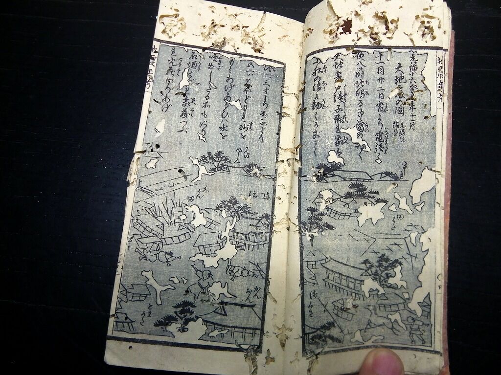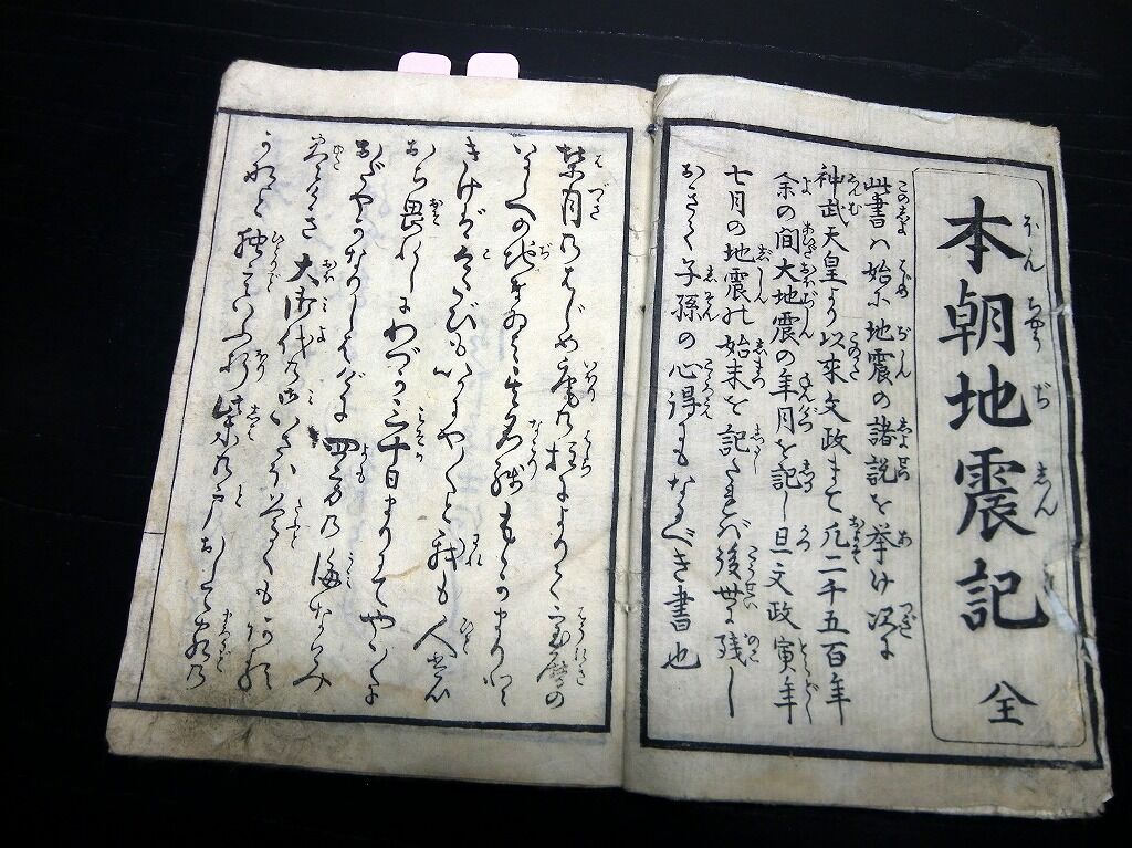 2021年12月02日 和本江戸期災害「本朝地震記」全1冊/豊時成/絵入古書古文書/木版摺り 和本江戸期災害「本朝地震記」全1冊/豊時成/絵入古書古文書/木版摺りです。1+17丁。中本。木版刷り。題簽傷みあり。見返しあり。『データ』【書名】 本朝地震記【巻冊】 全1冊【著者】 豊時成【成立】 江戸後期 タグ :#和本#地震#災害