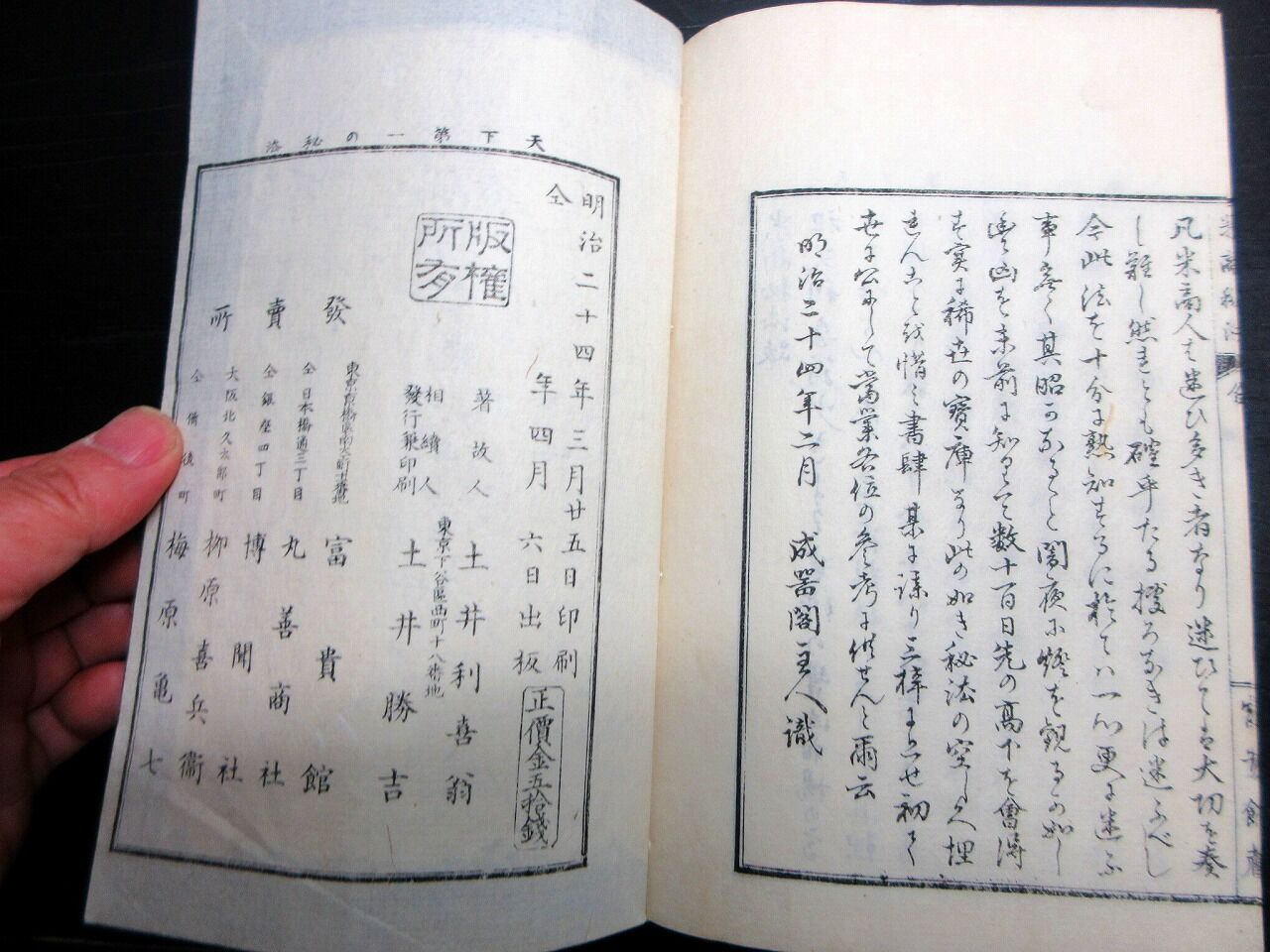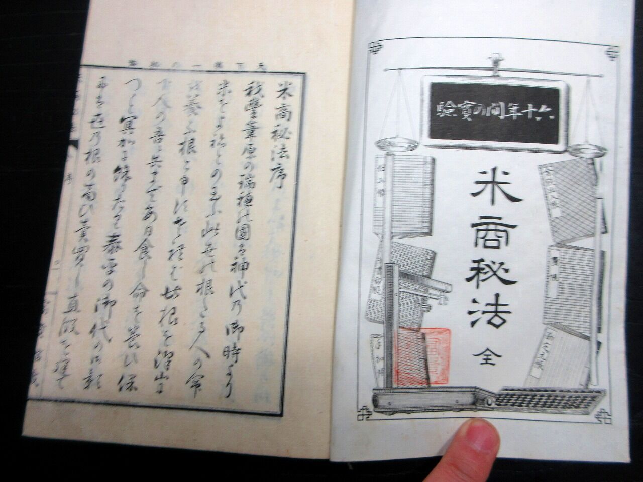 2025年02月15日 和本明治24年(1891)「米商秘法」全1冊/土井利喜翁/古書古文書/木版摺り 和本明治24年(1891)「米商秘法」全1冊/土井利喜翁/古書古文書/木版摺りです。3+1+28+1丁。21.5cm×14cm。木版刷り。元題簽。見返しあり。奥付あり。【書名】 米商秘法【巻冊】 全1冊【著者】 土井利喜翁【成立】 明治24年(1891) タグ :#和本#商業#米相場#JAPAN#antiquebooks#大江戸骨董市#日本の古本屋