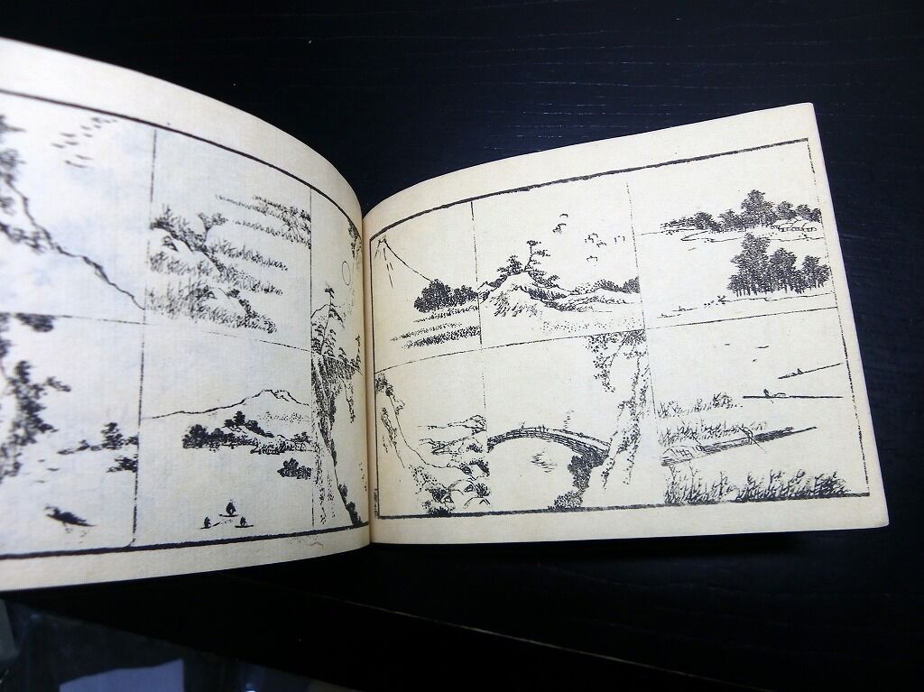 2020年08月27日 和本江戸期葛飾北斎絵手本「画本独稽古」全1冊/絵入古書古文書/木版摺り/羽州山形十日町版の後印 和本江戸期葛飾北斎絵手本「画本独稽古」全1冊/絵入古書古文書/木版摺り/羽州山形十日町版の後印です。 20丁。中本。木版刷り。元題簽。見返しあり。奥付あり(刊年の記載なし)。 もともとは色刷りの本。色版を抜いた後印です。 『データ』 【書名】 画本独稽古 【巻冊】 全1冊 【著者】 葛飾北斎 【成立】 羽州山形十日町版の後印(文久元年の書き入れがある) タグ :#和本#葛飾北斎