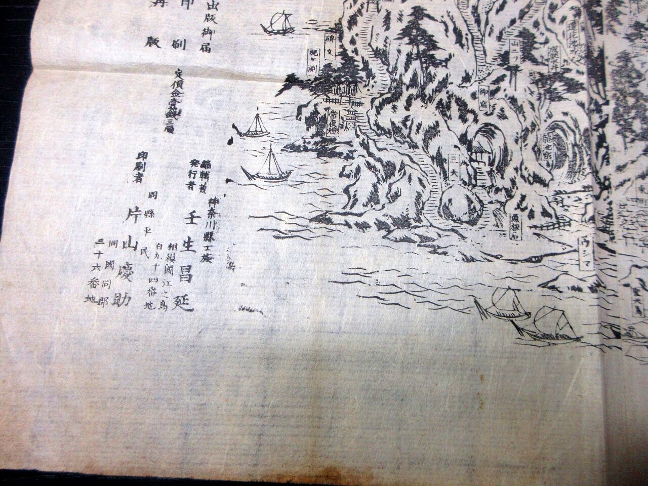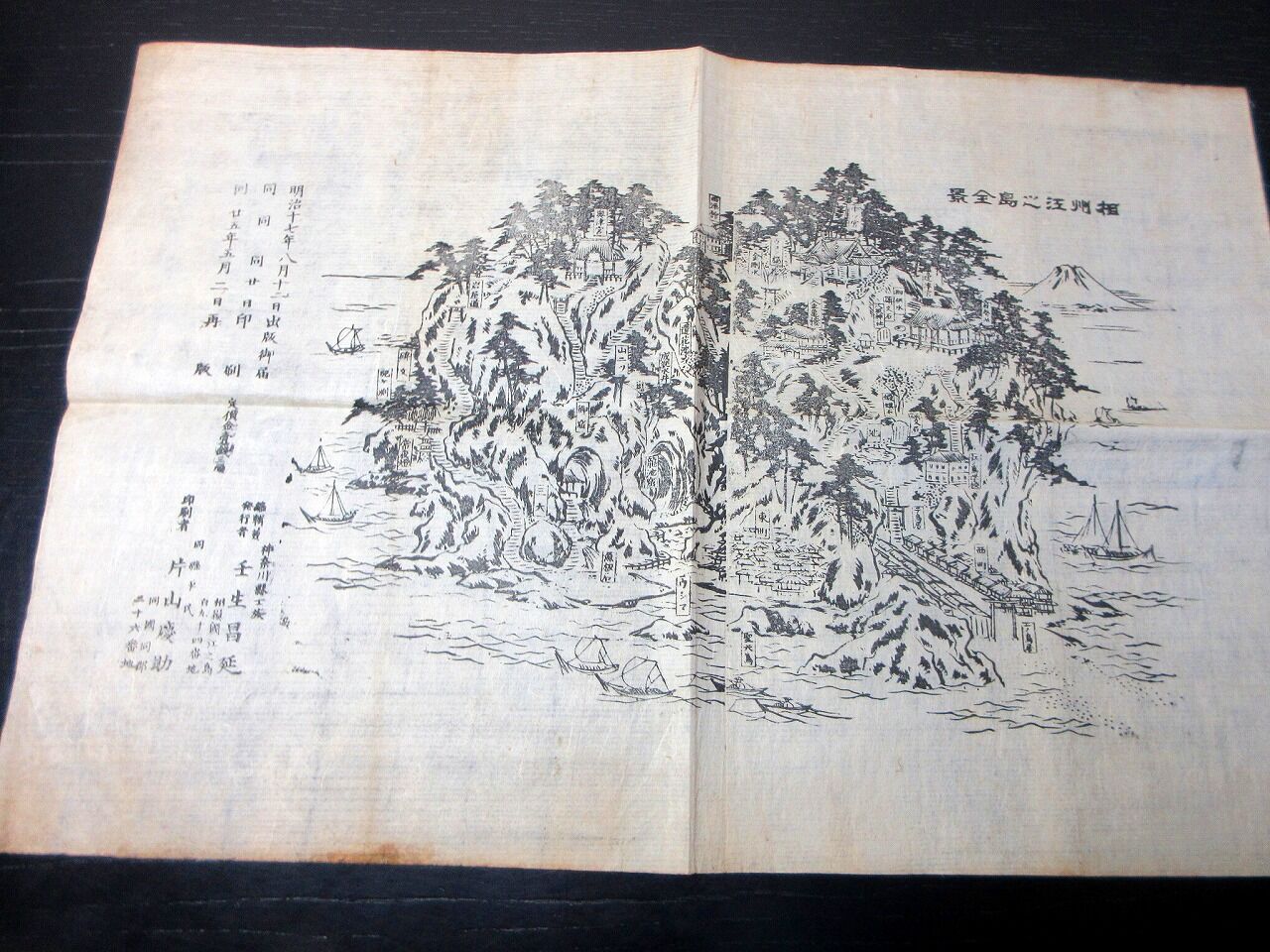 2026年01月09日 明治25年(1892)古地図鳥瞰図「相州江之島全図」1点/壬生昌延/古書古文書/木版摺り/江の島 明治25年(1892)古地図鳥瞰図「相州江之島全図」1点/壬生昌延/古書古文書/木版摺り/江の島です。31.5cm×46.5cm。木版刷り。奥付あり。【書名】 相州江之島全図【巻冊】 1点【著者】 壬生昌延【成立】 明治25年(1892) タグ :#古地図#鳥瞰図#江の島#鎌倉#JAPAN#Antiquemap#日本の古本屋#大江戸骨董市