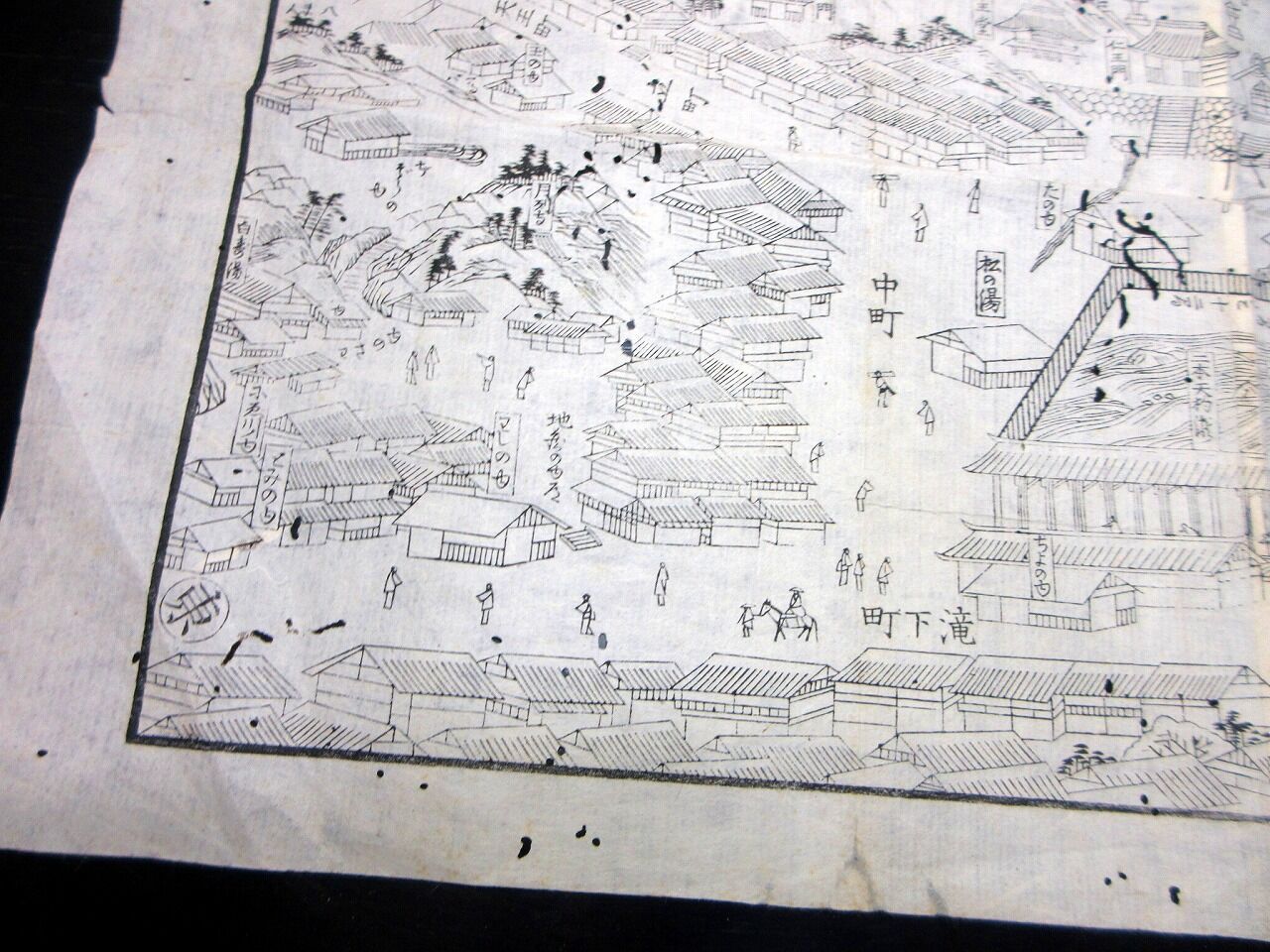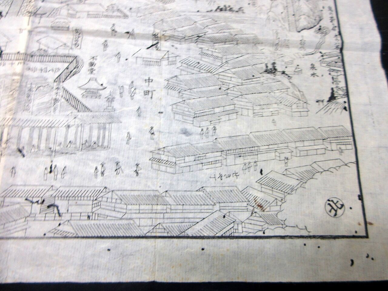 2025年10月03日 明治22年(1889)古地図道中記「伊勢ヨリ大和七在所巡及高野山大坂西京迄一覧図」1点/古書古文書/木版摺り 明治22年(1889)古地図道中記「伊勢ヨリ大和七在所巡及高野山大坂西京迄一覧図」1点/古書古文書/木版摺りです。36.5cm×50cm。木版刷り。奥付あり。【書名】 伊勢ヨリ大和七在所巡及高野山大坂西京迄一覧図【巻冊】 1点【著者】 河村音松【成立】 明治22年(1889) タグ :#古地図#鳥瞰図#JAPAN#道中記#Antiquemap#日本の古本屋#大江戸骨董市