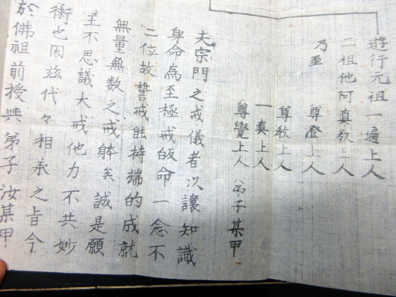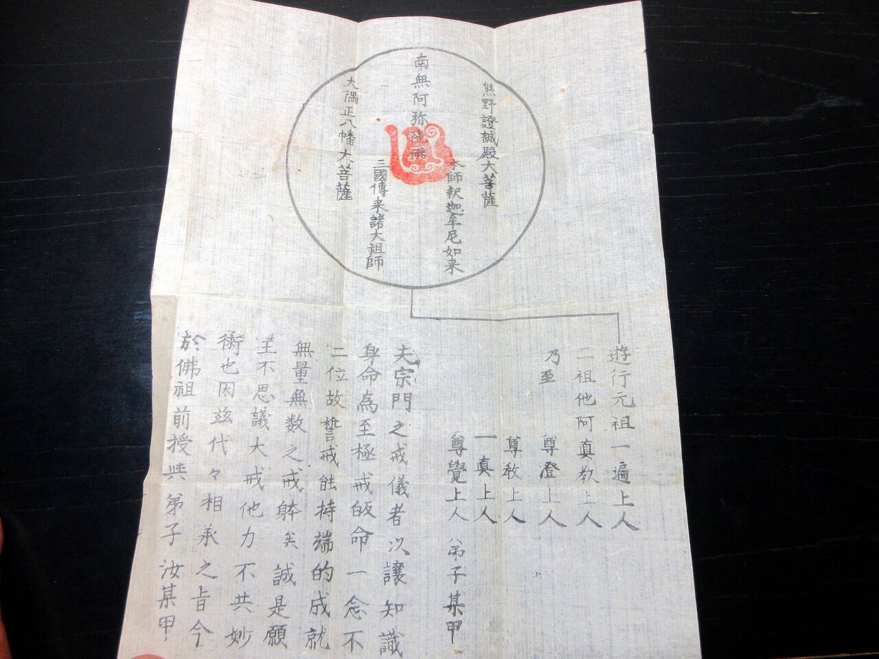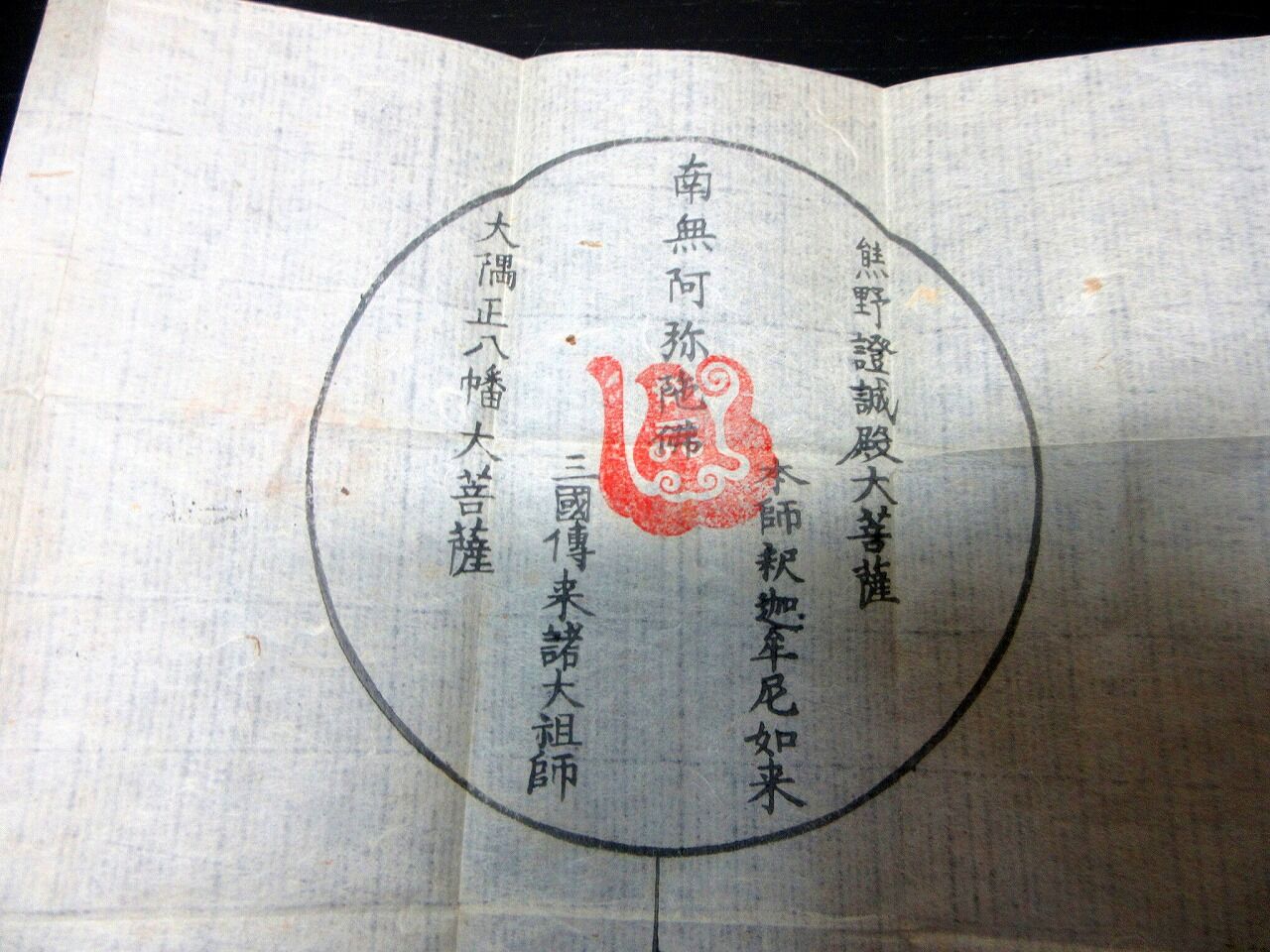 2025年08月18日 明治期仏教時宗お守り「血脈」1点/遊行寺61世大僧正他阿尊覚/古書古文書/木版摺り 明治期仏教時宗お守り「血脈」1点/遊行寺61世大僧正他阿尊覚/古書古文書/木版摺りです。中の紙を広げると31.5cm×23.5cm。木版刷り。【書名】 血脈【巻冊】 1点【著者】 遊行寺61世大僧正他阿尊覚【成立】 明治期 タグ :#仏教#時宗#遊行寺#お守り#JAPAN#Antiquebooks#日本の古本屋#大江戸骨董市