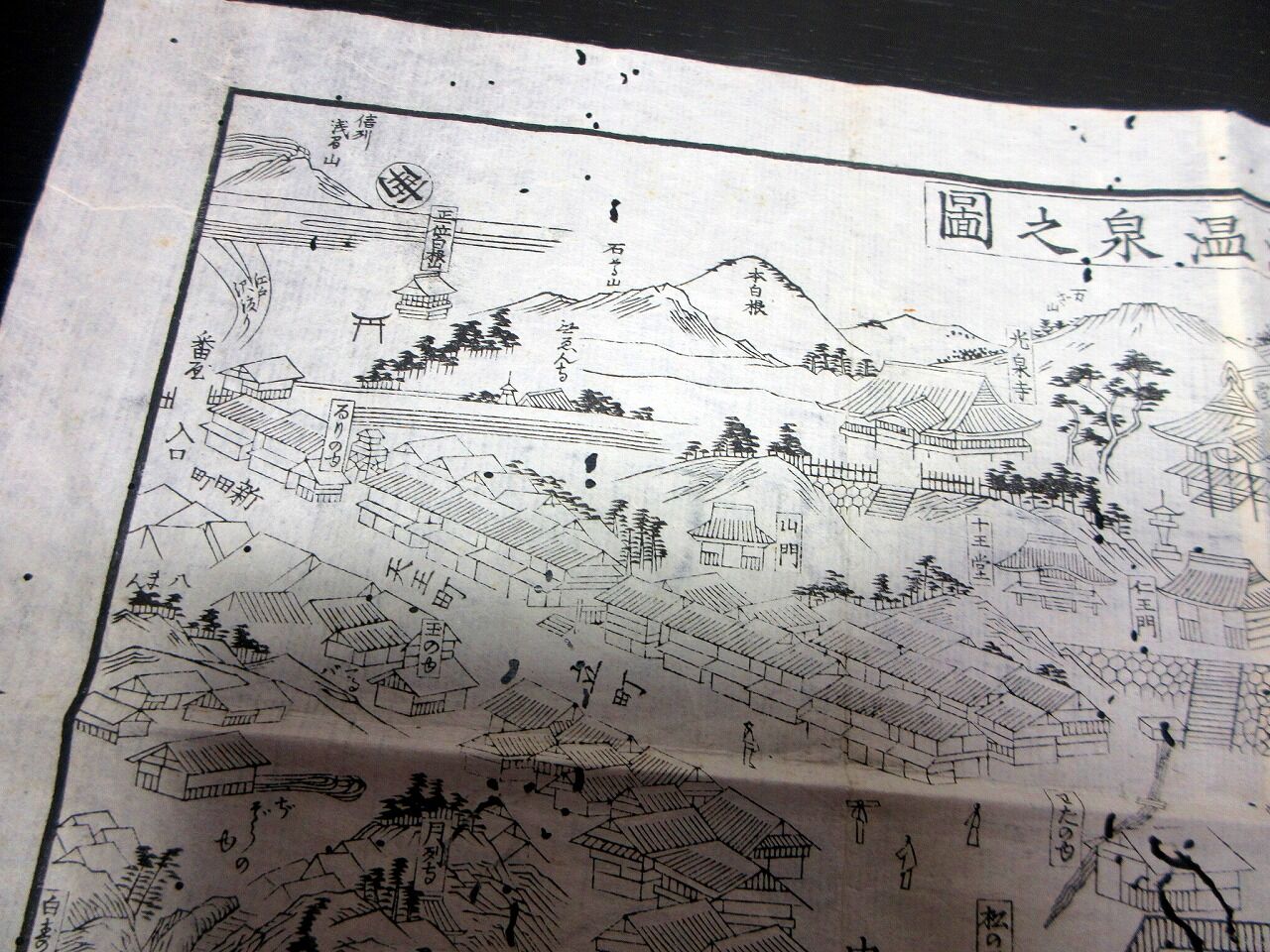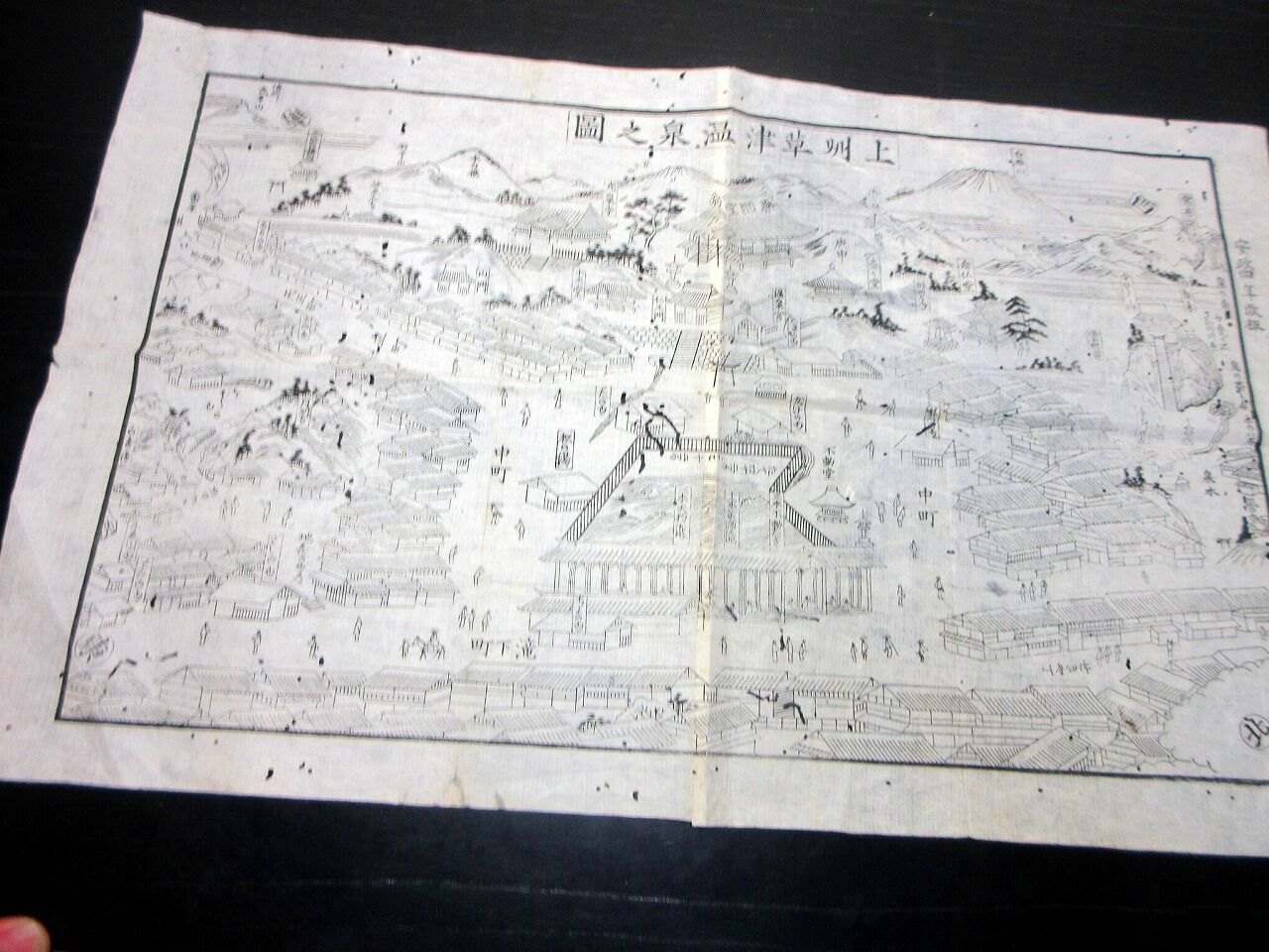 2025年09月18日 幕末~明治期古地図鳥瞰図「上州草津温泉之全図」1点/一椿斎芳輝/古書古文書/木版摺り 幕末~明治期古地図鳥瞰図「上州草津温泉之全図」1点/一椿斎芳輝/古書古文書/木版摺りです。30cm×40.5cm。木版刷り。【書名】 上州草津温泉之全図【巻冊】 1点【著者】 一椿斎芳輝 画【成立】 幕末~明治期 タグ :#古地図#鳥瞰図#JAPAN#Antiquemap#日本の古本屋#大江戸骨董市