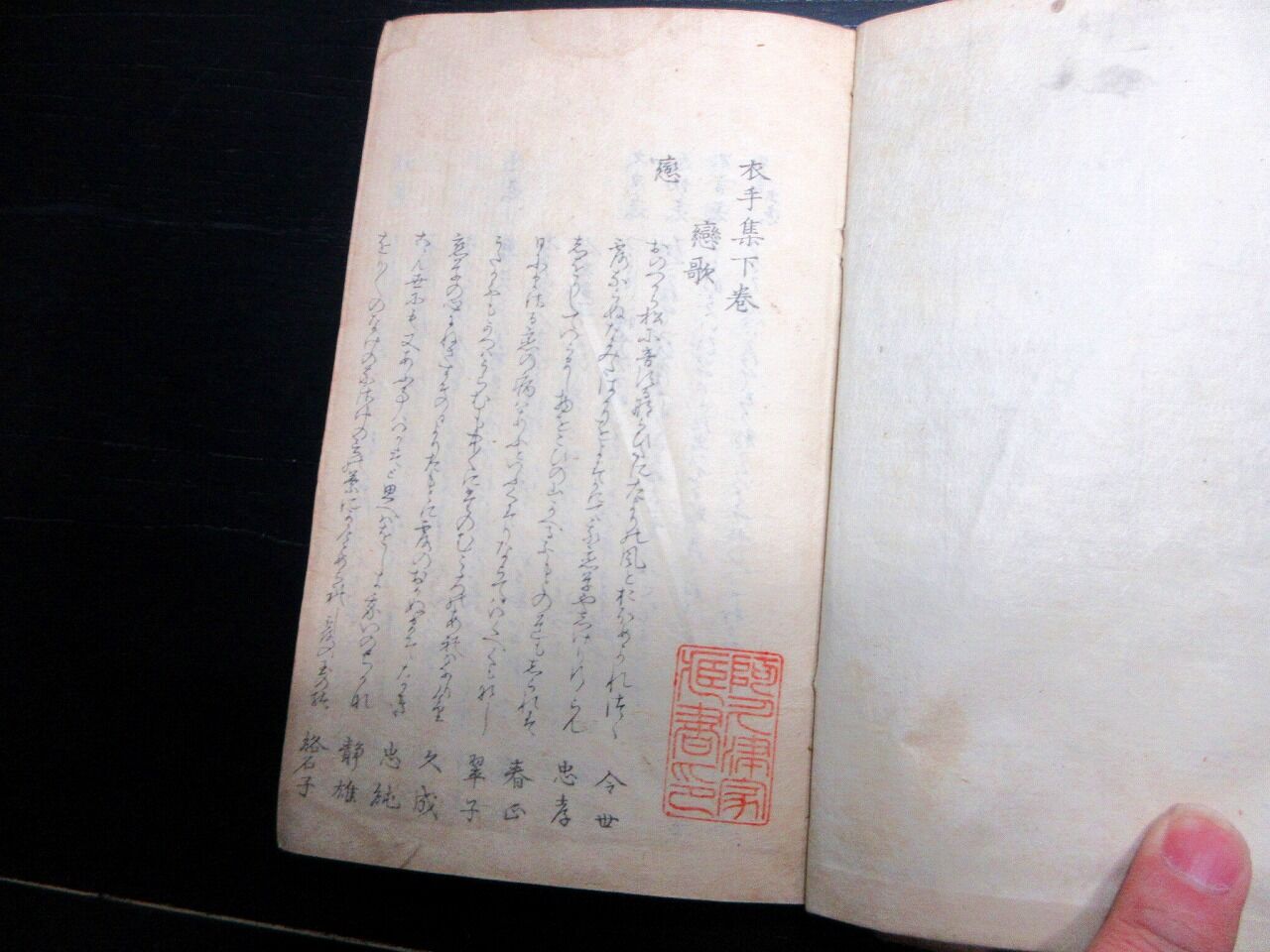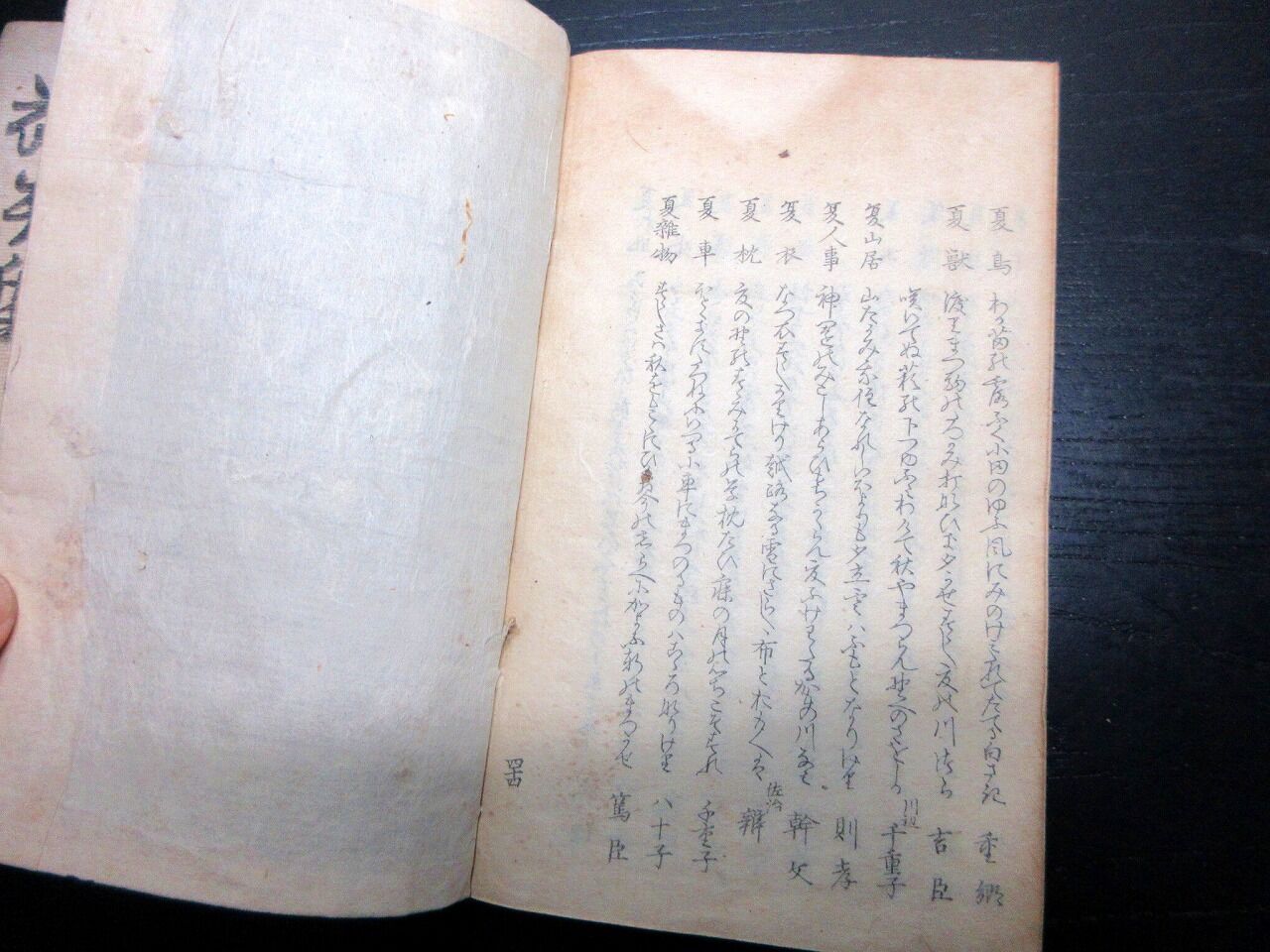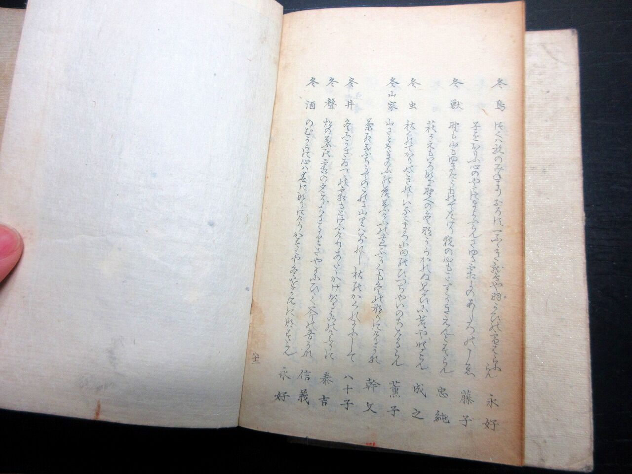 2025年02月24日 和本江戸文化11年(1814)和歌「続三玉和歌集類題」全1冊/古書古文書/木版摺り 和本江戸文化11年(1814)和歌「続三玉和歌集類題」全1冊/古書古文書/木版摺りです。17+132丁。17cm×11.5cm。木版刷り。奥付あり。【書名】 続三玉和歌集類題【巻冊】 全1冊【成立】 文化11年(1814) タグ :#和本#和歌#JAPAN#antiquebooks#日本の古本屋#大江戸骨董市